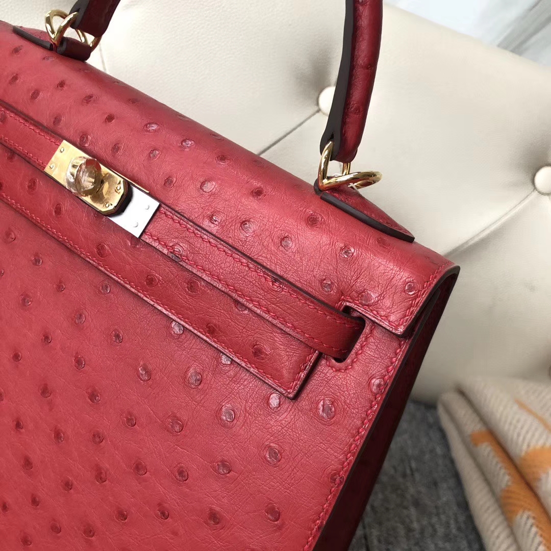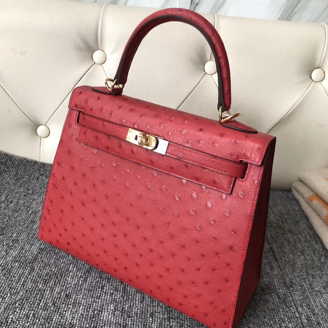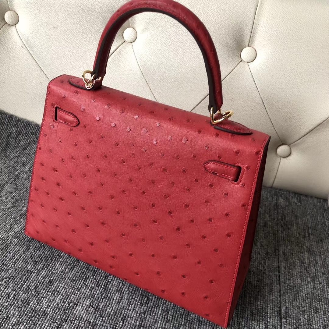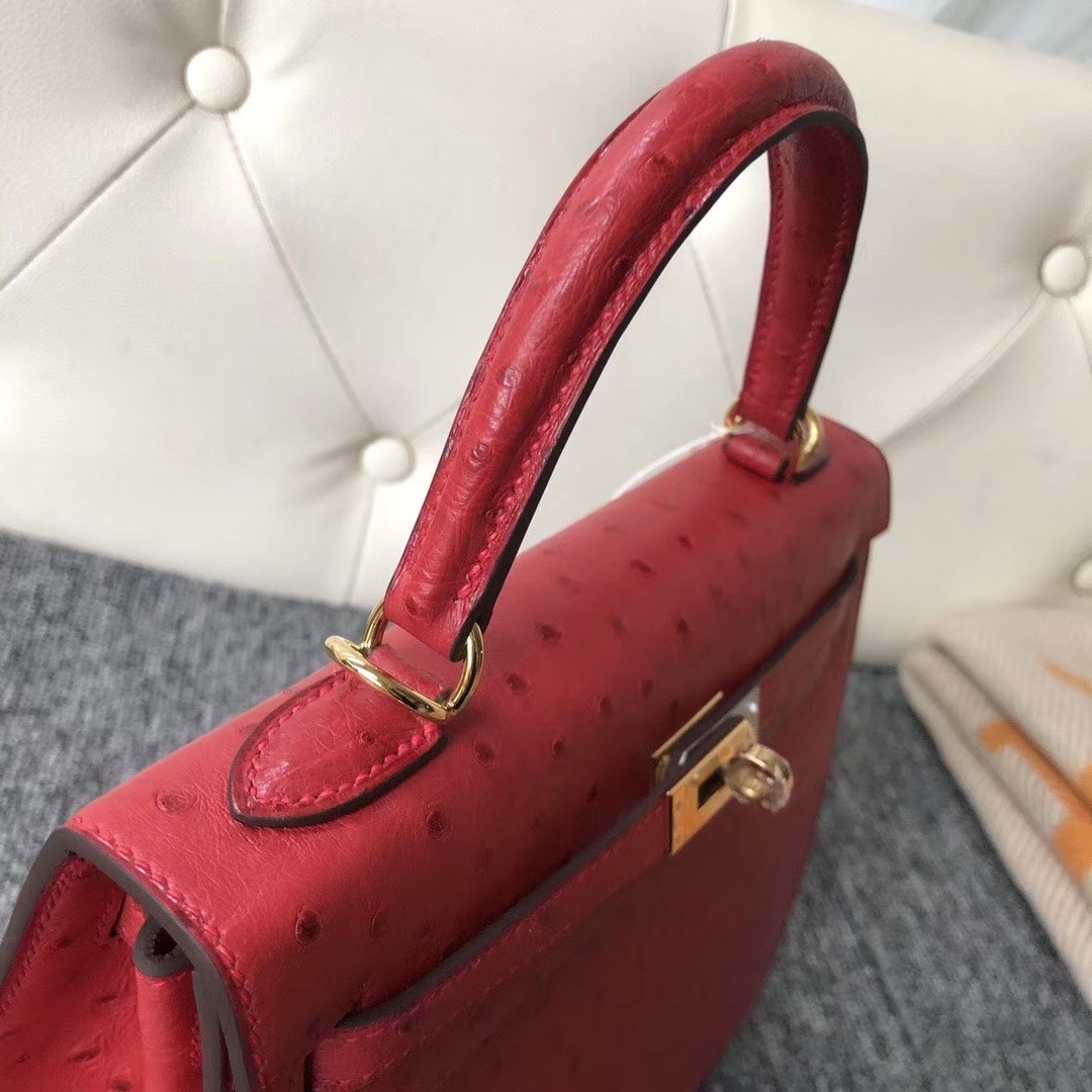 Hermès(爱马仕)Kelly 25cm Kk鸵鸟 Q5 国旗红 Rouge casaque 金扣 顶级手缝 2020年3月24日 0 【鳄鱼世家】www.Eyubao.com Kelly 25 Kelly 凯莉包 Ostrich 鸵鸟皮 品牌:Hermès(爱马仕);类别:Kelly 凯莉包;颜色:国旗红;材质:鸵鸟皮;等级:顶级;附件:全套包装礼盒;尺寸:25cm;功能:手提单肩包