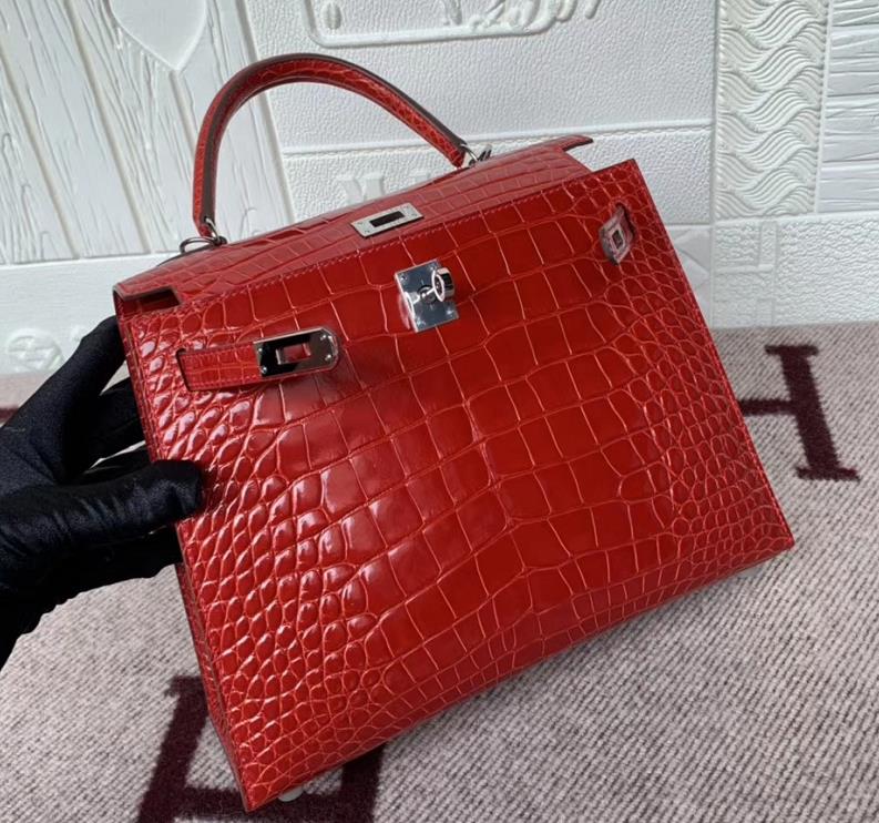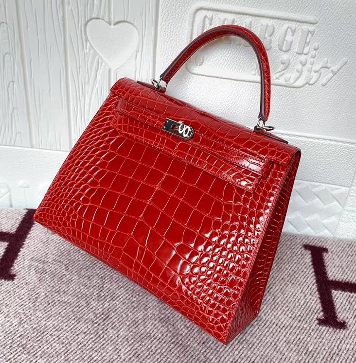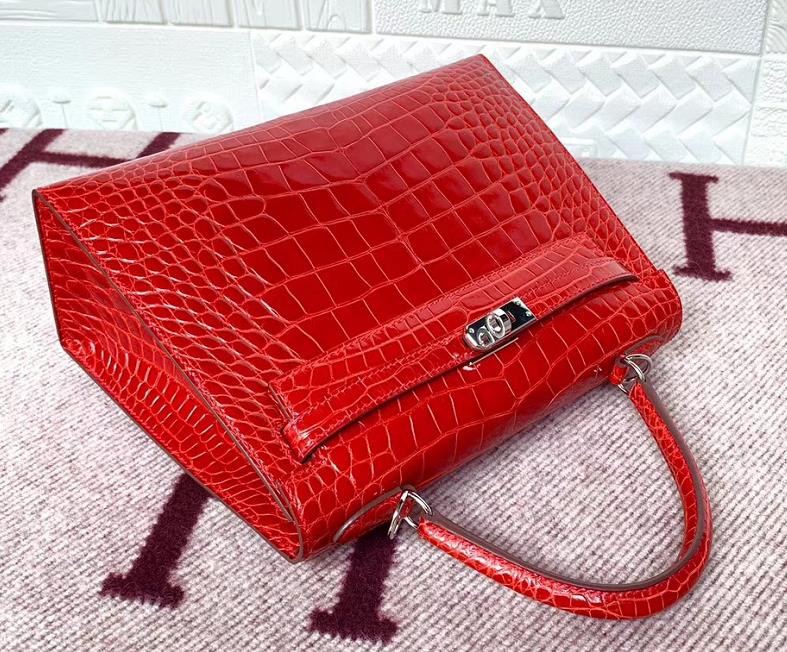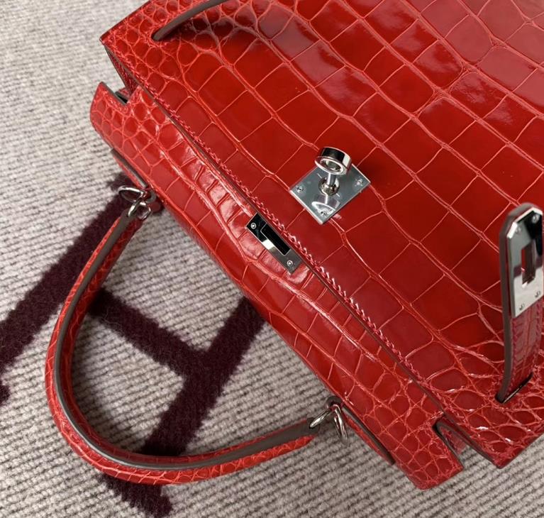 Hermès(爱马仕)Kelly 25cm Crocodile shiny 亮面鳄鱼 美洲法拉利红 银扣 现货 2020年3月25日 0 【鳄鱼世家】www.Eyubao.com Kelly 25 Kelly 凯莉包 品牌:Hermès(爱马仕);类别:Kelly 凯莉包;颜色:美洲法拉利红;材质:亮面鳄鱼皮;等级:顶级;附件:全套包装礼盒;尺寸:25cm;功能:手提单肩包