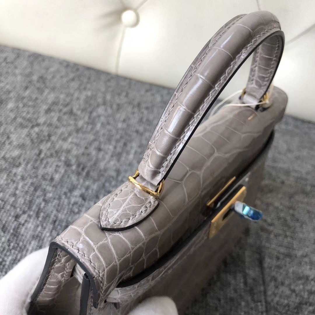 Hermès(爱马仕)Mini kelly ll Alligator shiny 亮面鳄鱼 ck81 斑鸠灰 Gris T 金扣 现货 2020年3月25日 0 【鳄鱼世家】www.Eyubao.com Mini Kelly 2 Mini Kelly 迷你凯莉 Niloticus 尼罗鳄 皮料 品牌:Hermès(爱马仕);类别:Mini Kelly迷你凯莉包;颜色:斑鸠灰;材质:亮面鳄鱼;等级:顶级;附件:全套包装礼盒;尺寸:19cm;功能:手提单肩包