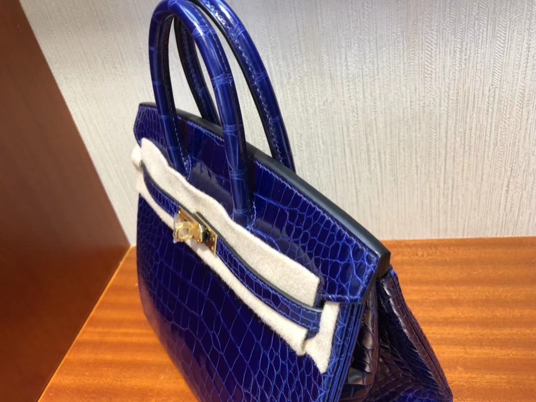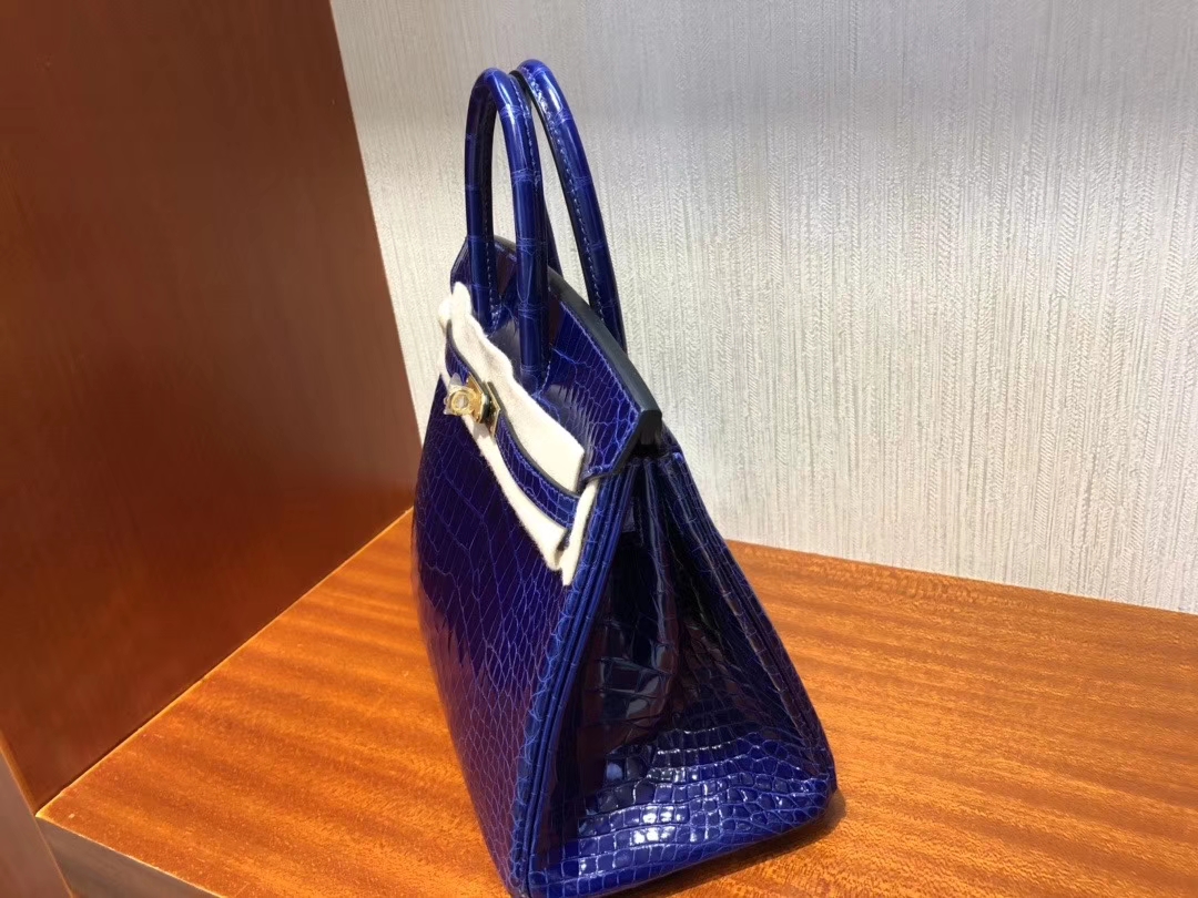 Hermès(爱马仕)Birkin 25cm Alligator shiny 亮面鳄鱼 7T 电光蓝 Blue eletric 金扣 顶级手缝 现货 2020年3月31日 0 【鳄鱼世家】www.Eyubao.com Birkin 25 Birkin 铂金包 Niloticus 尼罗鳄 皮料 品牌:Hermès(爱马仕);类别:Birkin 铂金包;颜色:电光蓝;材质:雾面鳄鱼;等级:顶级;附件:全套包装礼盒;尺寸: 25cm;功能:手提单肩包