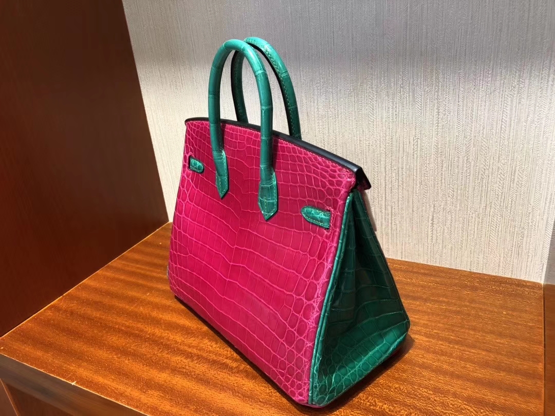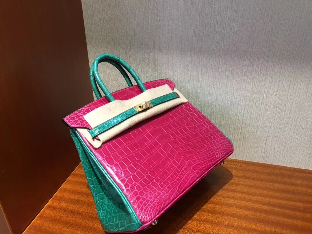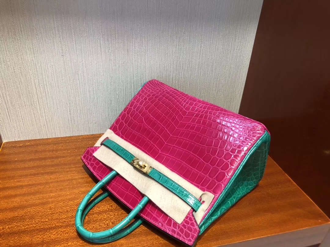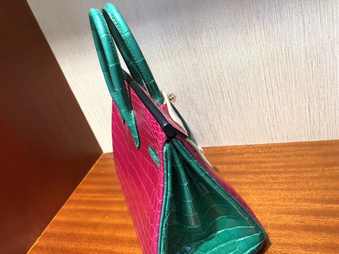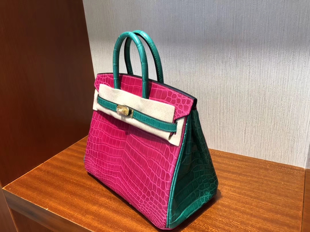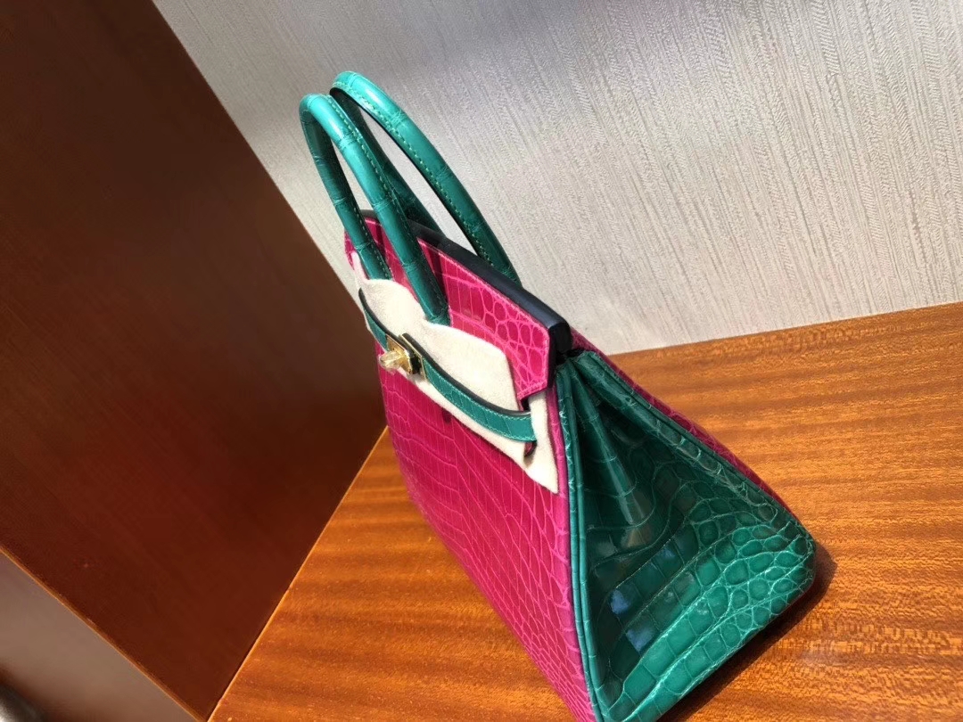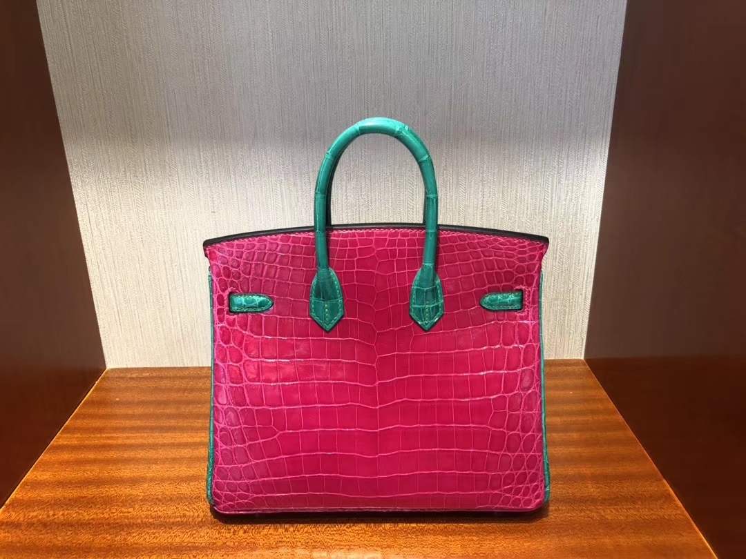 Hermès(爱马仕)Birkin 25cm Crocodile shiny 亮面鳄鱼 J5 天方夜谭粉紫拼6Q翡翠绿 金扣 马蹄印 超美拼色 2020年3月31日 0 【鳄鱼世家】www.Eyubao.com Birkin 25 Birkin 铂金包 Niloticus 尼罗鳄 皮料 品牌:Hermès(爱马仕);类别:Birkin 铂金包;颜色:天方夜谭粉紫 拼 翡翠绿;材质:亮面鳄鱼;等级:顶级;附件:全套包装礼盒;尺寸: 25cm;功能:手提单肩包