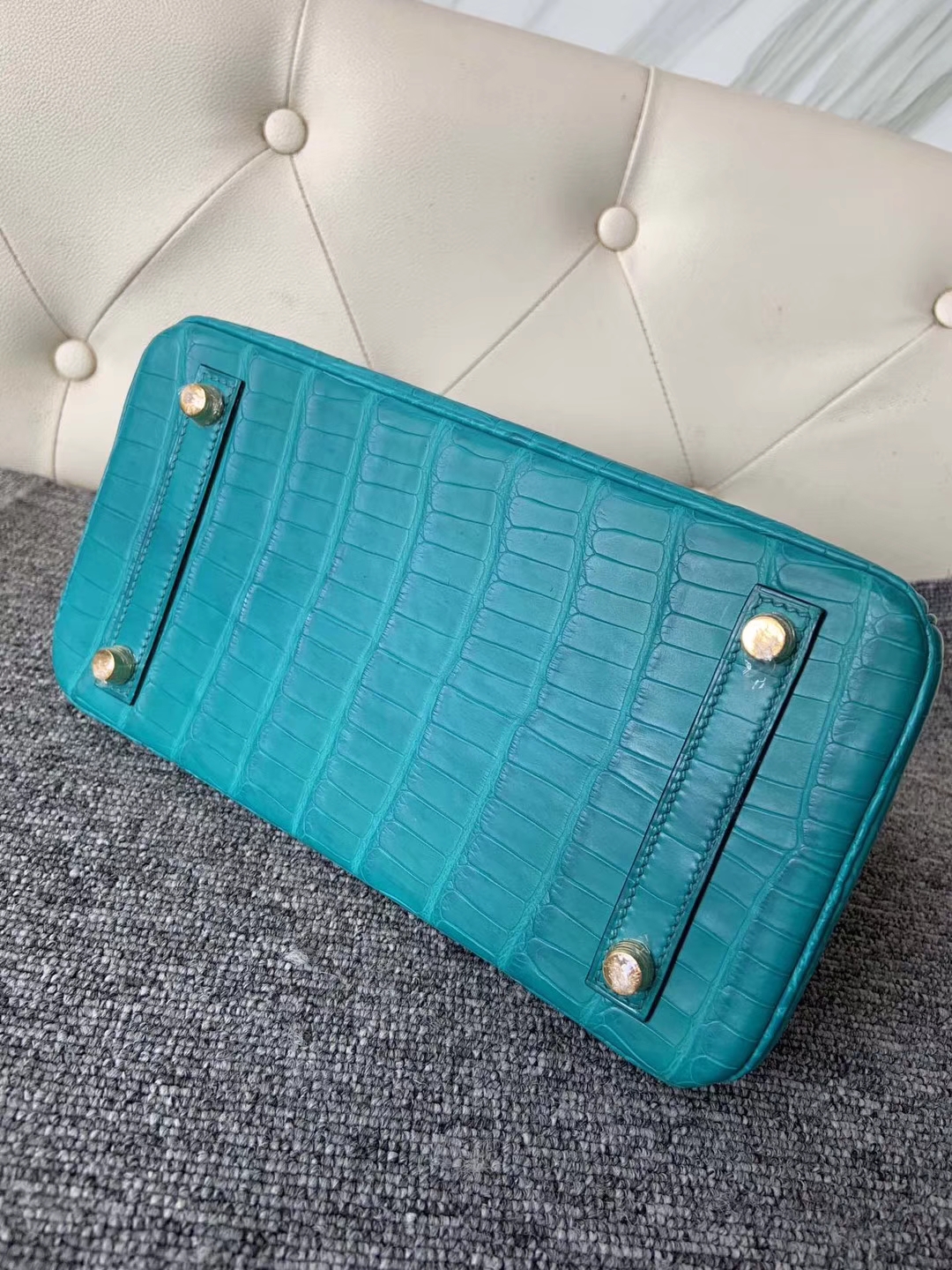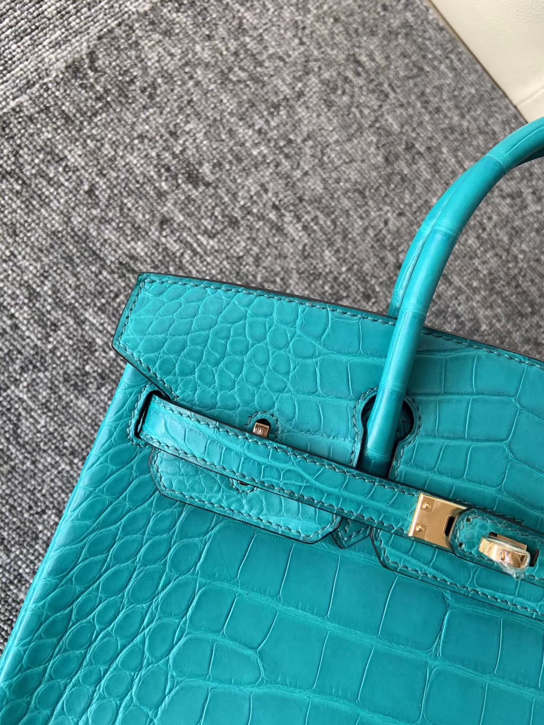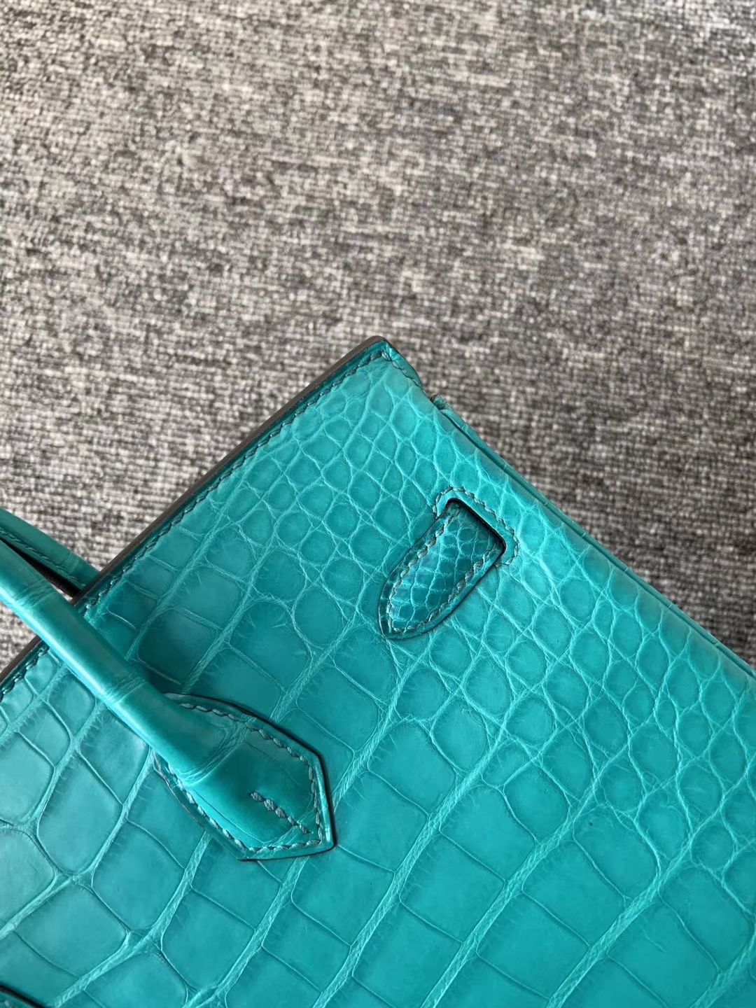 Hermès(爱马仕)Birkin 25cm Alligator matt 雾面鳄鱼 7F 孔雀蓝 Blue paon 金扣 2020年4月8日 0 【鳄鱼世家】www.Eyubao.com Birkin 25 Birkin 铂金包 Niloticus 尼罗鳄 皮料 品牌:Hermès(爱马仕);类别:Birkin 铂金包;颜色:孔雀蓝;材质:雾面鳄鱼;等级:顶级;附件:全套包装礼盒;尺寸: 25cm;功能:手提单肩包