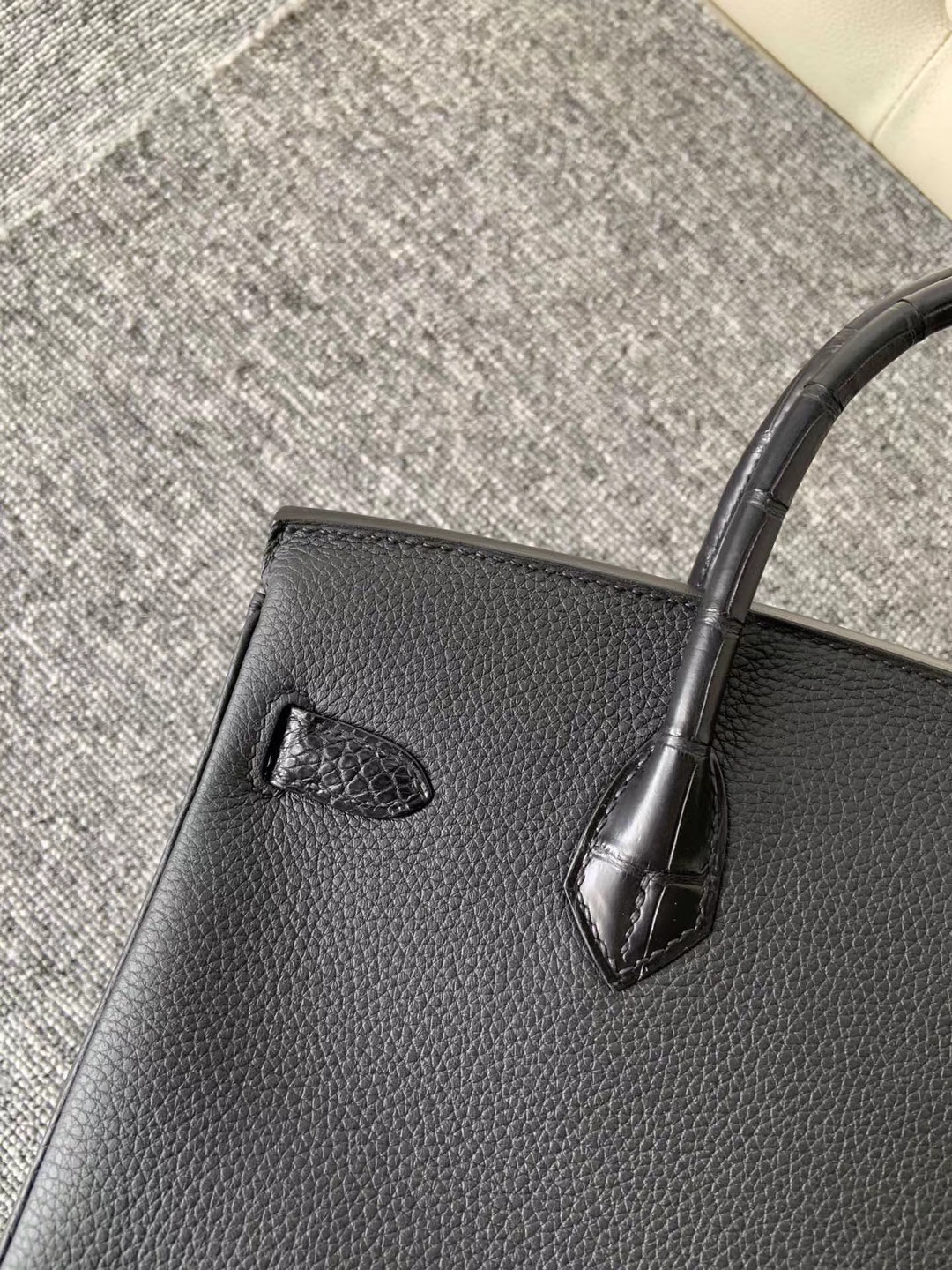 Hermès(爱马仕)Touch 系列!Birkin25cm ck89 黑色 拼雾面鳄鱼 黑色 金扣 定制 2020年4月8日 0 【鳄鱼世家】www.Eyubao.com Birkin 25 Birkin 铂金包 Niloticus 尼罗鳄 皮料 品牌:Hermès(爱马仕);类别:Birkin 铂金包;颜色:黑色 ;材质:雾面鳄鱼;等级:顶级;附件:全套包装礼盒;尺寸: 25cm;功能:手提单肩包