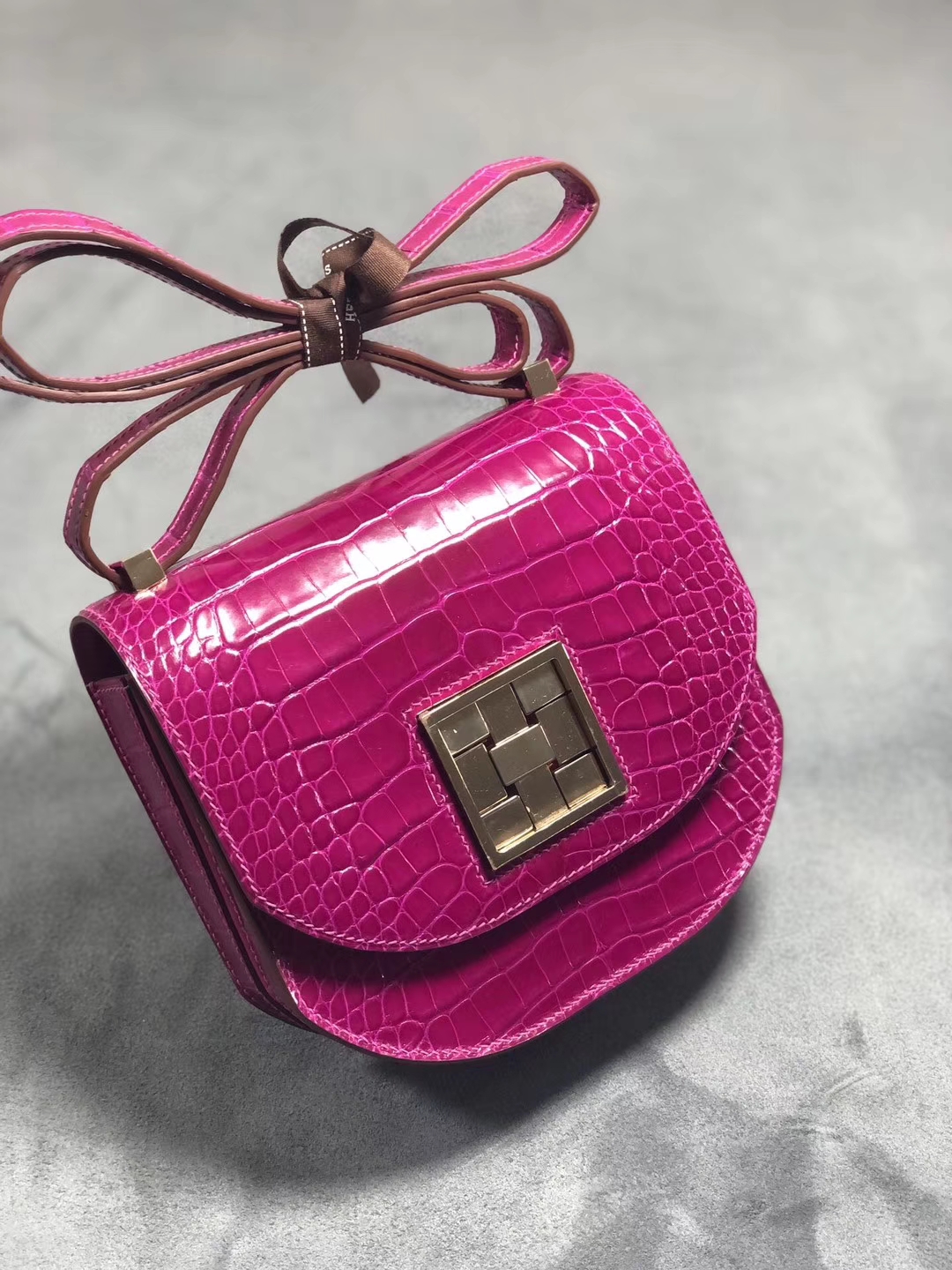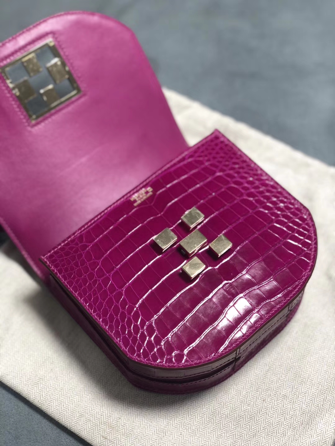 Hermès(爱马仕)马赛克 17cm Alligator shiny J5 天方夜谭粉紫 银扣 定制 2020年4月8日 0 【鳄鱼世家】www.Eyubao.com Mosaique 马赛克包 Niloticus 尼罗鳄 皮料 品牌:Hermès(爱马仕);类别:Mosaique 马赛克包;颜色:天方夜谭粉紫;材质:亮面鳄鱼;等级:顶级;附件:全套包装礼盒;尺寸:17cm;功能:手提单肩包
