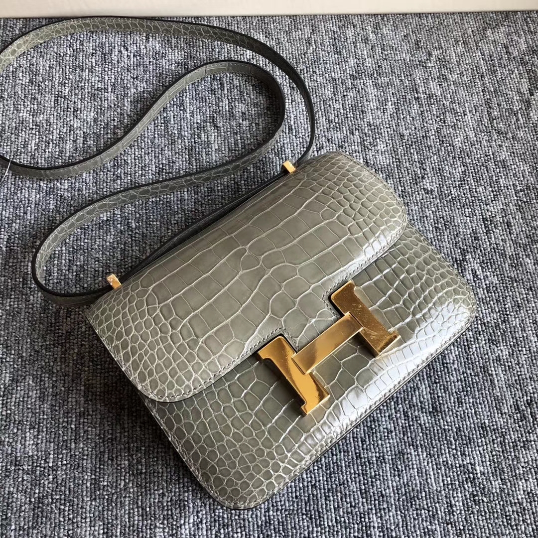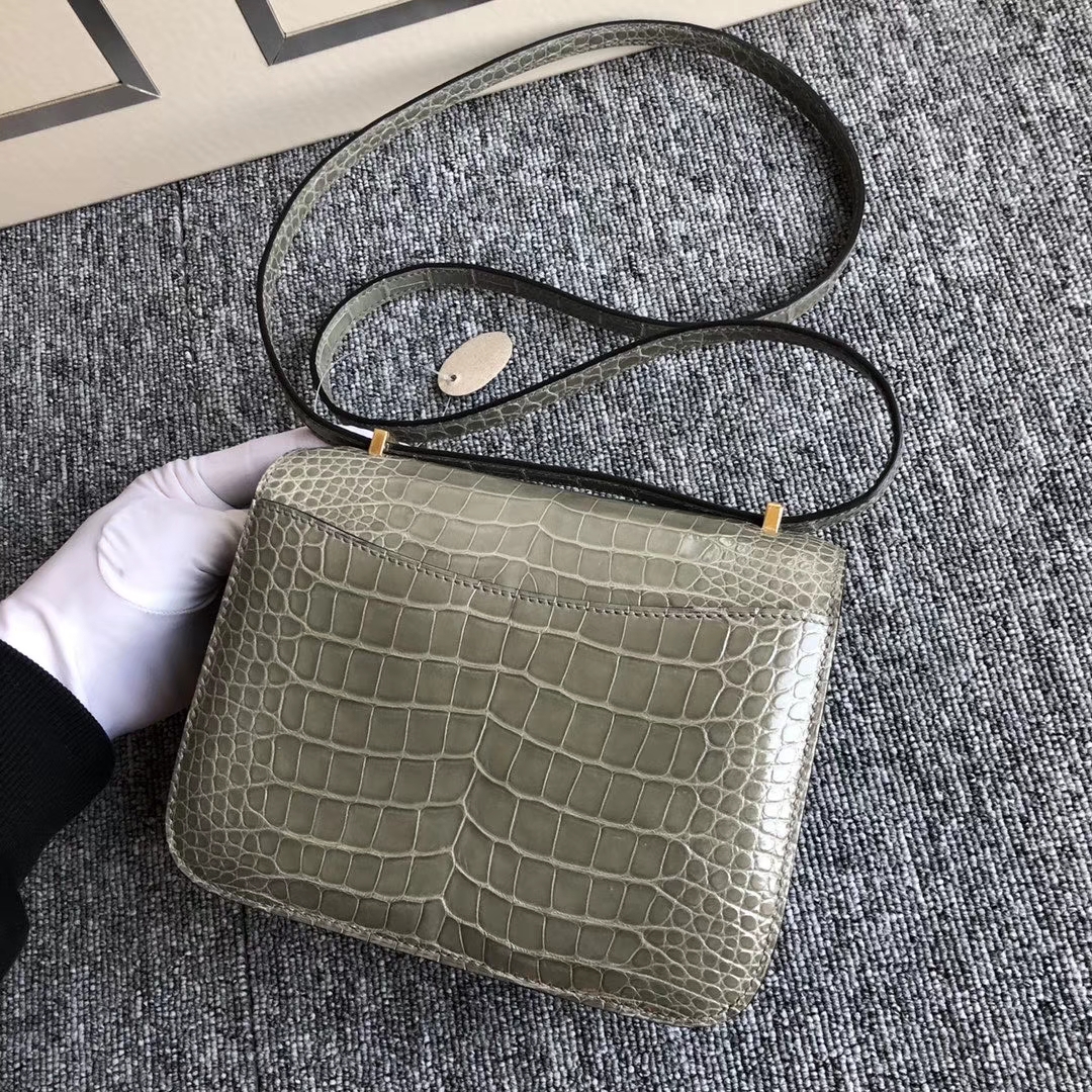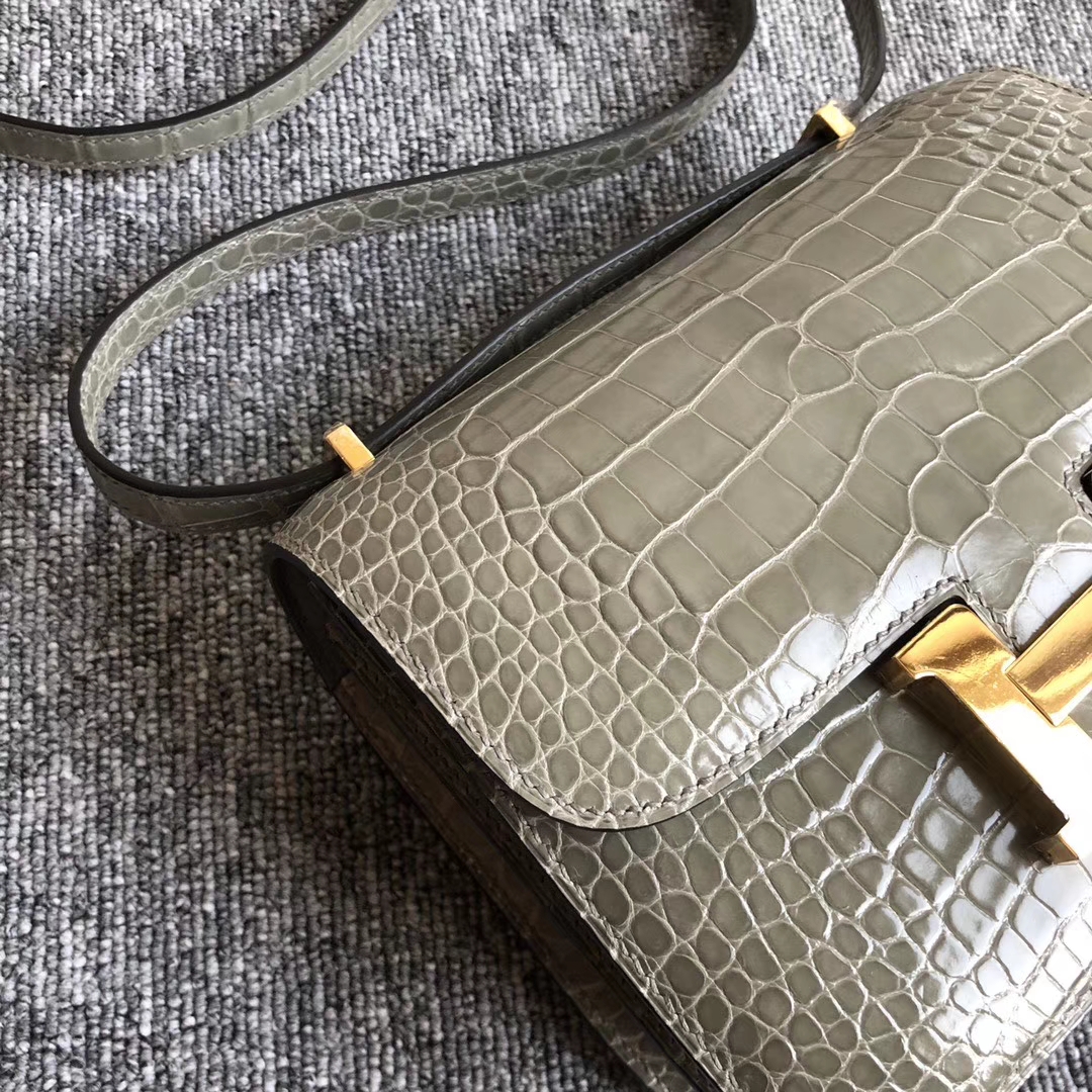 Hermès(爱马仕)Constance 18cm Alligator shiny 亮面鳄鱼 ck81 斑鸠灰 Gris T 金扣 顶级手缝 现货 2020年4月13日 0 【鳄鱼世家】www.Eyubao.com Alligator 美洲鳄 Constance 18 Constance 空姐包 皮料 品牌:Hermès(爱马仕);类别:Constance 空姐包;颜色:斑鸠灰;材质:亮面鳄鱼;等级:顶级;附件:全套包装礼盒;尺寸:18cm;功能:单肩背包