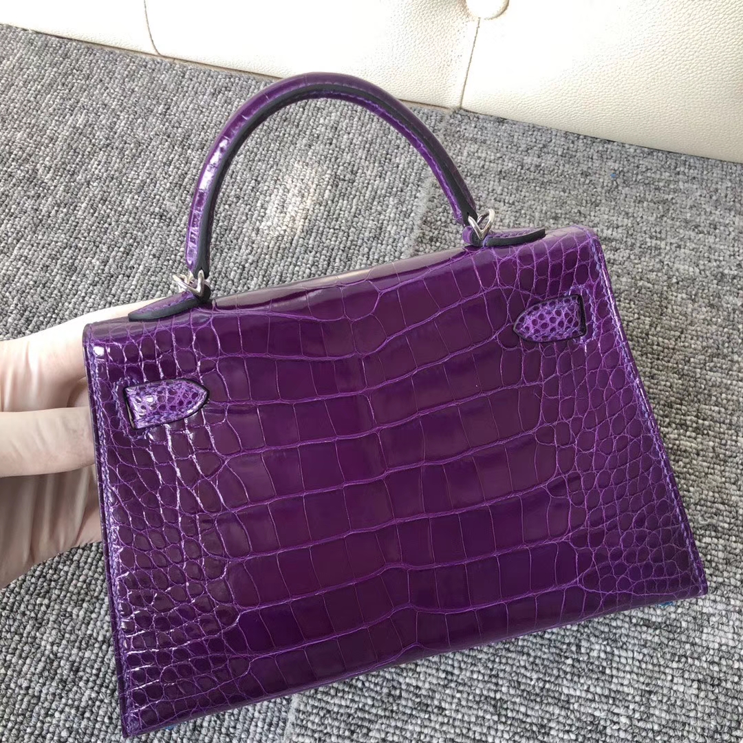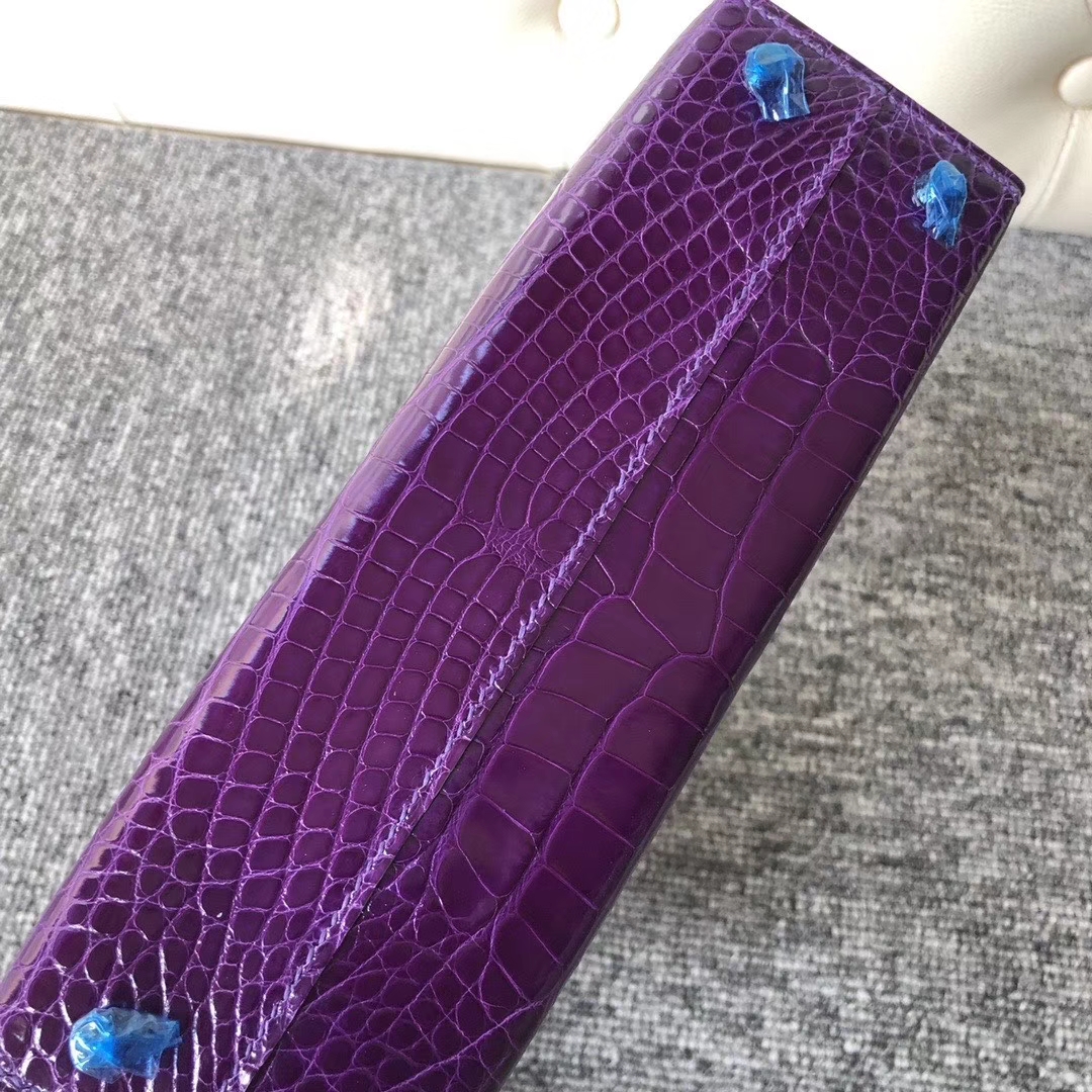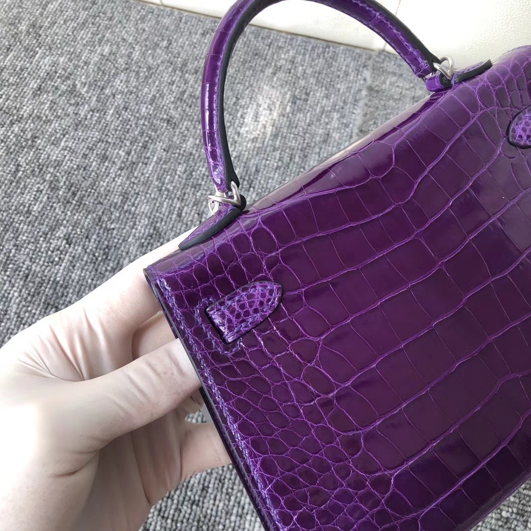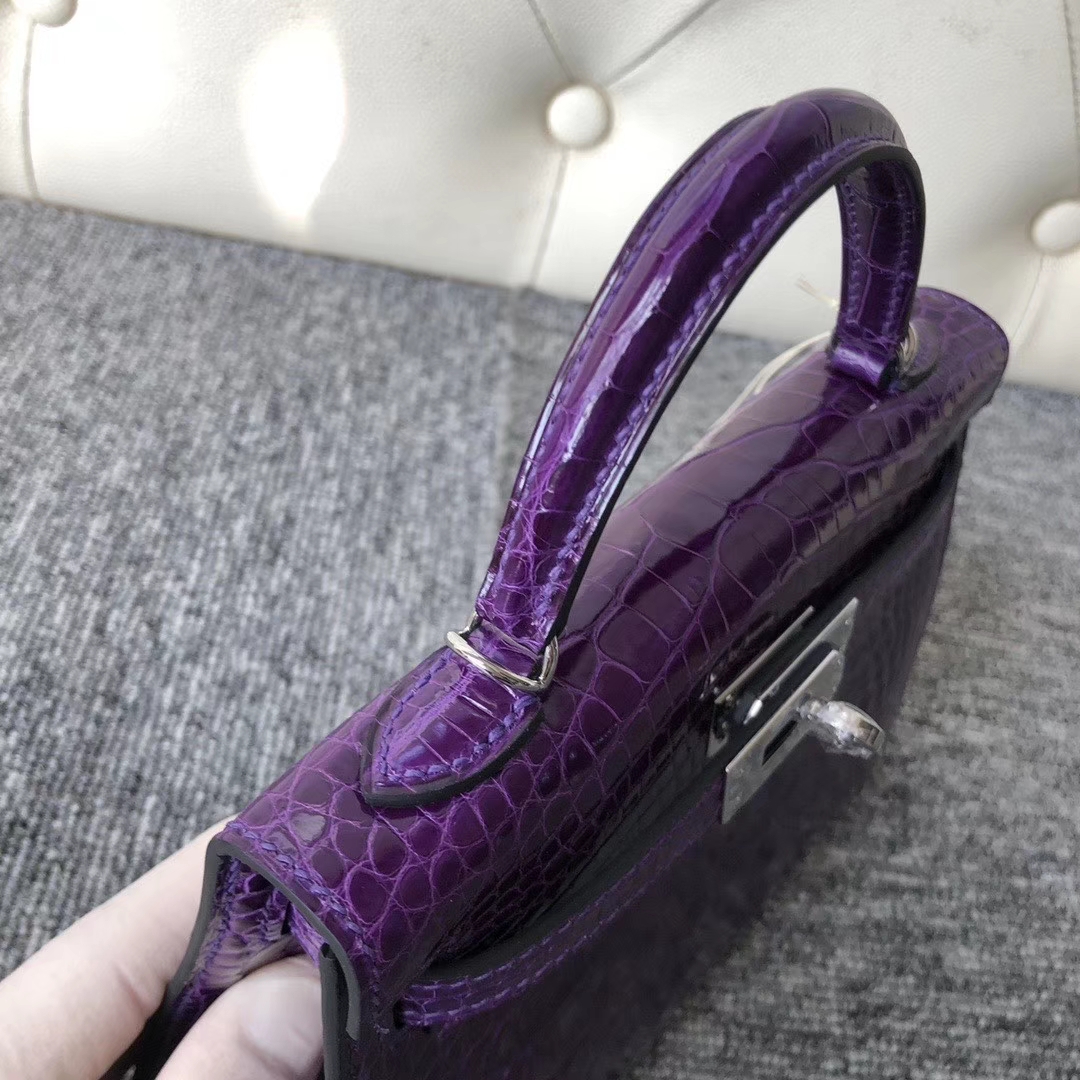 Hermès(爱马仕)Mini kelly ll Alligator shiny 亮面鳄鱼 5L 极度紫 银扣 顶级手缝