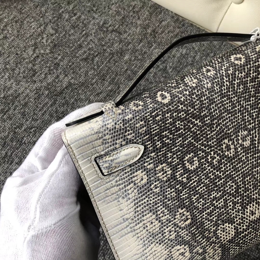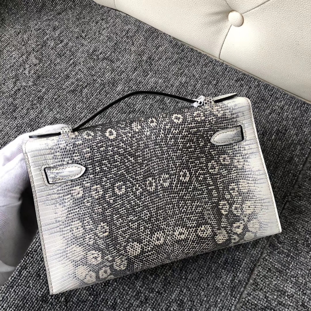 Hermès(爱马仕)Mini kelly pochette 22cm Lizard 进口亮面蜥蜴 小喜马拉雅色 银扣 手拿包 晚宴包 2020年4月24日 0 【鳄鱼世家】www.Eyubao.com Mini Kelly 1 Mini Kelly 迷你凯莉 品牌:Hermès(爱马仕);类别:Mini Kelly迷你凯莉包;颜色:小喜马拉雅色;材质:进口亮面蜥蜴皮;等级:顶级;附件:全套包装礼盒;尺寸:22cm;功能:手提单肩包