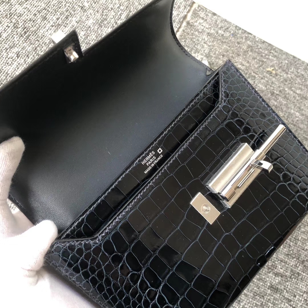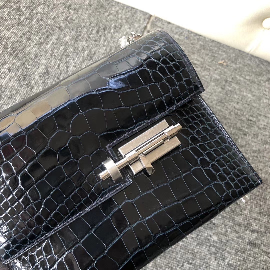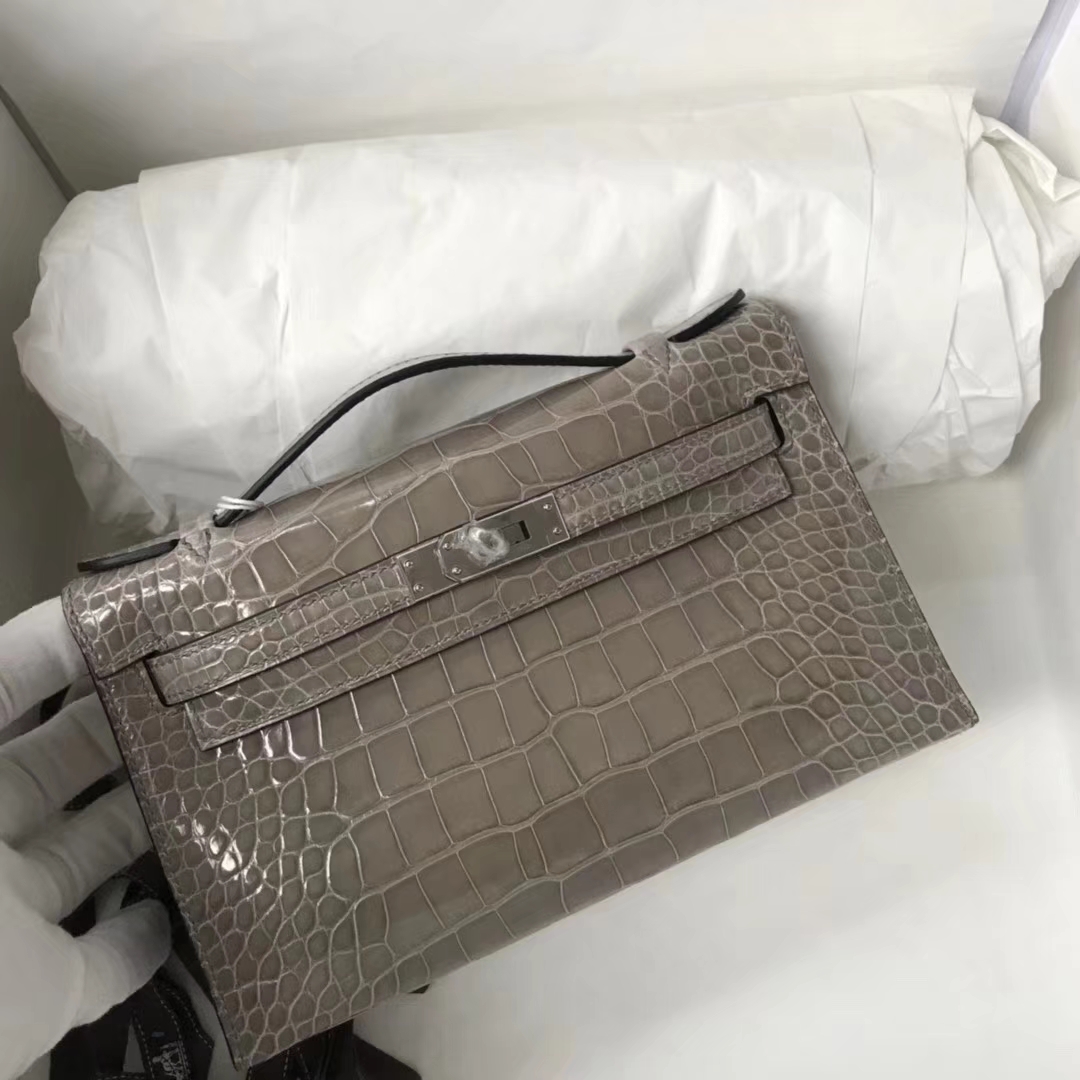 Mini Kelly 1 Mini Kelly 迷你凯莉 Hermès(爱马仕)Minikelly pochette 亮面鳄鱼 ck81 斑鸠灰 Gris T 银扣 22cm 手拿包 2019年3月1日 0