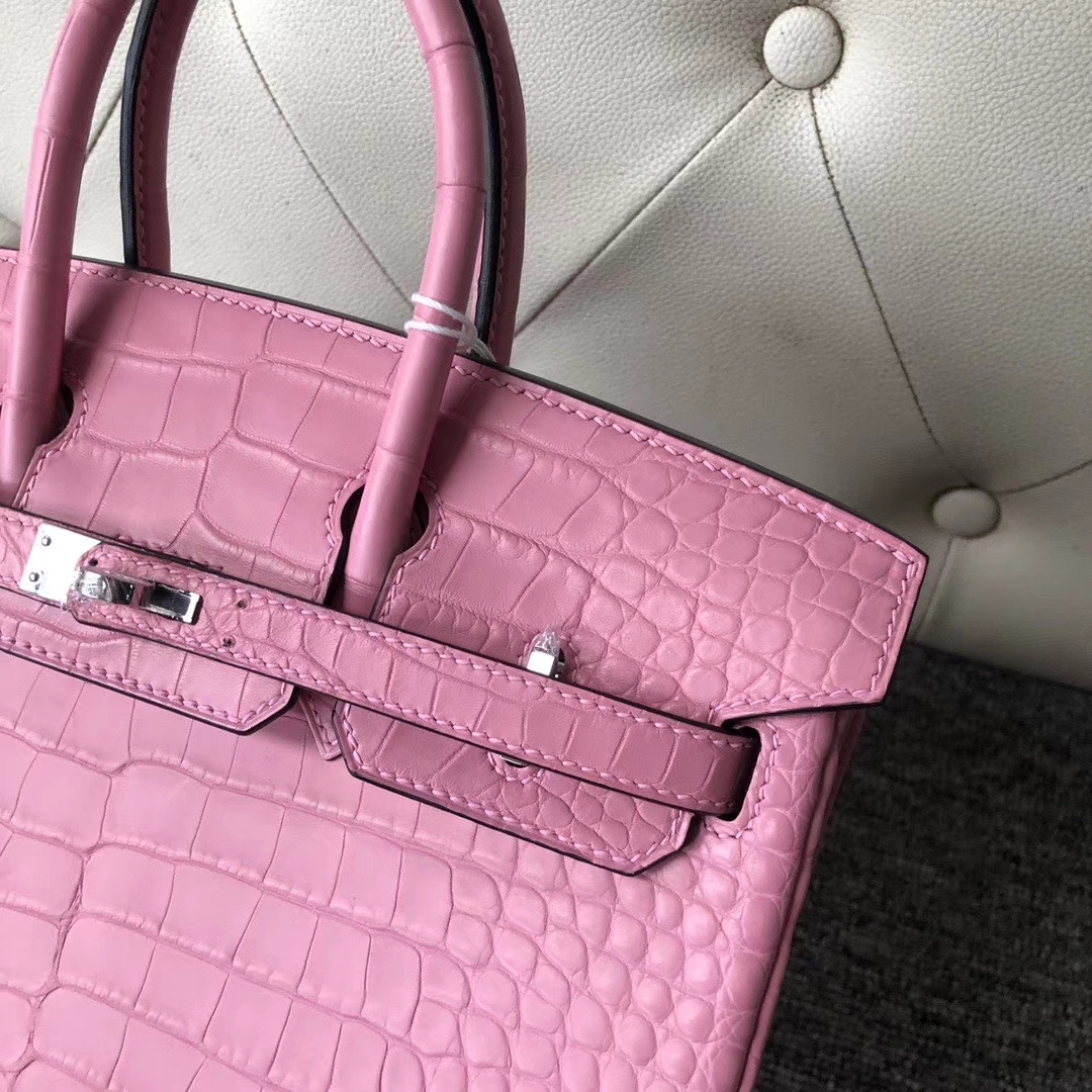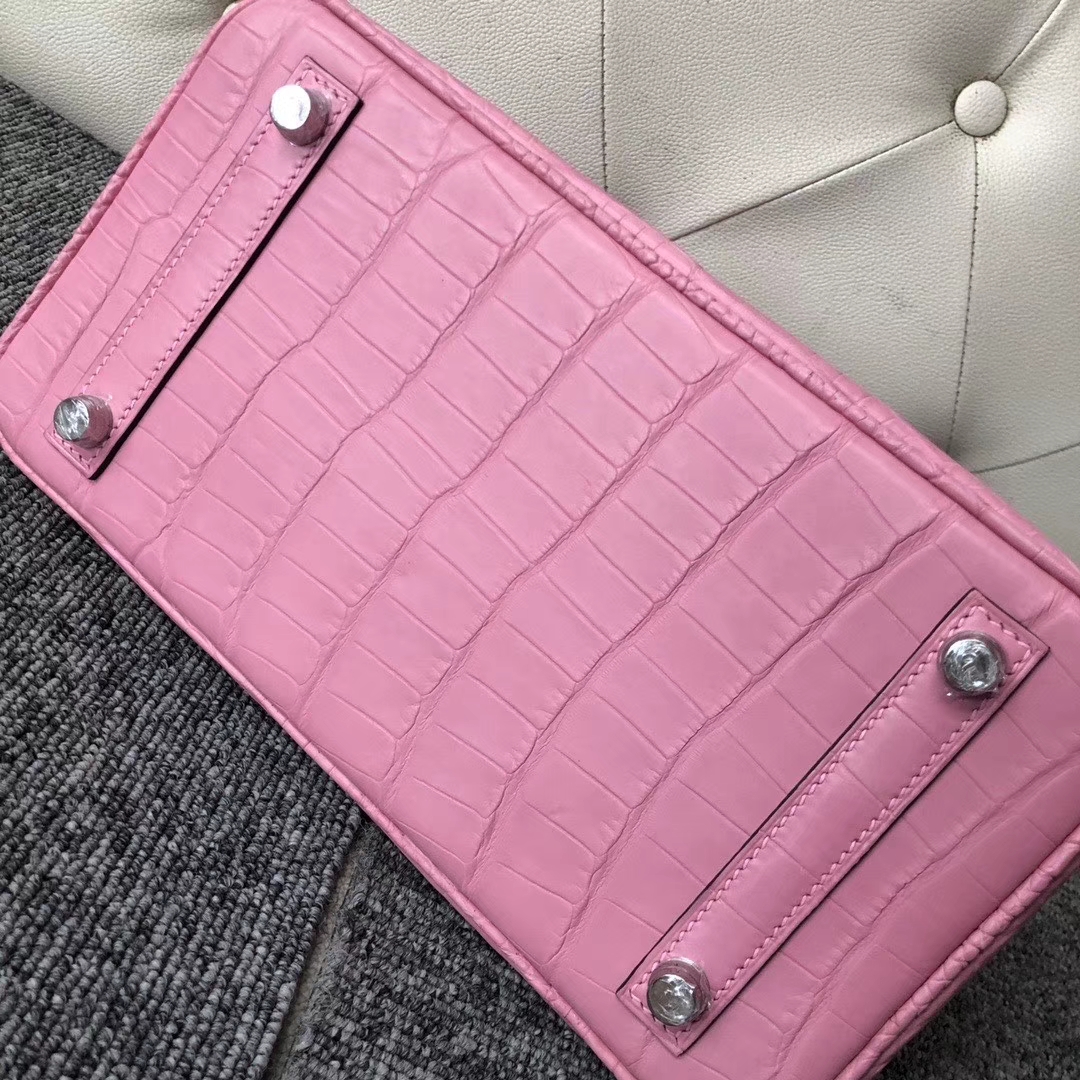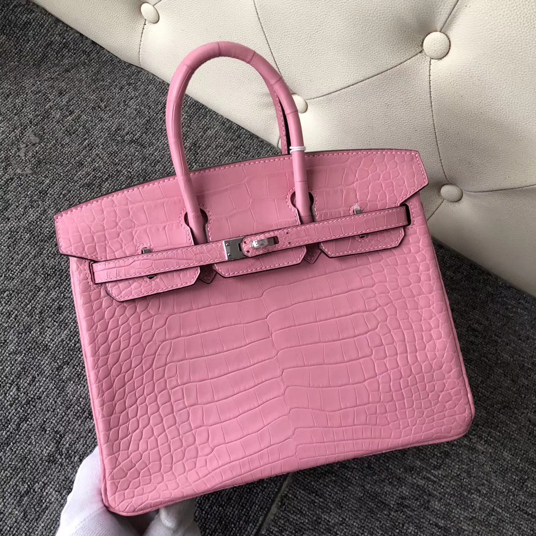 Hermès(爱马仕)Birkin 25cm Crocodile matt 雾面鳄鱼 5p 樱花粉 银扣 顶级手缝 2020年4月25日 0 【鳄鱼世家】www.Eyubao.com Alligator 美洲鳄 Birkin 25 Birkin 铂金包 皮料 品牌:Hermès(爱马仕);类别:Birkin 铂金包;颜色:樱花粉;材质:雾面鳄鱼;等级:顶级;附件:全套包装礼盒;尺寸:25cm;功能:手提单肩包