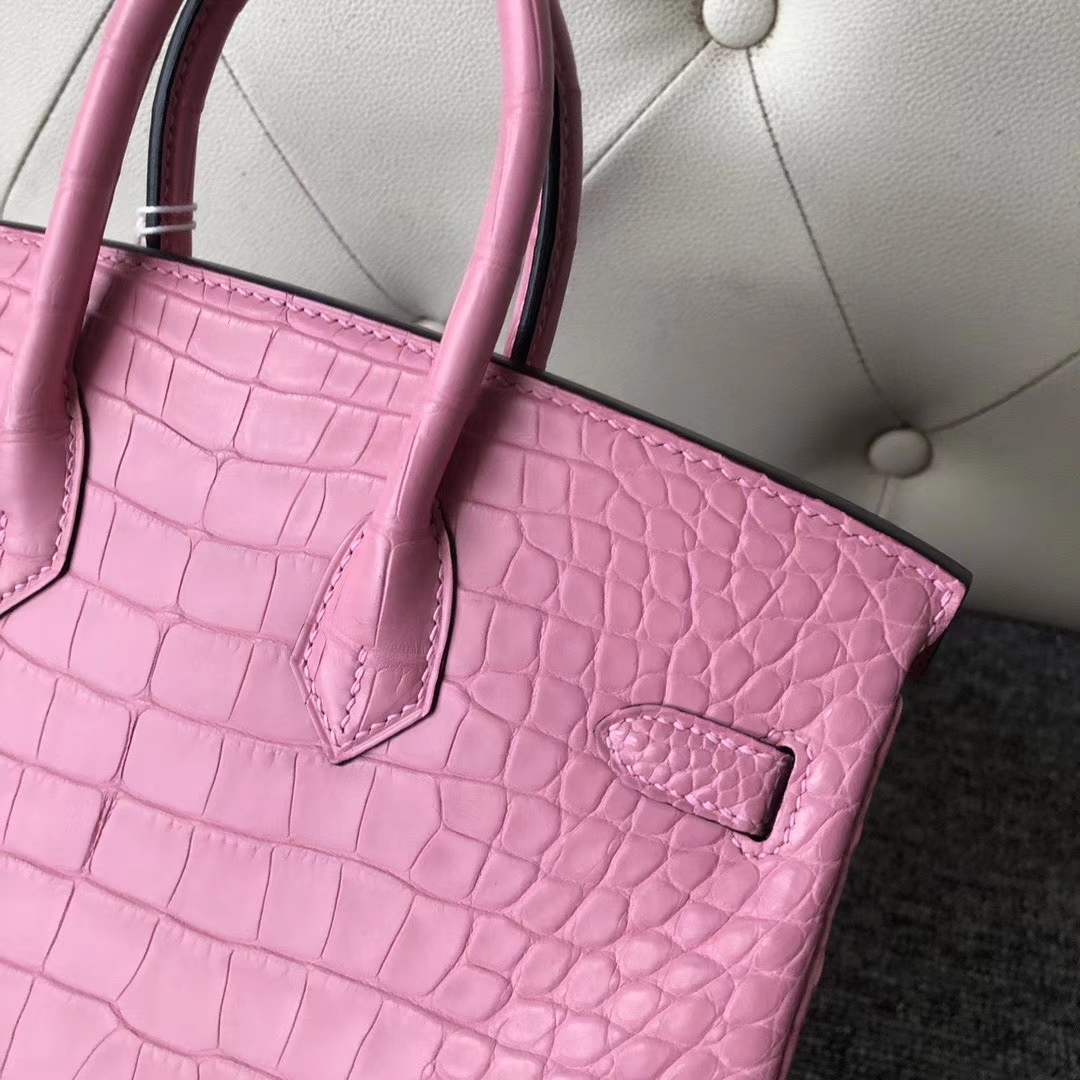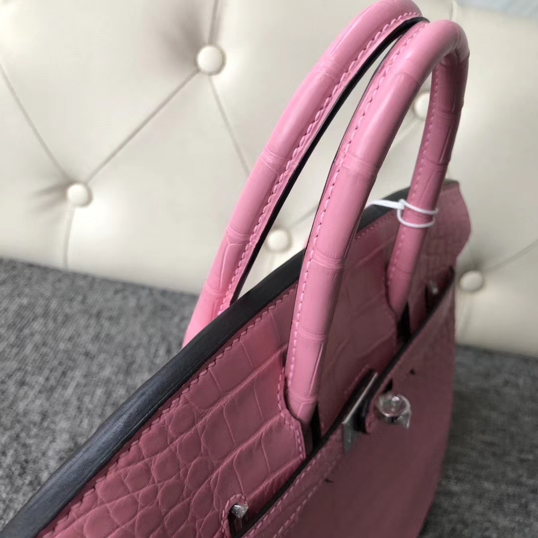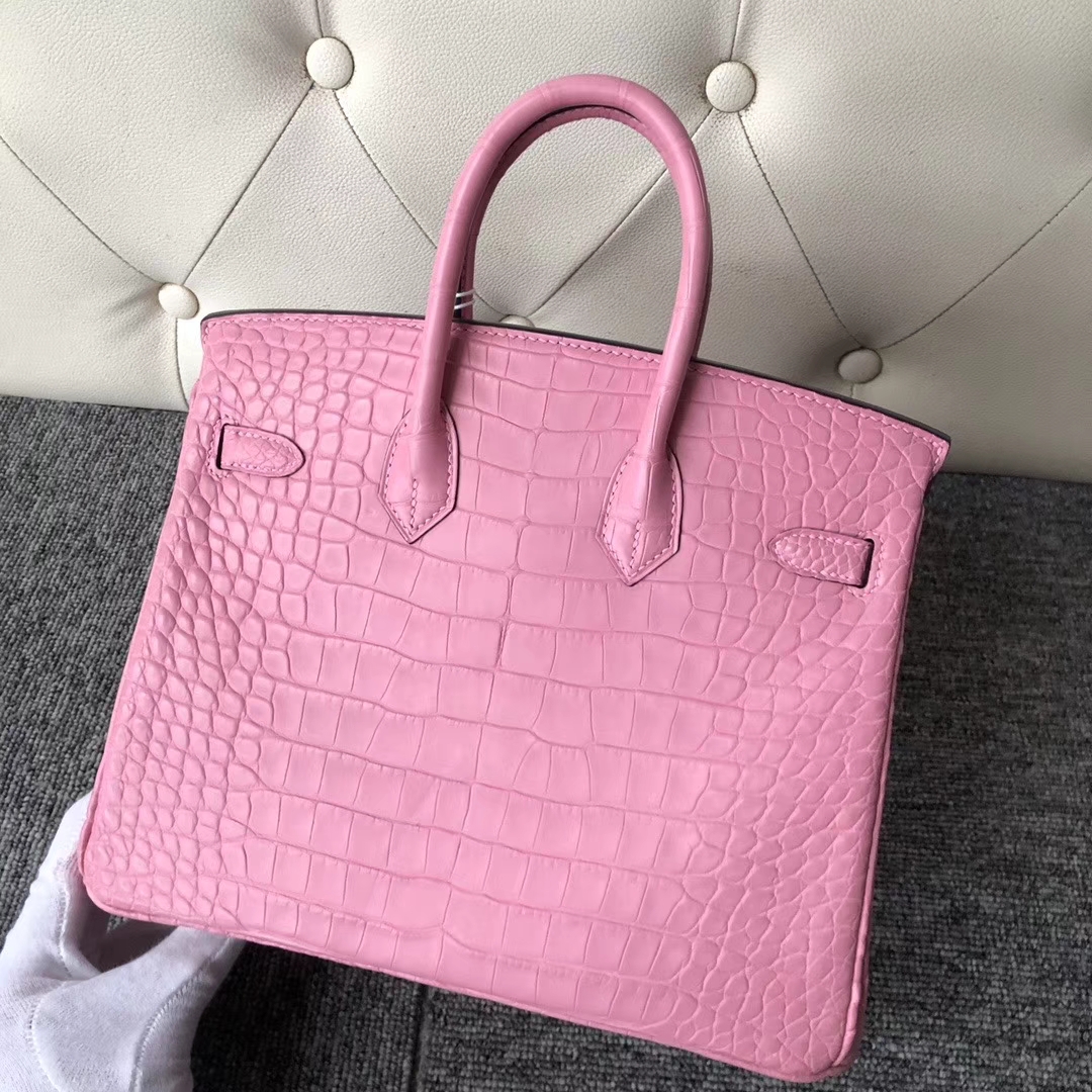 Hermès(爱马仕)Birkin 25cm Crocodile matt 雾面鳄鱼 5p 樱花粉 银扣 顶级手缝 2020年4月25日 0 【鳄鱼世家】www.Eyubao.com Alligator 美洲鳄 Birkin 25 Birkin 铂金包 皮料 品牌:Hermès(爱马仕);类别:Birkin 铂金包;颜色:樱花粉;材质:雾面鳄鱼;等级:顶级;附件:全套包装礼盒;尺寸:25cm;功能:手提单肩包