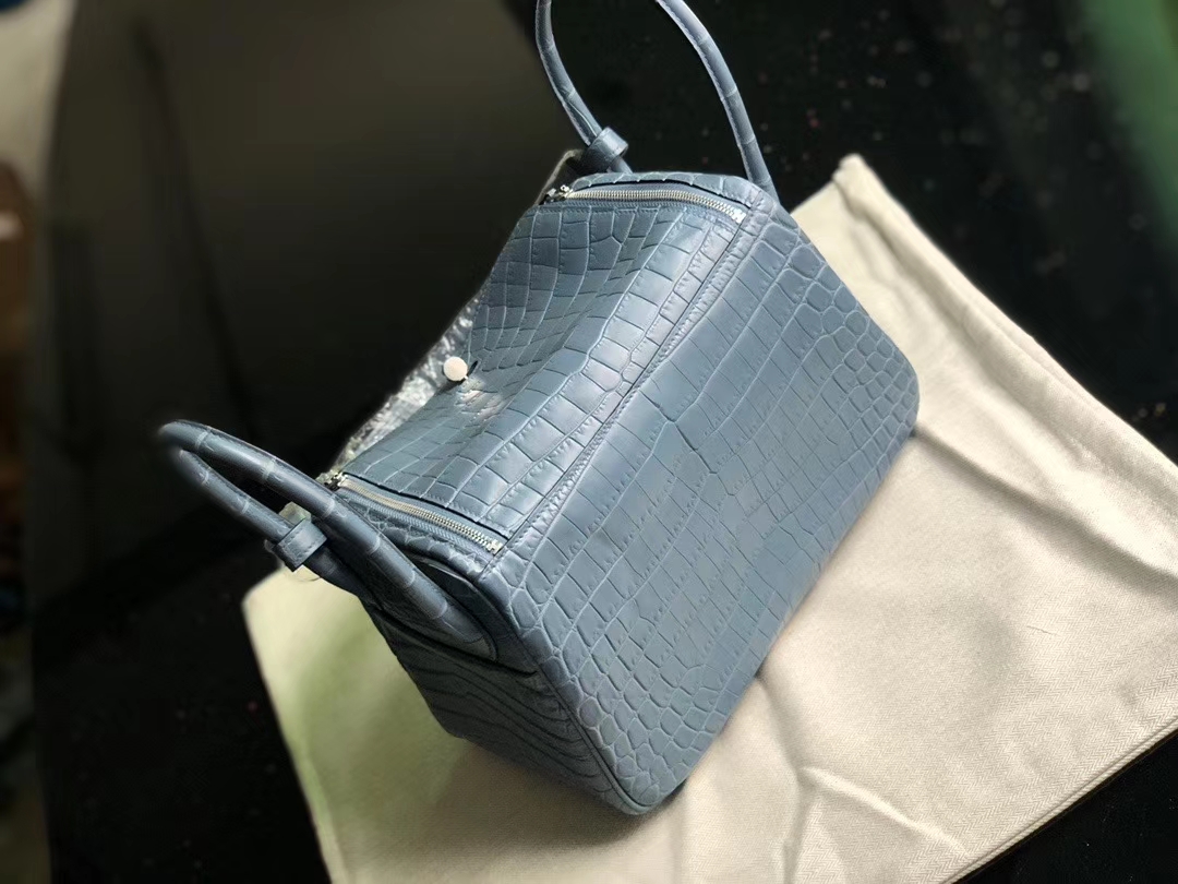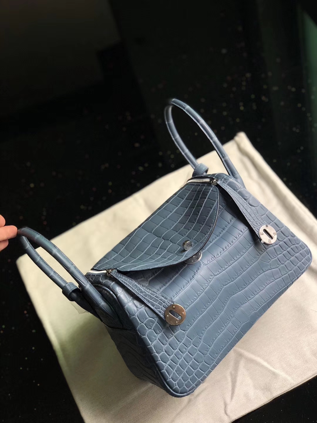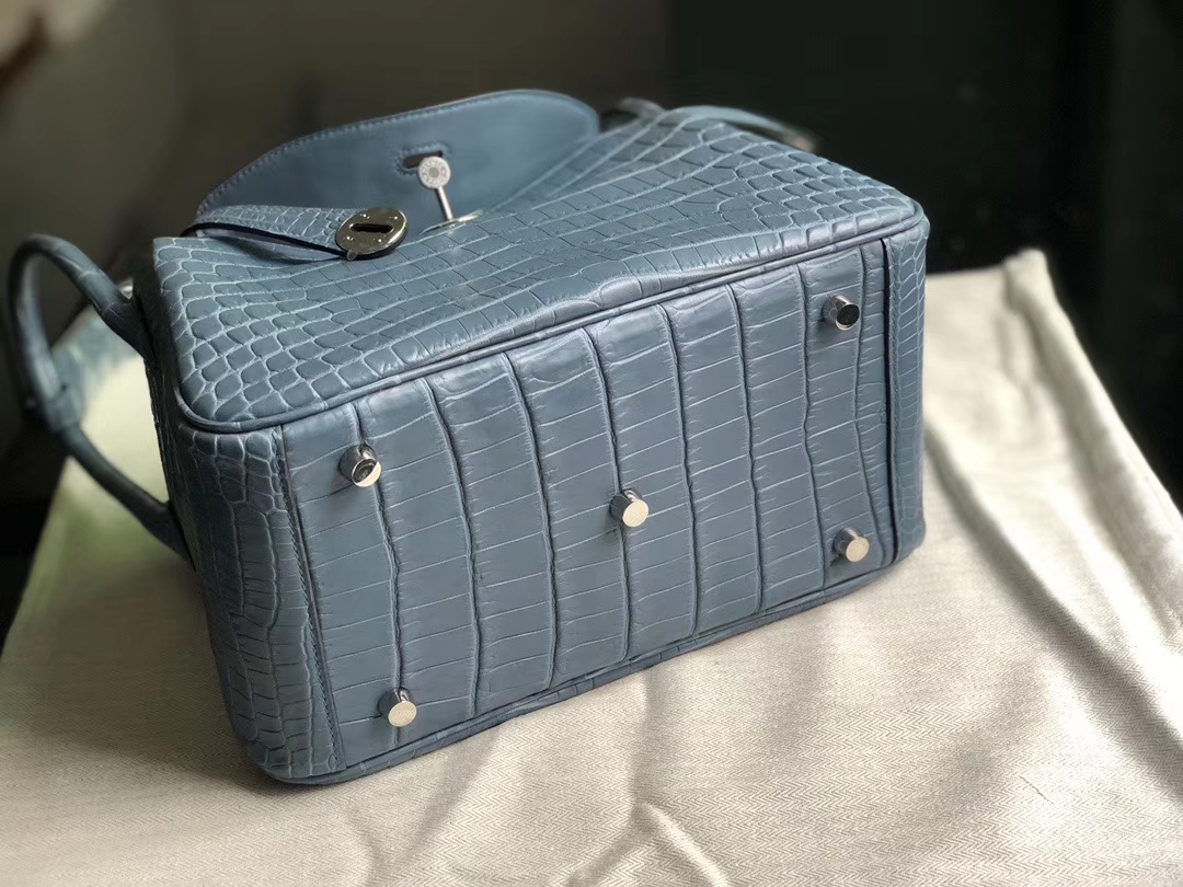 Hermès(爱马仕)Lindy 26cm Crocodile matt 雾面鳄鱼 雾霾蓝 银扣 顶级手缝 定制 2020年4月25日 0 【鳄鱼世家】www.Eyubao.com Lindy 26 Lindy 琳迪包 品牌:Hermès(爱马仕);类别:Lindy 琳迪包;颜色:雾霾蓝;材质:精选雾面鳄鱼皮;等级:顶级;附件:全套包装礼盒;尺寸:26cm;功能:手提单肩包