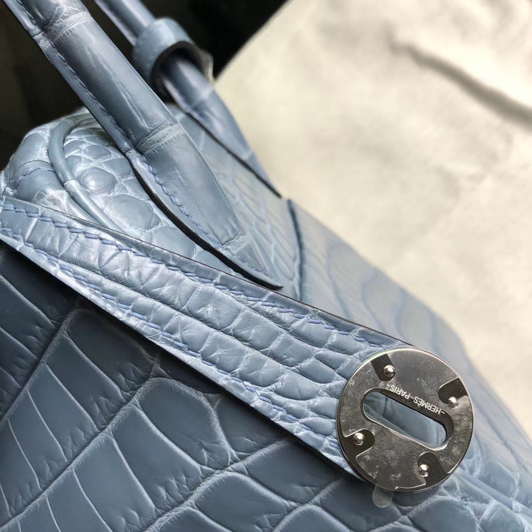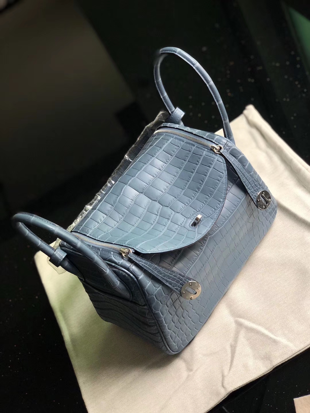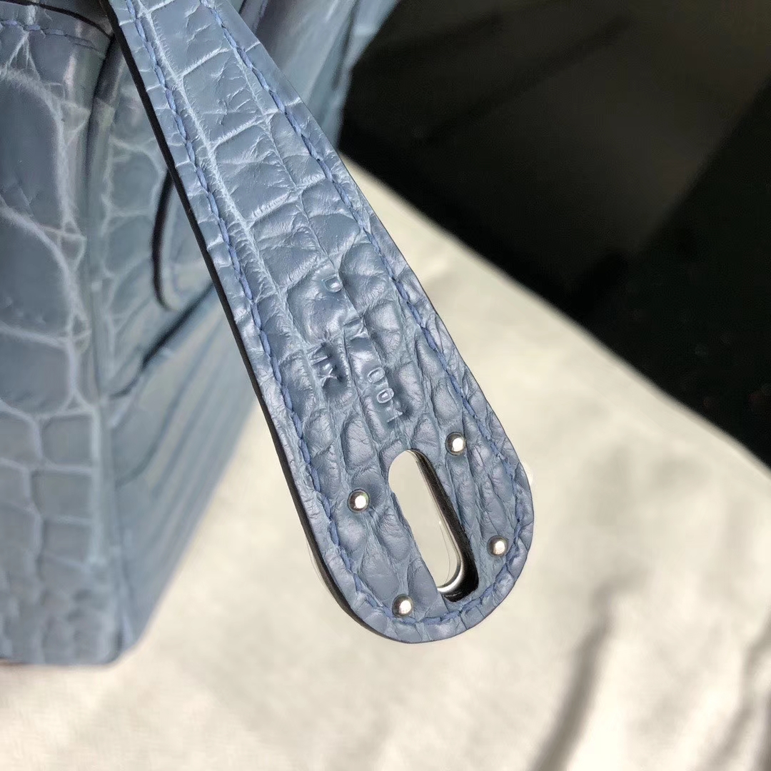 Hermès(爱马仕)Lindy 26cm Crocodile matt 雾面鳄鱼 雾霾蓝 银扣 顶级手缝 定制 2020年4月25日 0 【鳄鱼世家】www.Eyubao.com Lindy 26 Lindy 琳迪包 品牌:Hermès(爱马仕);类别:Lindy 琳迪包;颜色:雾霾蓝;材质:精选雾面鳄鱼皮;等级:顶级;附件:全套包装礼盒;尺寸:26cm;功能:手提单肩包