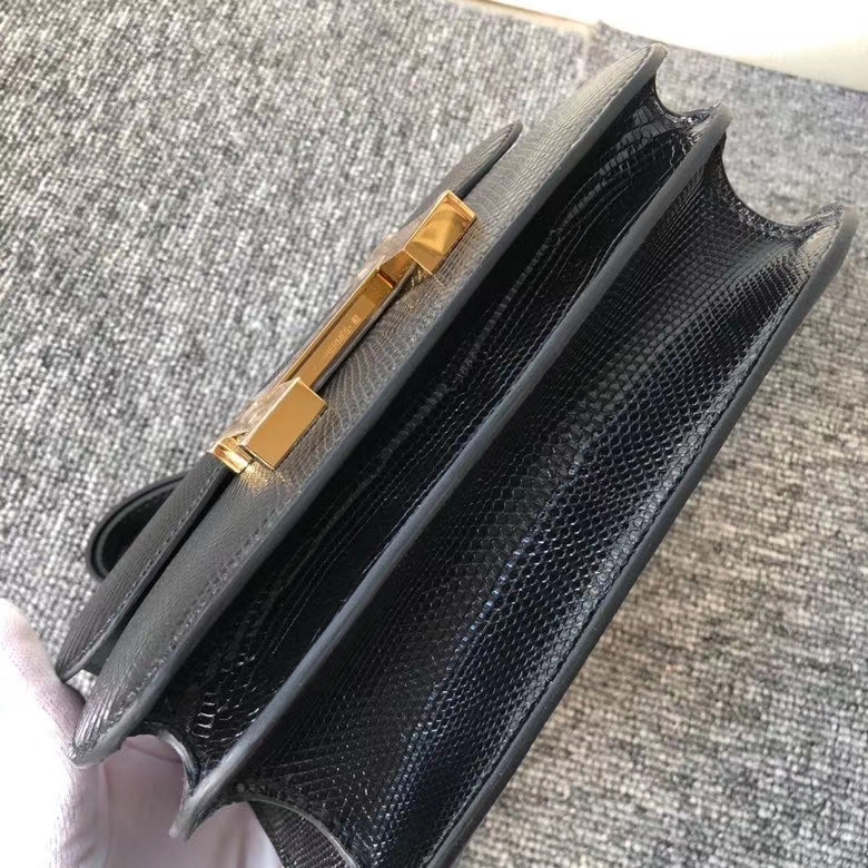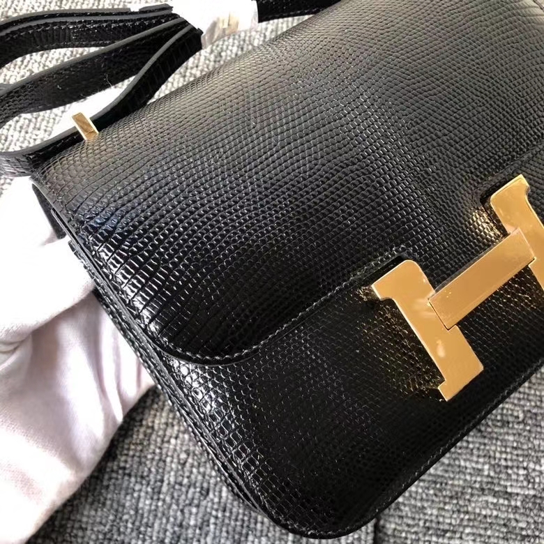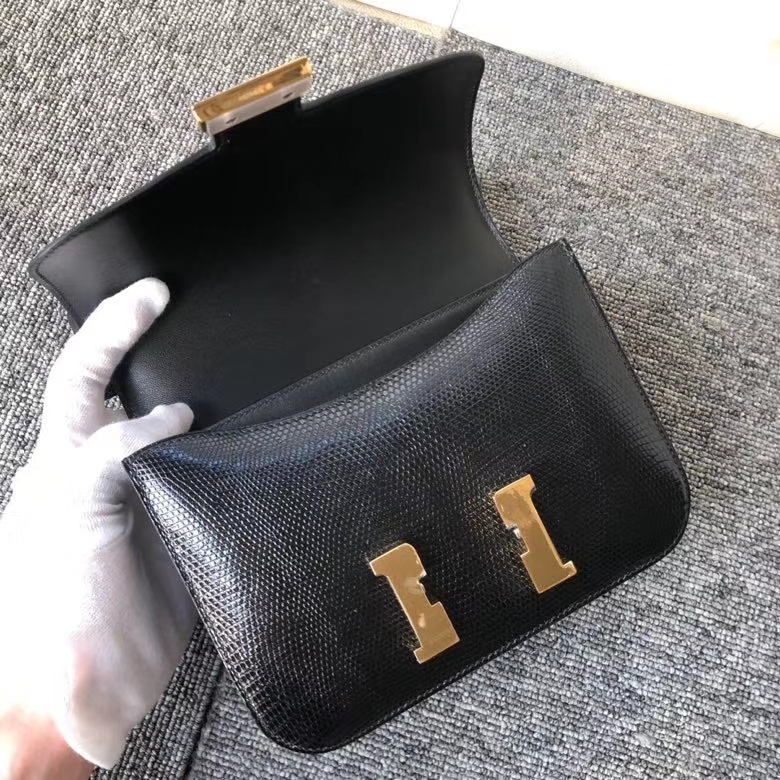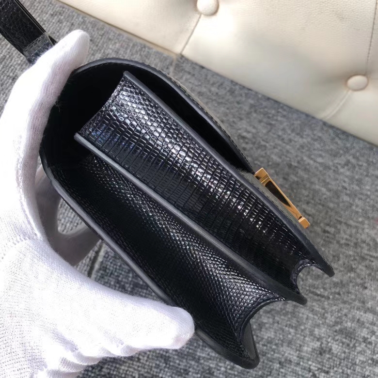 Hermès(爱马仕)Constance18cm Lizard 进口亮面蜥蜴 ck89 黑色 Noir 金扣 顶级手缝 定制 2020年5月16日 0 【鳄鱼世家】www.Eyubao.com Constance 18 Constance 空姐包 Lizard 蜥蜴皮 品牌:Hermès(爱马仕);类别:Constance 空姐包;颜色:黑色;材质:进口亮面蜥蜴;等级:顶级;附件:全套包装礼盒;尺寸:18cm;功能:单肩背包
