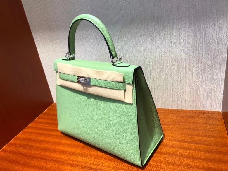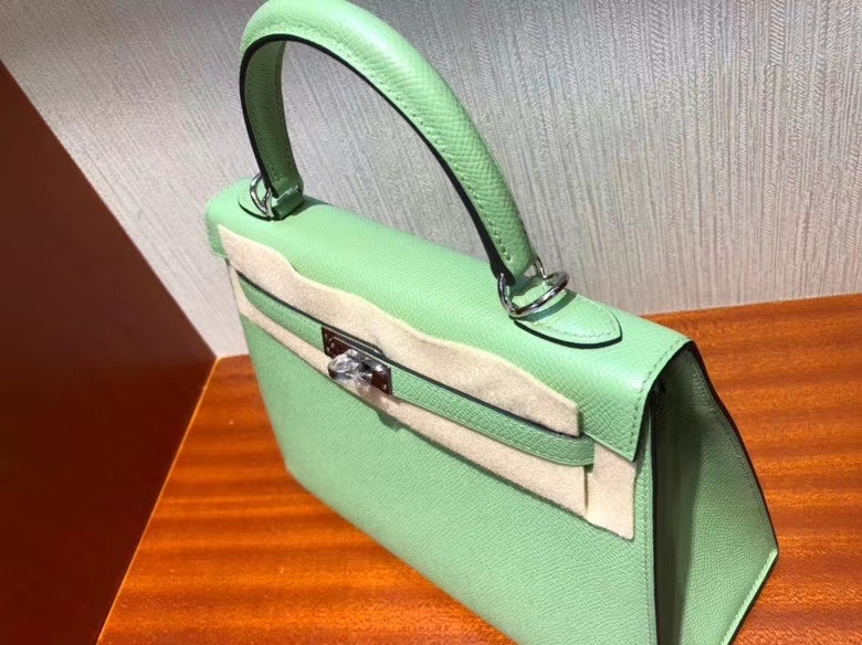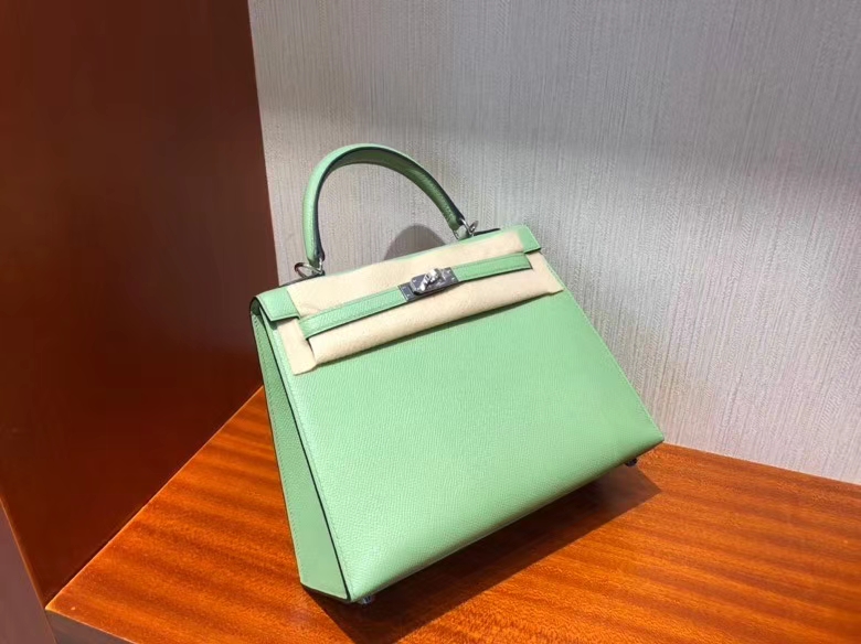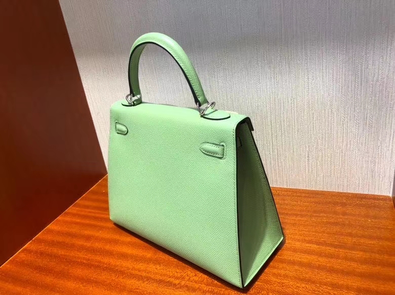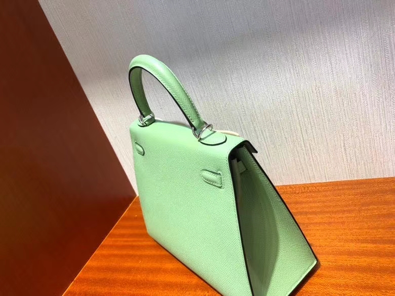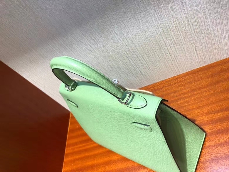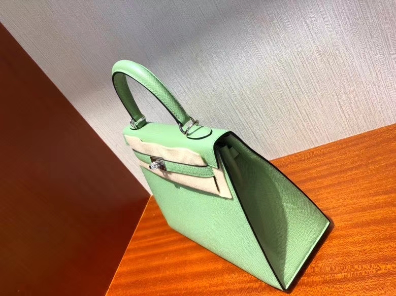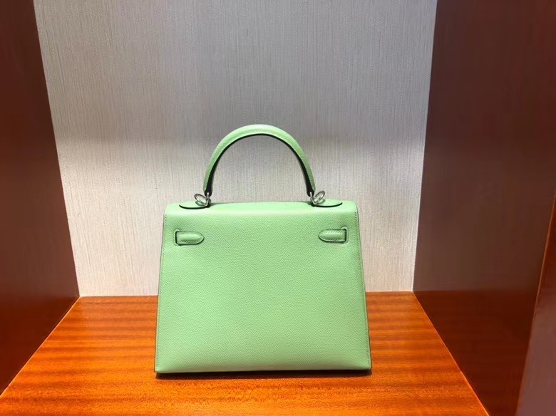 Hermès(爱马仕)Kelly 凯莉包 Epsom 原厂掌纹皮 3I 牛油果绿 银扣 25cm 顶级手缝 现货 2020年5月16日 0 【鳄鱼世家】www.Eyubao.com Kelly 25 Kelly 凯莉包 品牌:Hermès(爱马仕);类别:Kelly 凯莉包;颜色:牛油果绿;原厂掌纹皮;等级:顶级;附件:全套包装礼盒;尺寸:25cm;功能:单肩背包