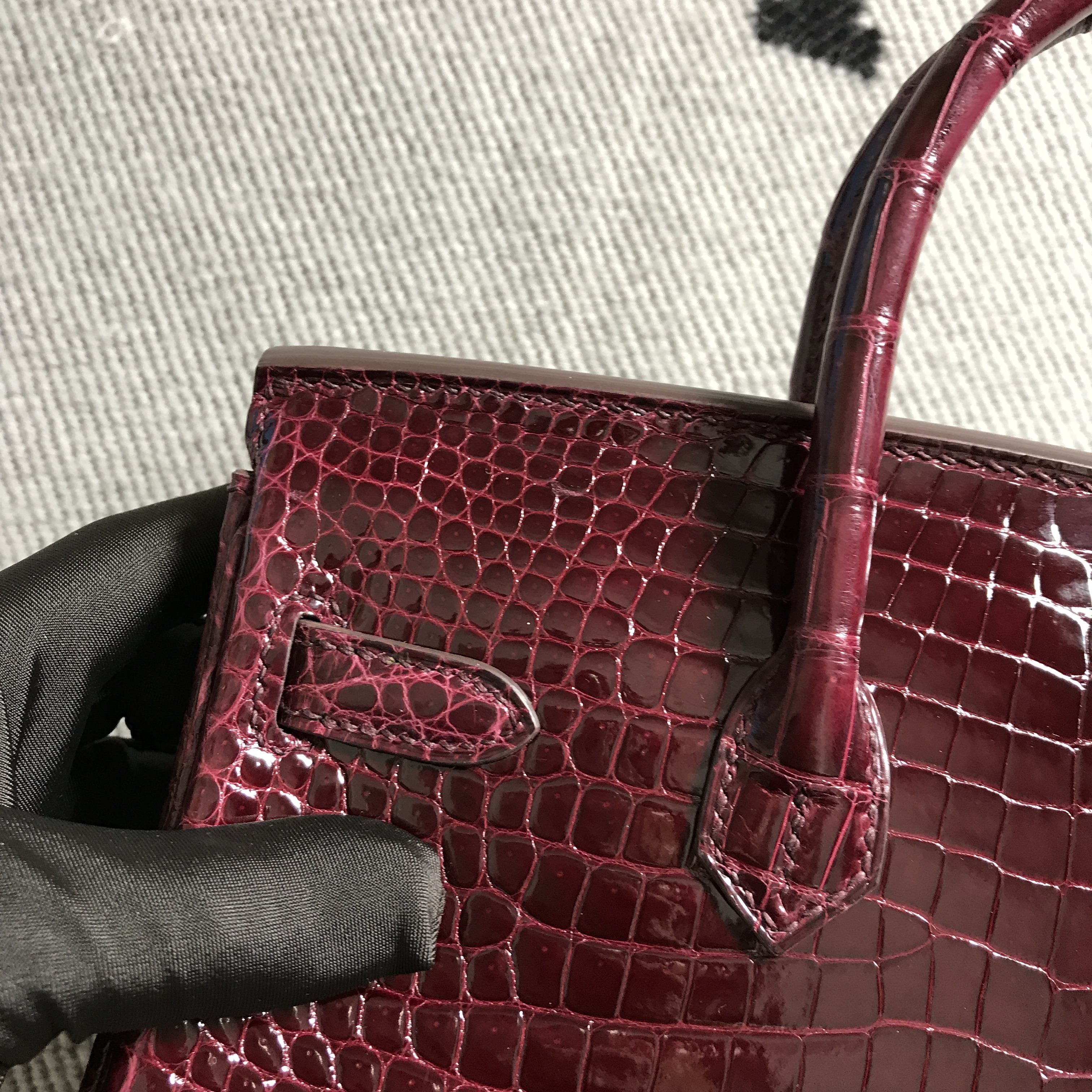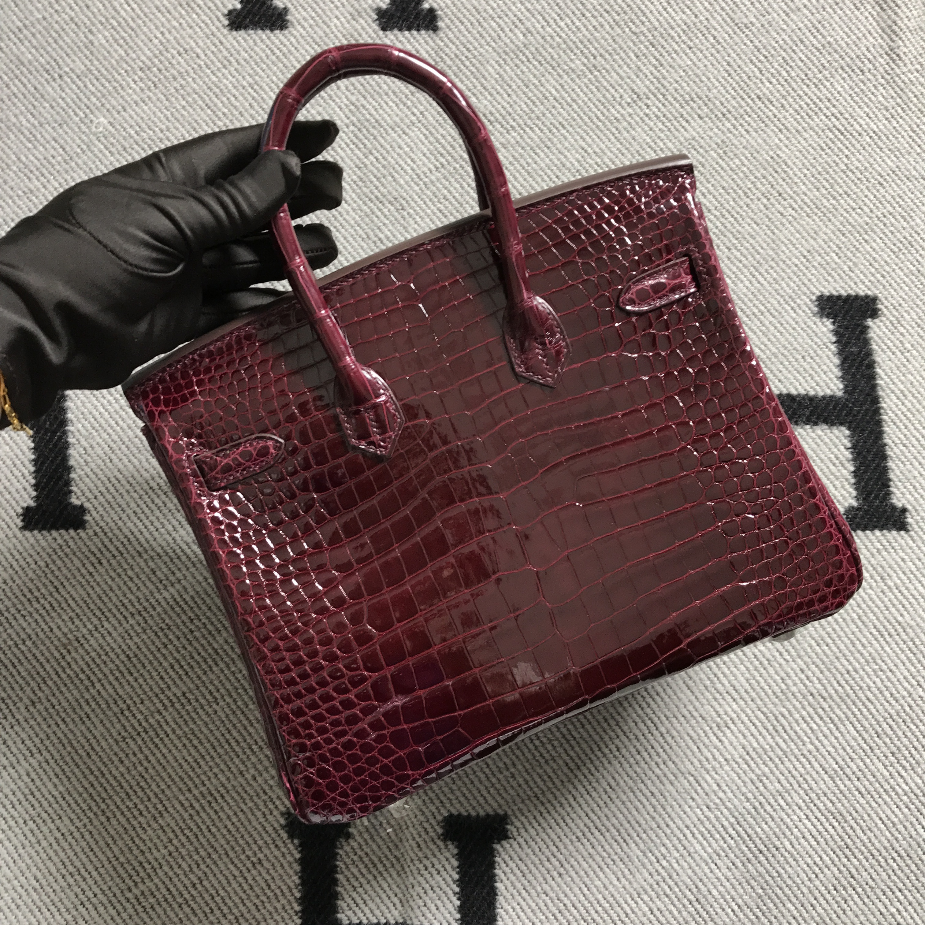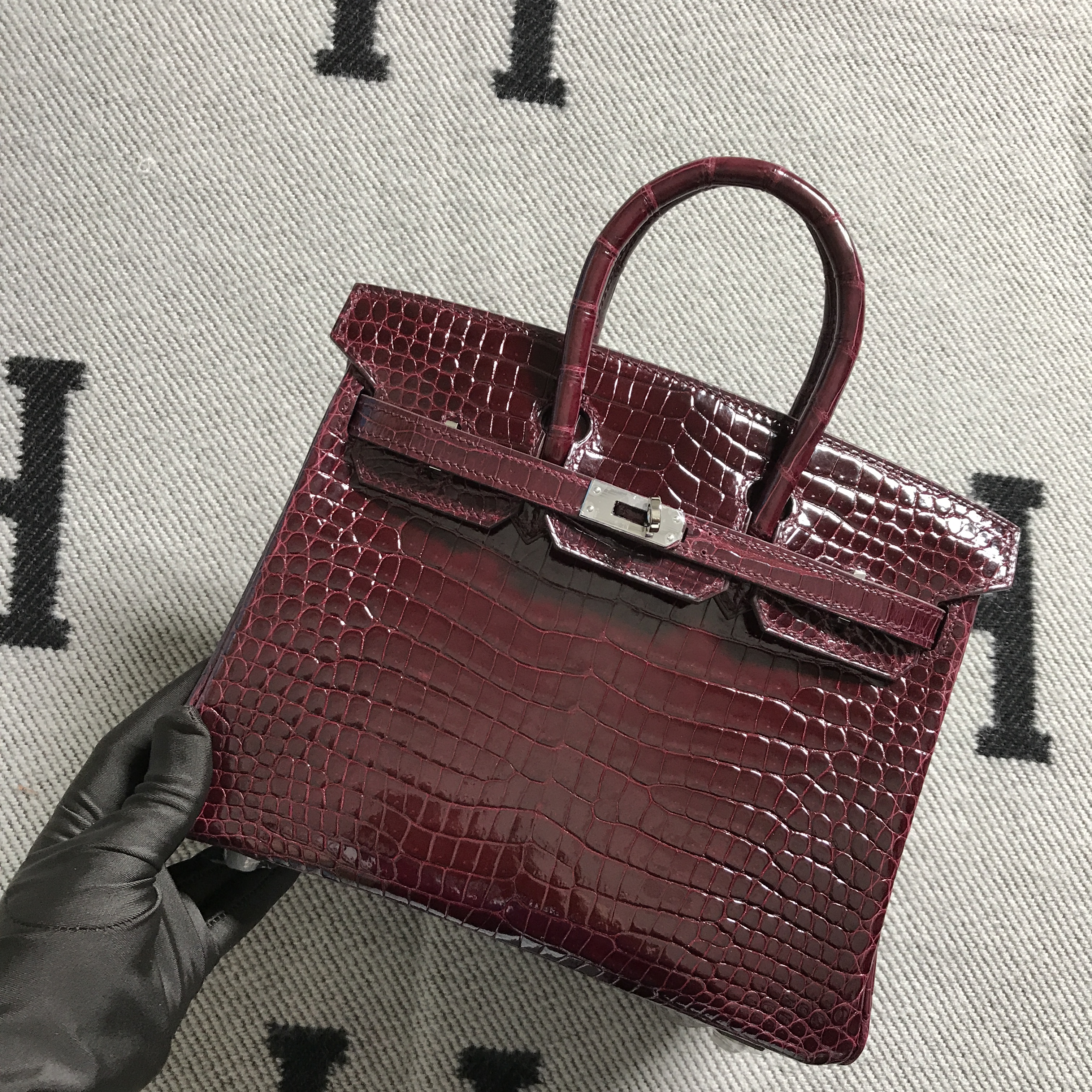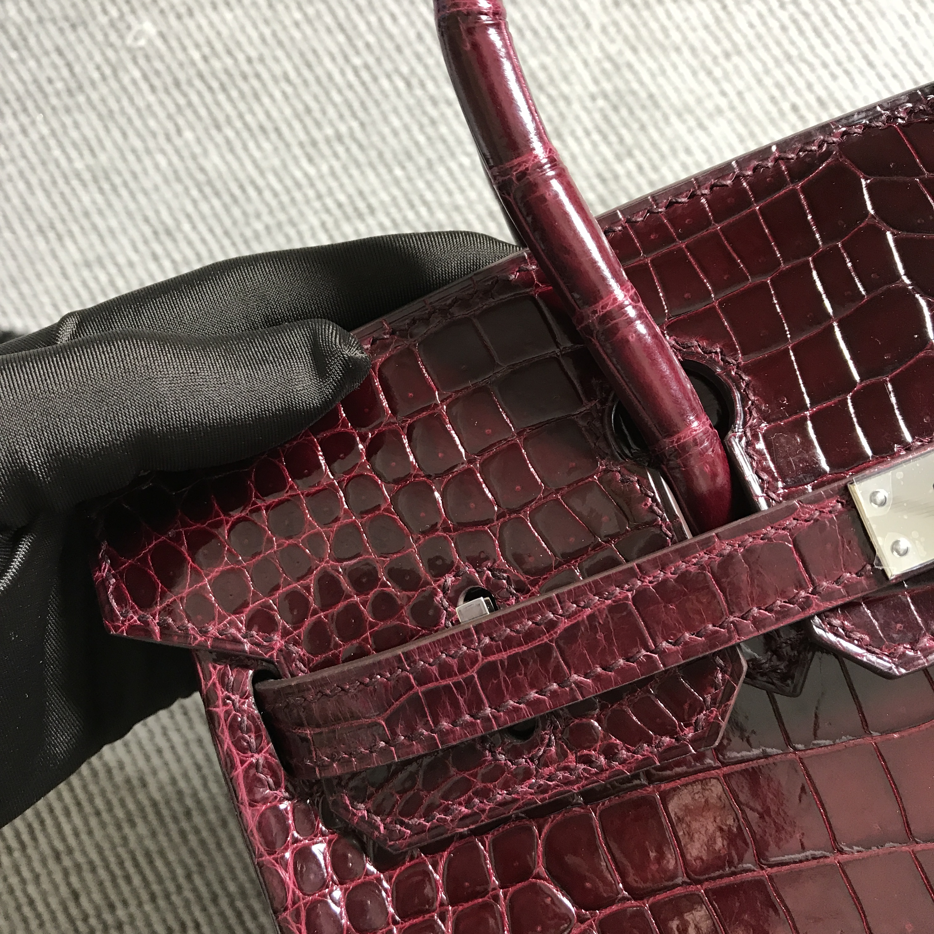 Hermès(爱马仕)Birkin 铂金包 酒红色 湾鳄 银扣 25cm 2018年8月6日 0 【鳄鱼世家】www.Eyubao.com Birkin 25 Birkin 铂金包 品牌:Hermès(爱马仕);类别:Birkin 铂金包;颜色:酒红色;材质:精选原版皮;等级:顶级;附件:全套包装礼盒;尺寸:25cm;功能:手提单肩包