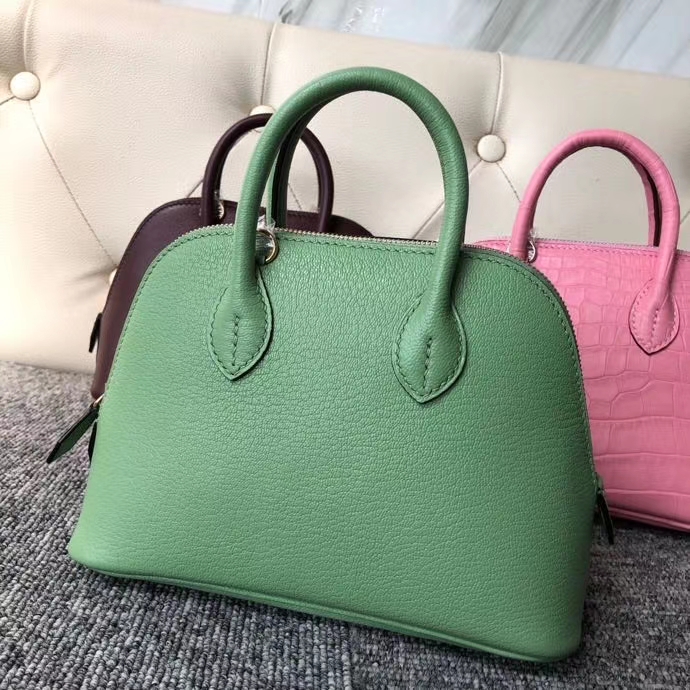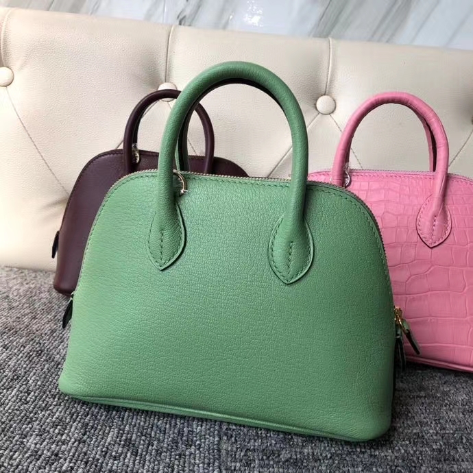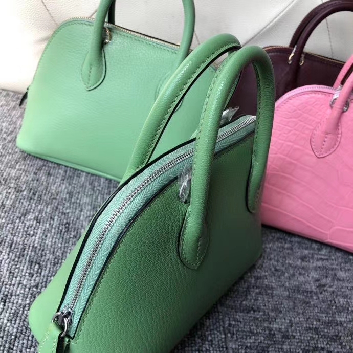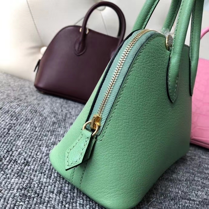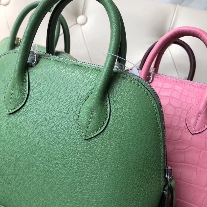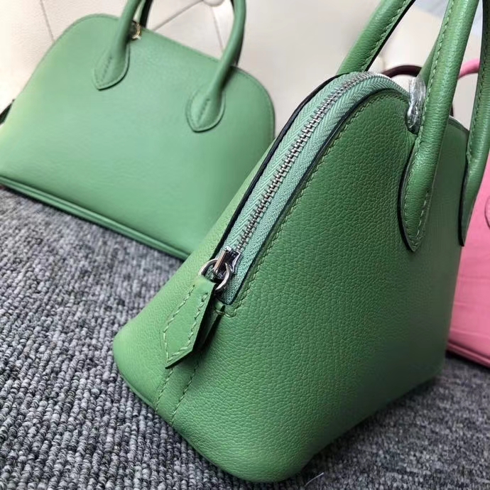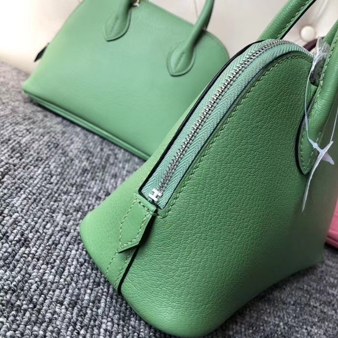 Hermès(爱马仕)Mini Bolide 山羊皮 Chevre 3i 牛油果绿 顶级手缝 小可爱 现货 2020年5月19日 0 【鳄鱼世家】www.Eyubao.com Bolide 保龄球包 品牌:Hermès(爱马仕);类别:Bolide 保龄球包;颜色:牛油果绿;材质:山羊皮;等级:顶级;附件:全套包装礼盒;功能:手提单肩包