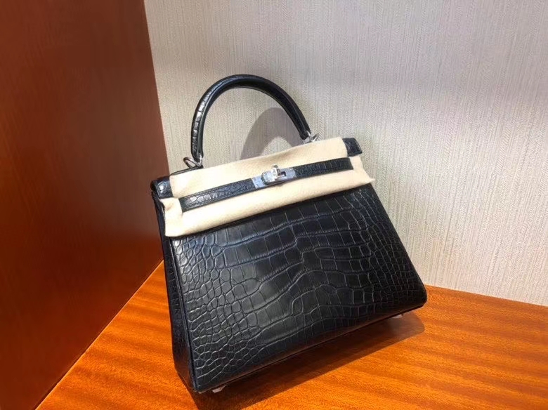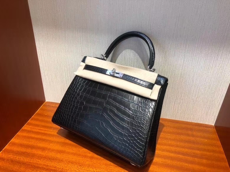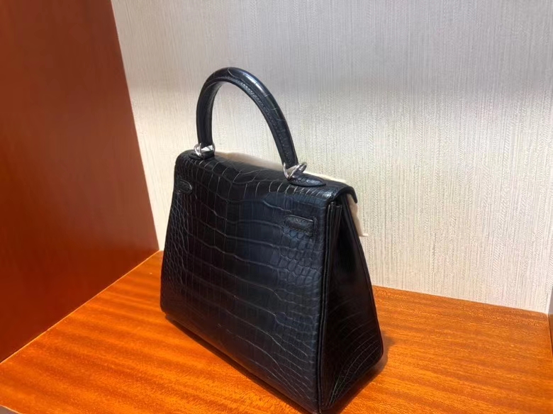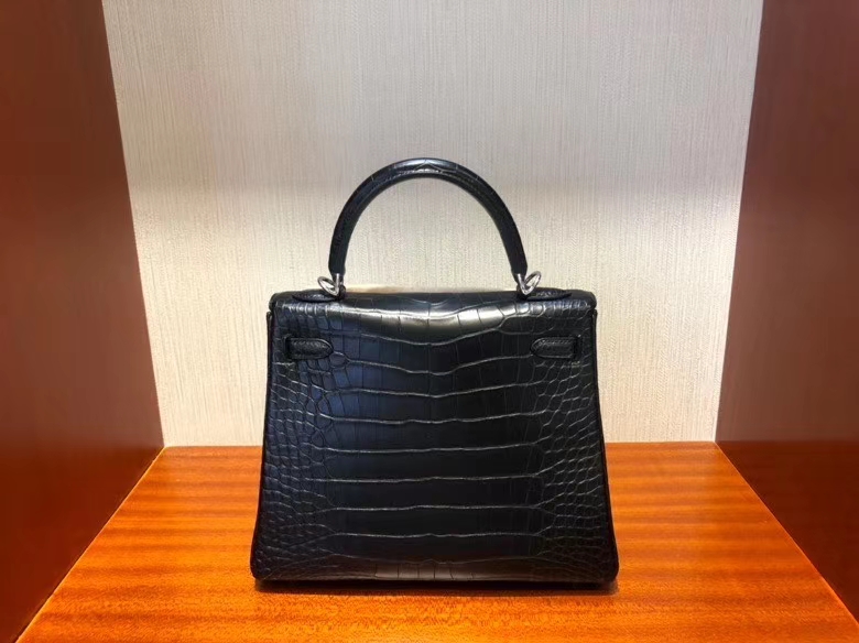 Hermès(爱马仕)Kelly 25cm Alligator matt 雾面鳄鱼 ck89 黑色 Noir 银扣 顶级手缝 现货 2020年5月23日 0 【鳄鱼世家】www.Eyubao.com Alligator 美洲鳄 Kelly 25 Kelly 凯莉包 品牌:Hermès(爱马仕);类别:Kelly 凯莉包;颜色:黑色;材质:原厂雾面鳄鱼皮;等级:顶级;附件:全套包装礼盒;尺寸:25cm;功能:手提单肩包