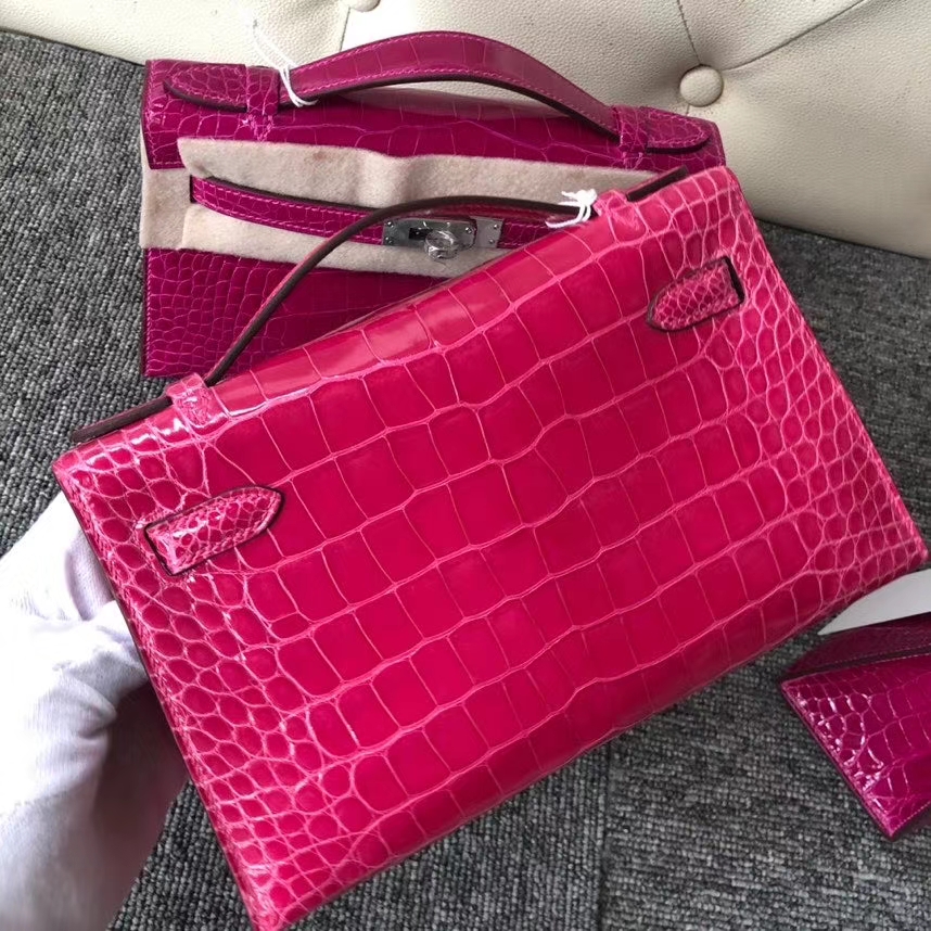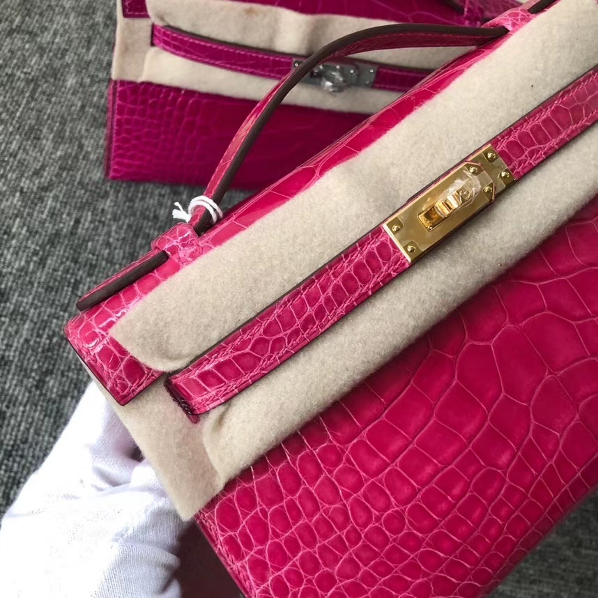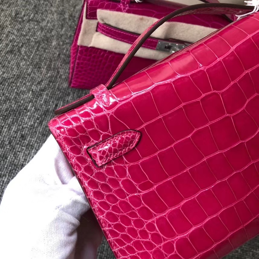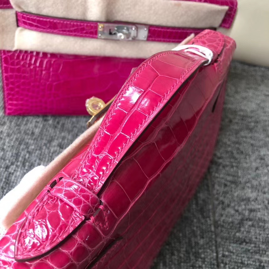 Hermès(爱马仕)Mini kelly pochette 22cm Alligator shiny 亮面鳄鱼 E5 桃红 金扣 现货 2020年5月30日 0 【鳄鱼世家】www.Eyubao.com Alligator 美洲鳄 Mini Kelly 1 Mini Kelly 迷你凯莉 品牌:Hermès(爱马仕);类别:Mini Kelly 迷你凯莉;颜色:桃红;材质:亮面鳄鱼;等级:顶级;附件:全套包装礼盒;尺寸:22cm;功能:单肩背包