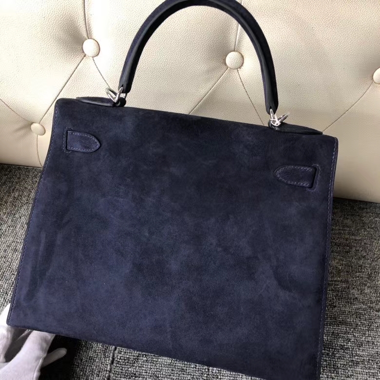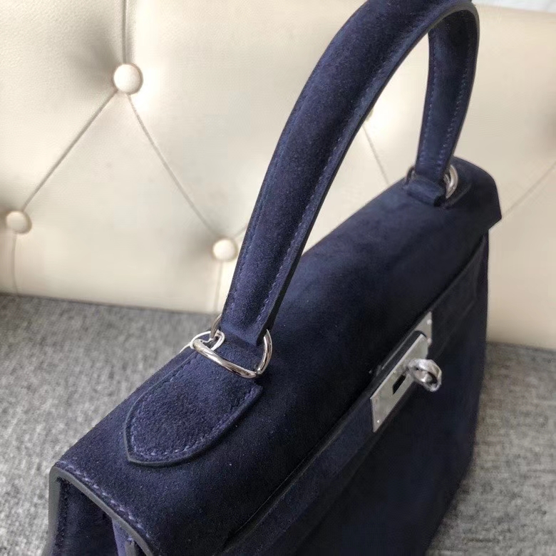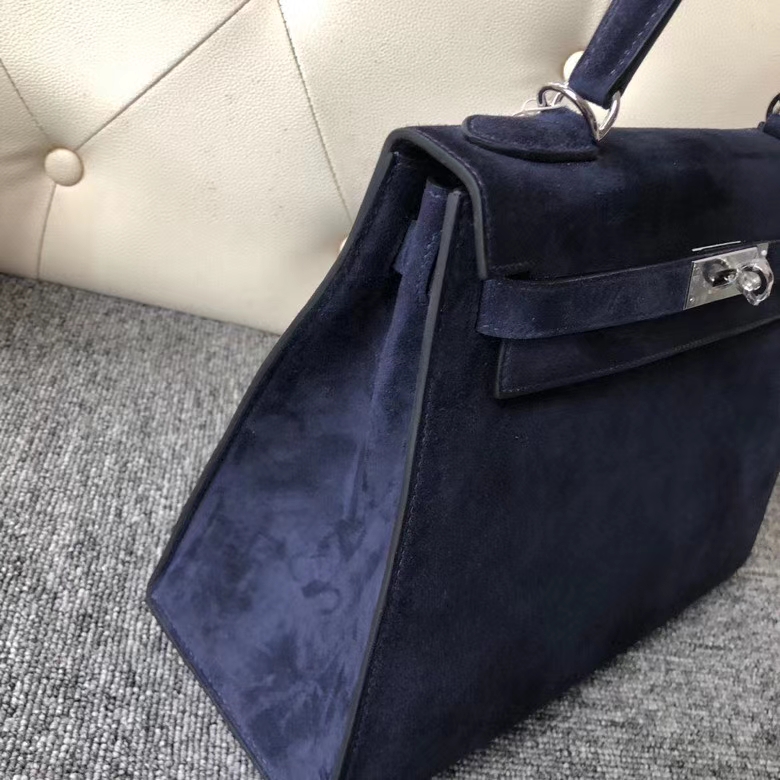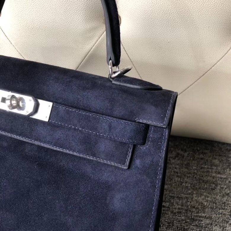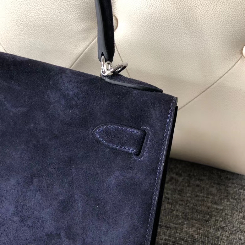 Hermès(爱马仕)Kelly 28cm 麂皮 宝石蓝 银扣 顶级手缝 定制 2020年6月2日 0 【鳄鱼世家】www.Eyubao.com Kelly 28 Kelly 凯莉包 品牌:Hermès(爱马仕);类别:Kelly 凯莉包;颜色:宝石蓝;材质:麂皮;等级:顶级;附件:全套包装礼盒;尺寸:28cm;功能:单肩背包