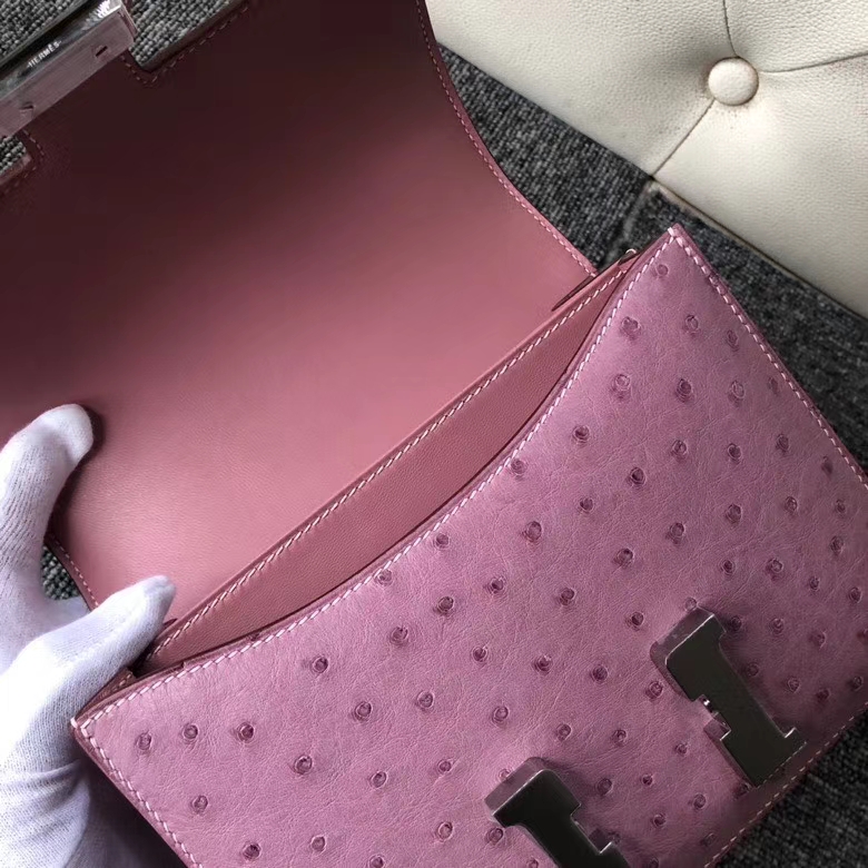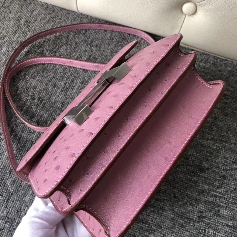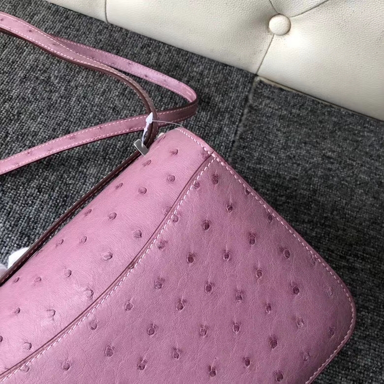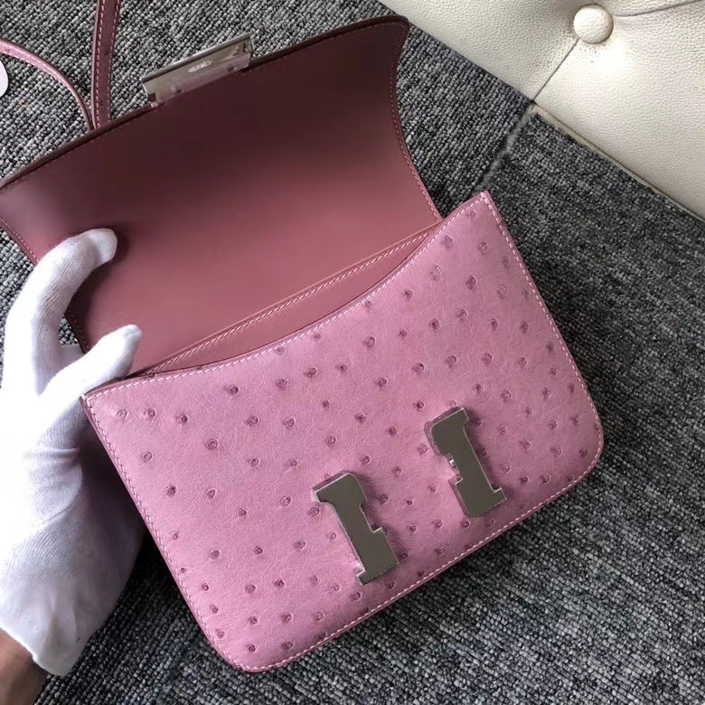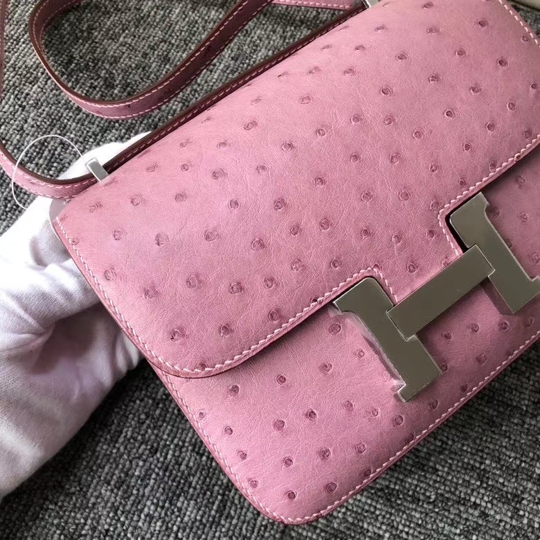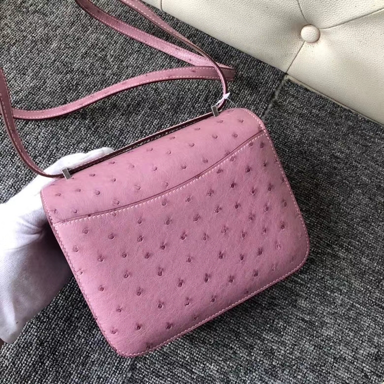 Hermès(爱马仕)Constance 18cm Ostrich kk鸵鸟 浅粉色 银扣 顶级手缝 2020年6月6日 0 【鳄鱼世家】www.Eyubao.com Constance 18 Constance 空姐包 品牌:Hermès(爱马仕);类别:Constance 空姐包;颜色:浅粉色;材质:鸵鸟皮;等级:顶级;附件:全套包装礼盒;尺寸:18cm;功能:单肩背包