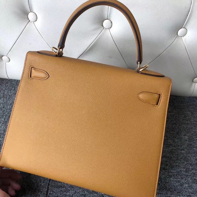 Hermès(爱马仕)kelly 25cm Epsom 原厂掌纹皮 2S 芝麻黄 金扣 顶级手缝 定制 2020年6月11日 0 【鳄鱼世家】www.Eyubao.com Kelly 25 Kelly 凯莉包 品牌:Hermès(爱马仕);类别:Kelly 凯莉包;颜色:芝麻黄;材质:原厂掌纹皮Eposm;等级:顶级;附件:全套包装礼盒;尺寸:25cm;功能:手提单肩背包
