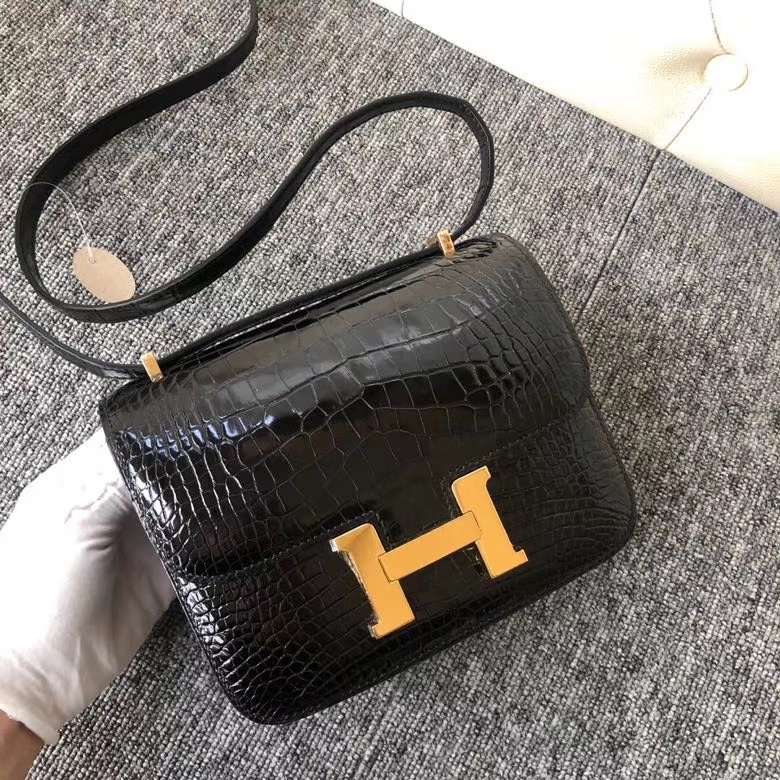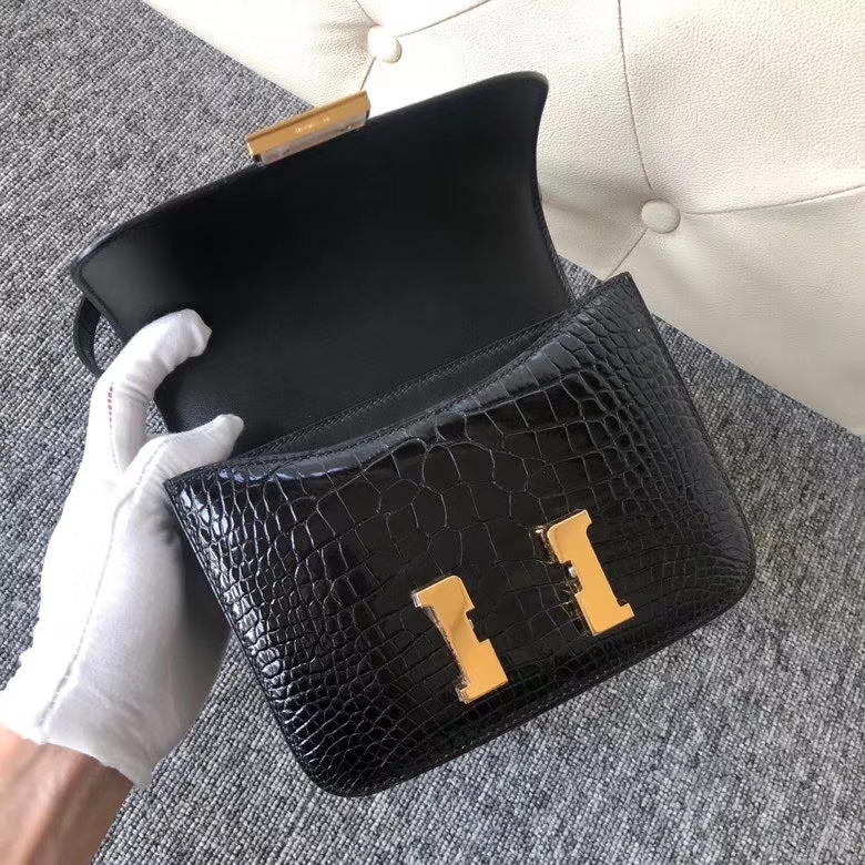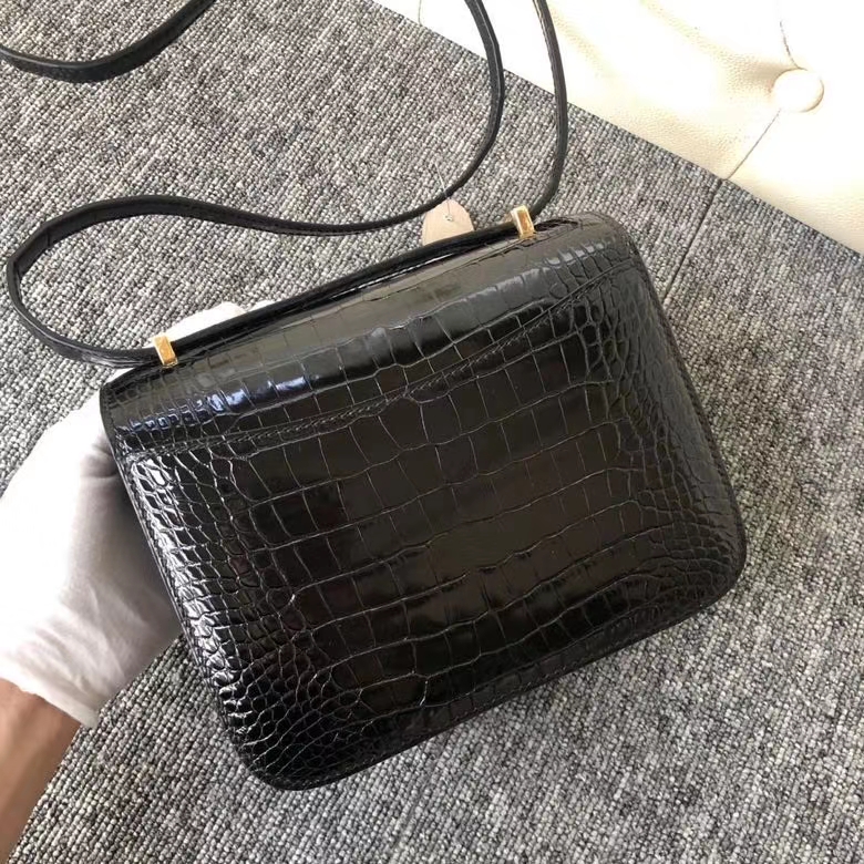 Hermès(爱马仕)Constance 18cm Alligator shiny 亮面鳄鱼 黑色 金扣 顶级手缝 现货 2020年6月11日 0 【鳄鱼世家】www.Eyubao.com Constance 18 Constance 空姐包 Niloticus 尼罗鳄 品牌:Hermès(爱马仕);类别:Constance 空姐包;颜色:黑色;材质:Alligator shiny 亮面鳄鱼;等级:顶级;附件:全套包装礼盒;尺寸:18cm;功能:单肩背包