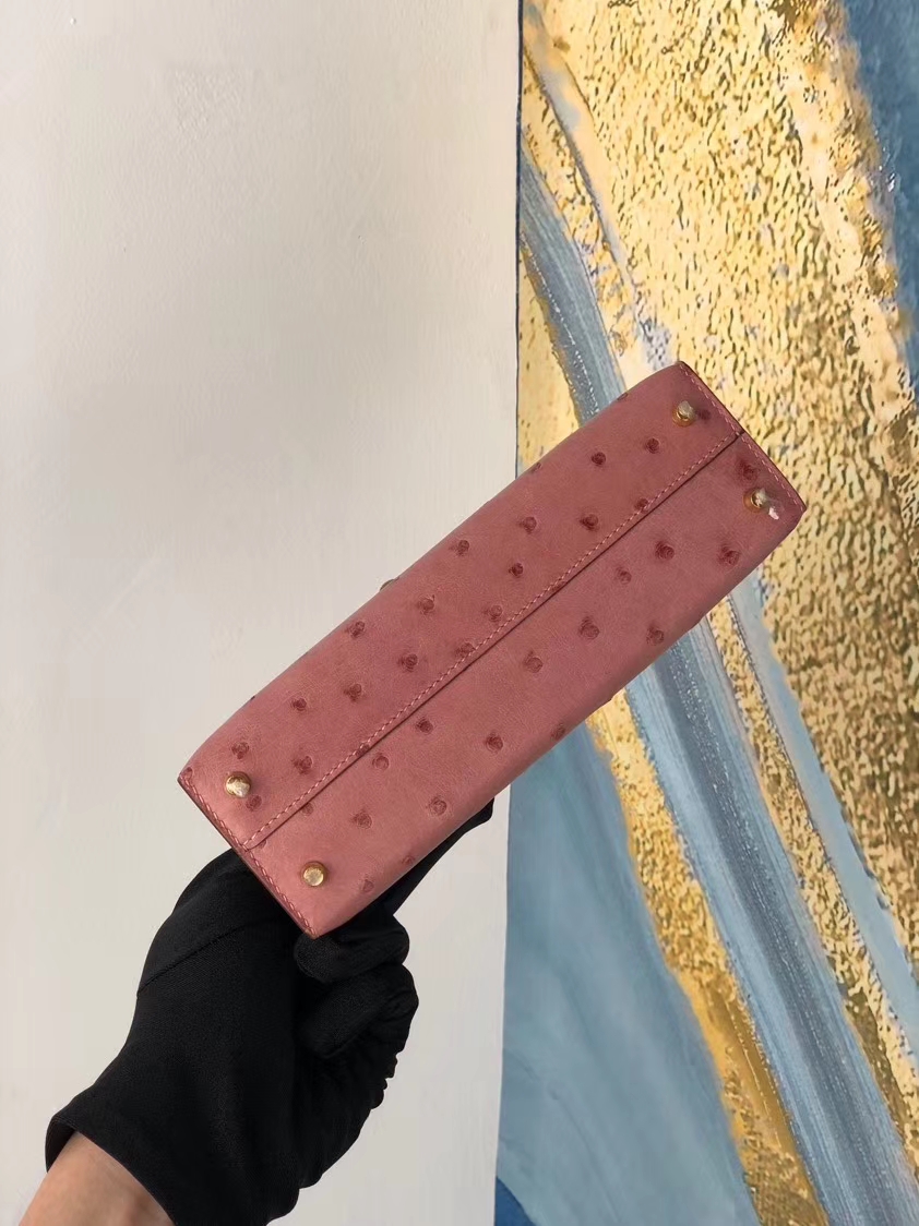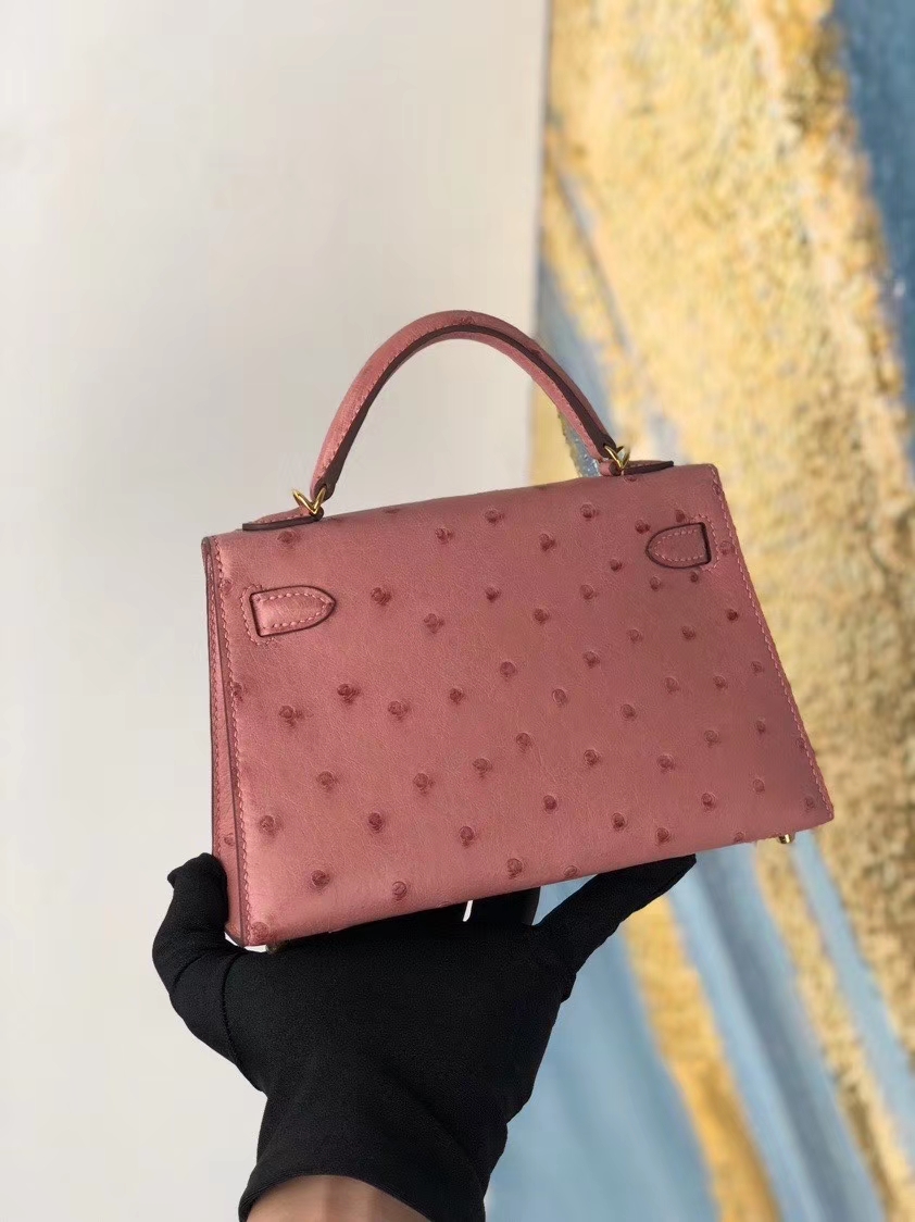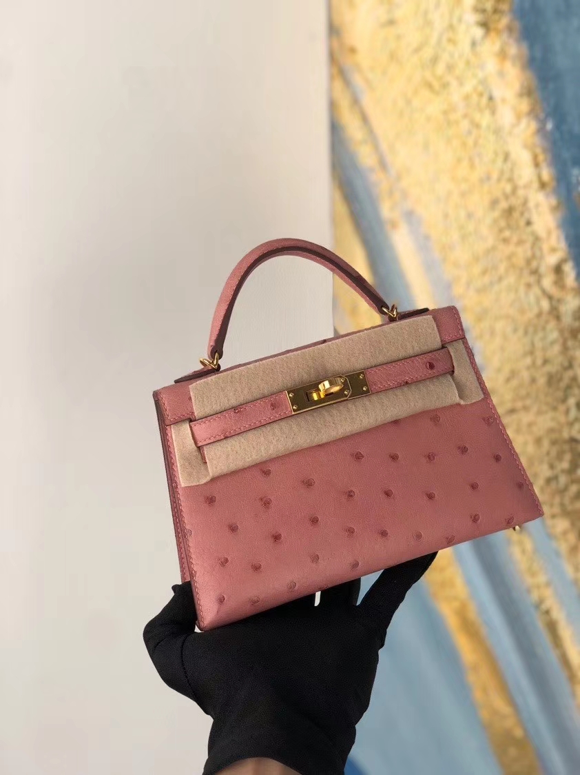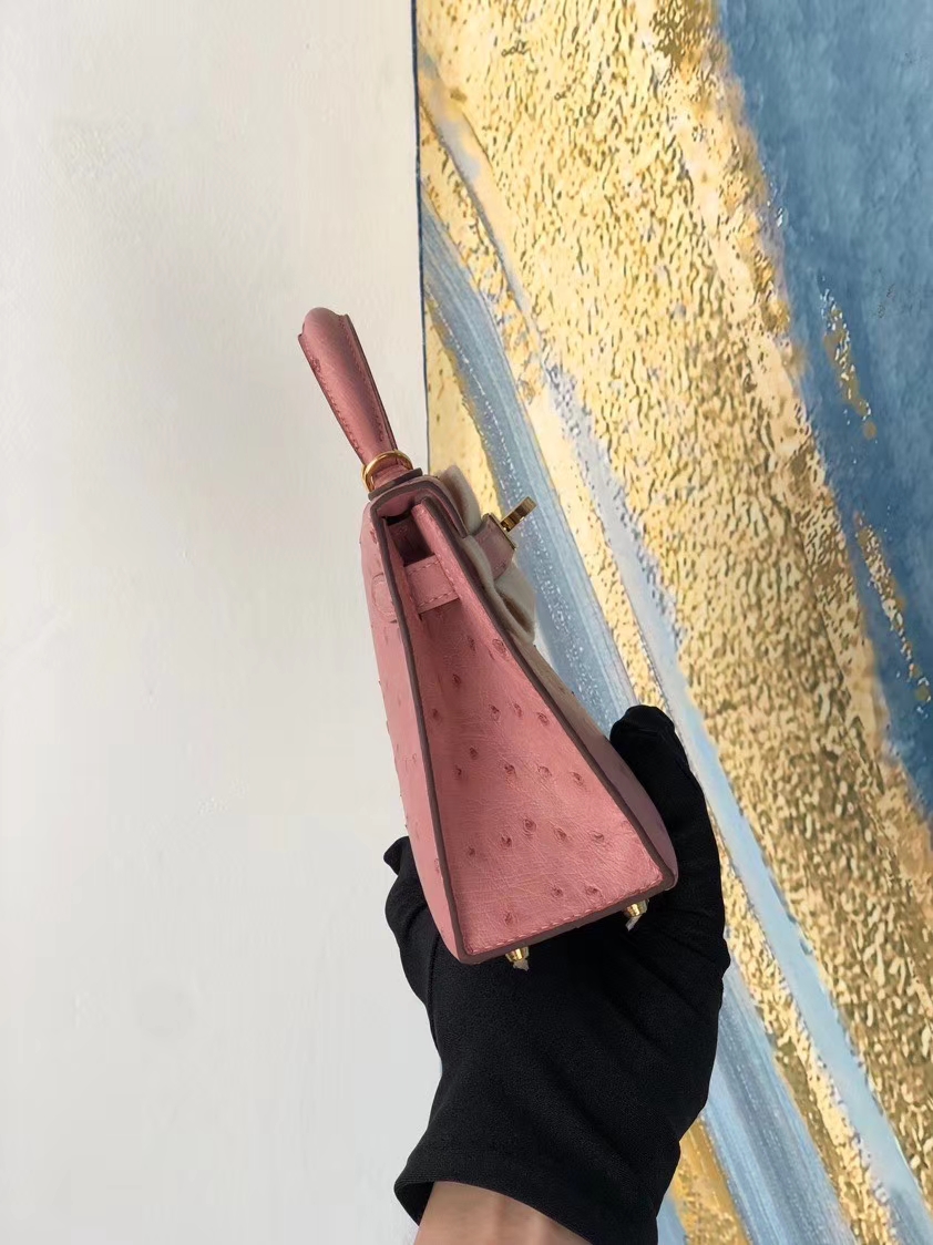Hermès(爱马仕)Mini kelly ll Ostrich kk鸵鸟 cc94 陶瓷粉 金扣 顶级手缝 现货 2020年6月16日 0 【鳄鱼世家】www.Eyubao.com Mini Kelly 2 Mini Kelly 迷你凯莉 Ostrich 鸵鸟皮 品牌:Hermès(爱马仕);类别:Mini Kelly 迷你凯莉;颜色:陶瓷粉;材质:鸵鸟皮;等级:顶级;附件:全套包装礼盒;尺寸:19cm;功能:单肩背包