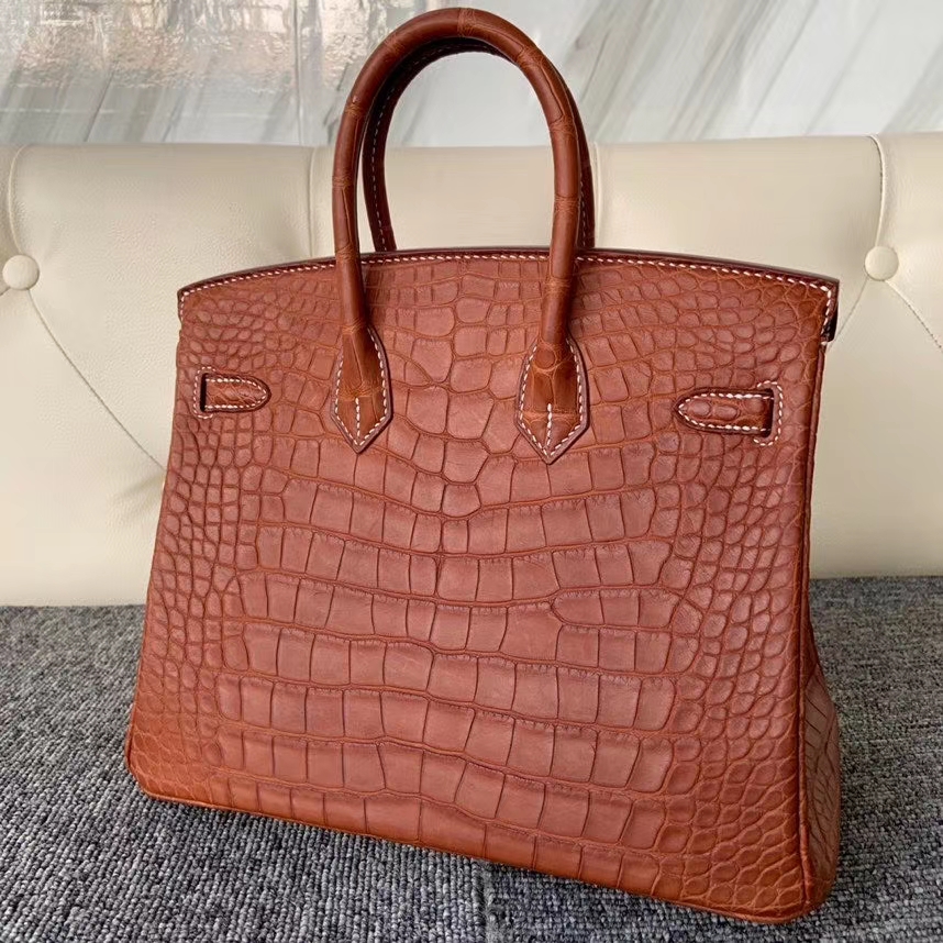 Hermès(爱马仕)Birkin 25cm Alligator matt 雾面鳄鱼 ck37 金棕色 马鞍皮色 银扣 白色线 顶级手缝 定制 2020年6月20日 0 【鳄鱼世家】www.Eyubao.com Birkin 25 Birkin 铂金包 Niloticus 尼罗鳄 品牌:Hermès(爱马仕);类别:Birkin 铂金包;颜色:金棕色 马鞍皮色;材质:雾面鳄鱼;等级:顶级;附件:全套包装礼盒;尺寸:25cm;功能:手提单肩包