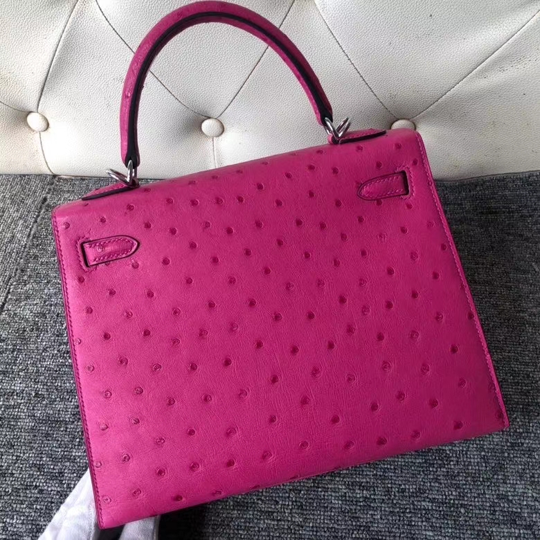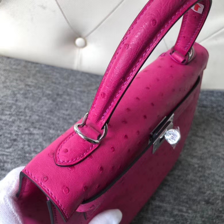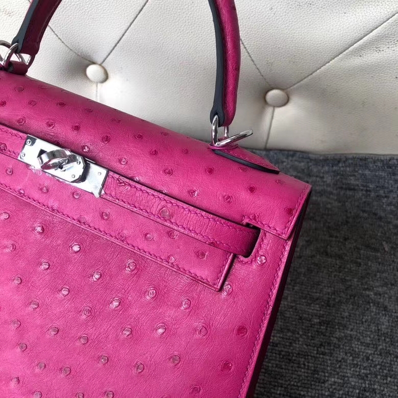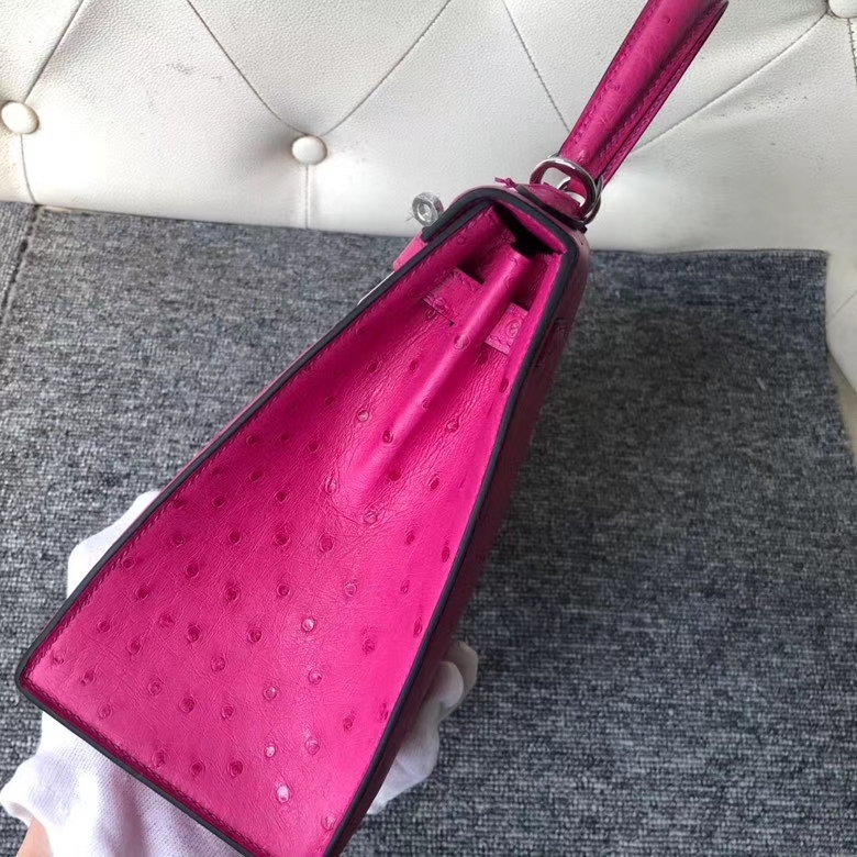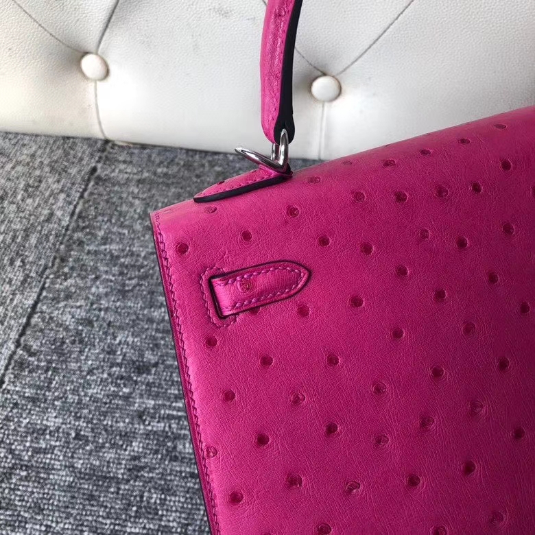 Hermès(爱马仕)kelly 25cm Ostrich kk 鸵鸟皮 E5 桃红 银扣 顶级手缝 定制 2020年6月20日 0 【鳄鱼世家】www.Eyubao.com Kelly 25 Kelly 凯莉包 Ostrich 鸵鸟皮 品牌:Hermès(爱马仕);类别:Kelly 凯莉包;颜色:桃红色;材质:鸵鸟皮;等级:顶级;附件:全套包装礼盒;尺寸:25cm;功能:手提单肩包