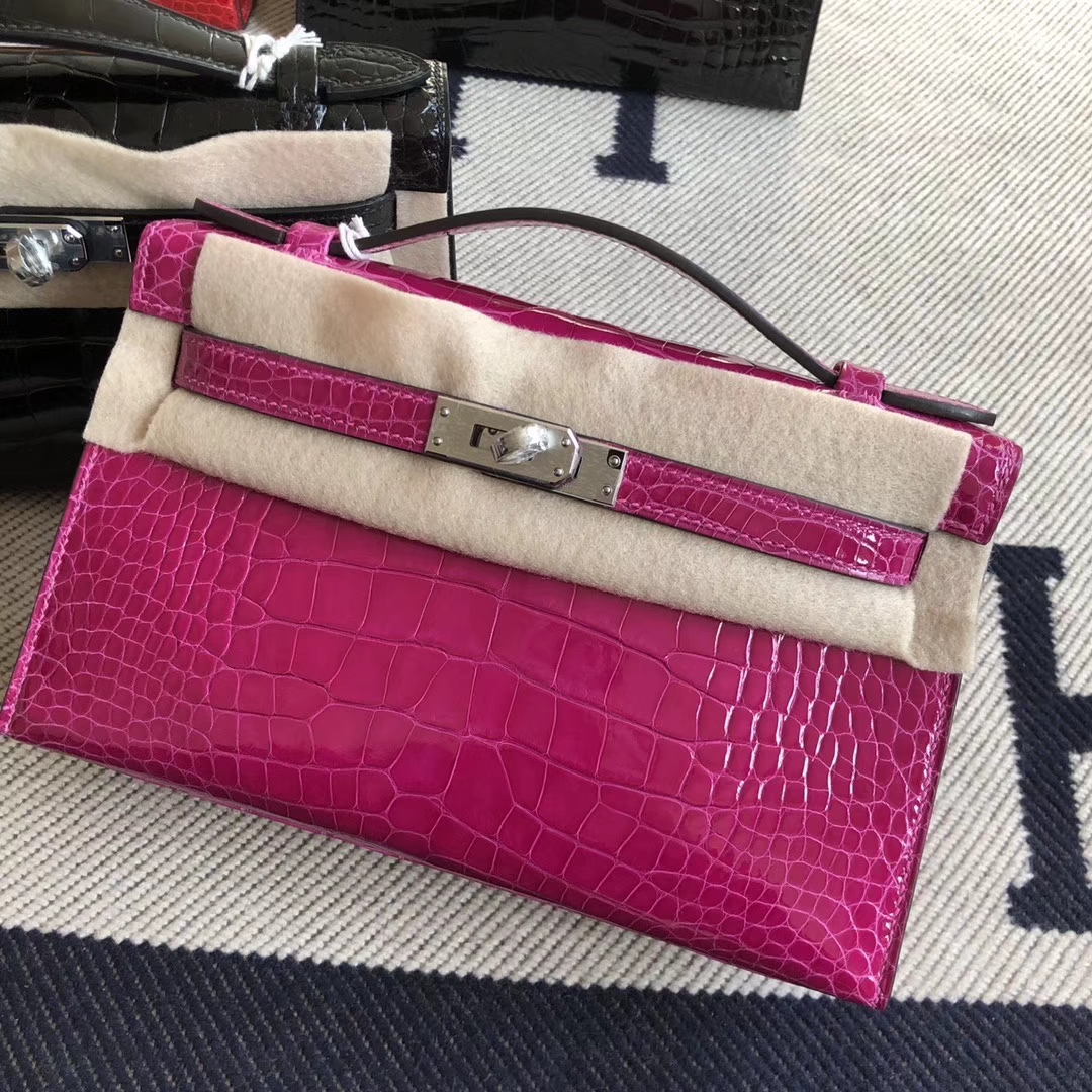 Mini Kelly 1 Mini Kelly 迷你凯莉 Hermès(爱马仕)Minikelly pochette 22cm 亮面鳄鱼 J5 天方夜谭粉紫 银扣 手拿包 晚宴包 2019年12月7日 0