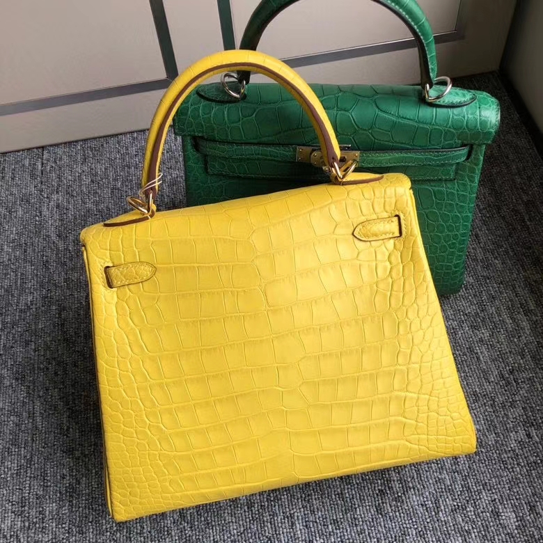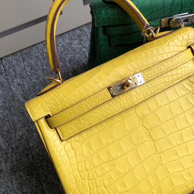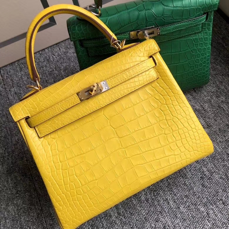 Hermès(爱马仕)Kelly 25cm Alligator matt 雾面鳄鱼 m9 金盏花黄 金扣 顶级手缝 现货 2020年7月7日 0 【鳄鱼世家】www.Eyubao.com Alligator 美洲鳄 Kelly 25 Kelly 凯莉包 品牌:Hermès(爱马仕);类别:Kelly 凯莉包;颜色:金盏花黄;材质:雾面鳄鱼;等级:顶级;附件:全套包装礼盒;尺寸:25cm;功能:单肩背包