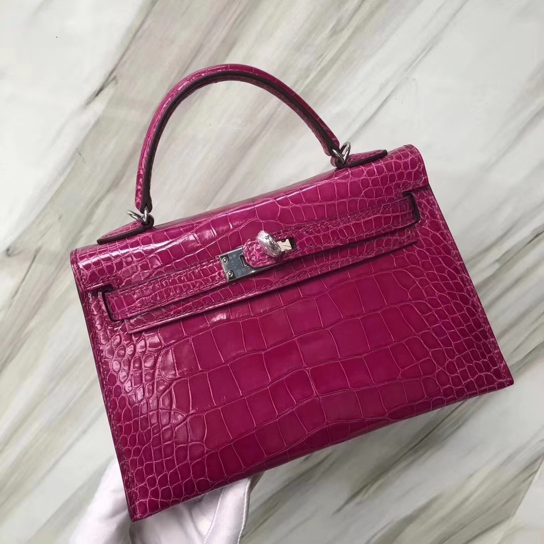 Mini Kelly 2 Mini Kelly 迷你凯莉 Hermès(爱马仕)Minikelly ll Alligator shiny 亮面鳄鱼 J5 天方夜谭粉紫 银扣 现货 2019年5月21日 0