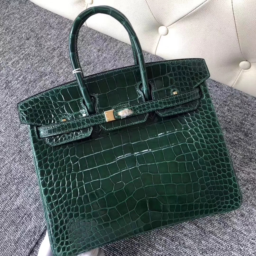 Birkin 25 Birkin 铂金包 Hermès(爱马仕)Birkin铂金包 Alligator shiny 亮面鳄鱼 ck67 祖母绿 vert fonce 金扣 25cm 2019年6月17日 0