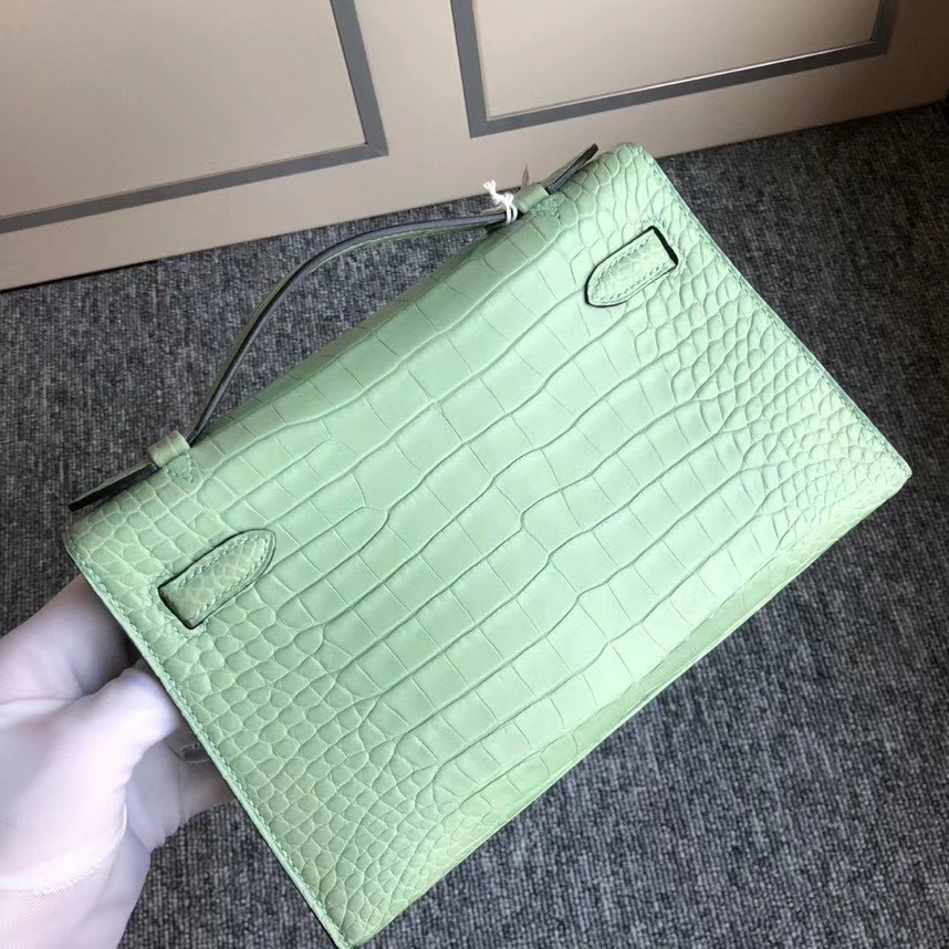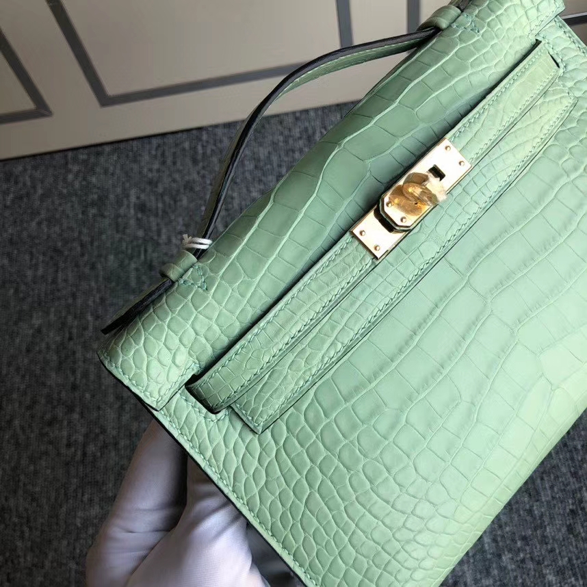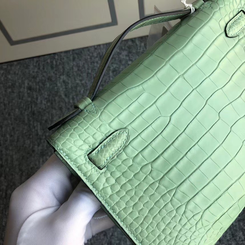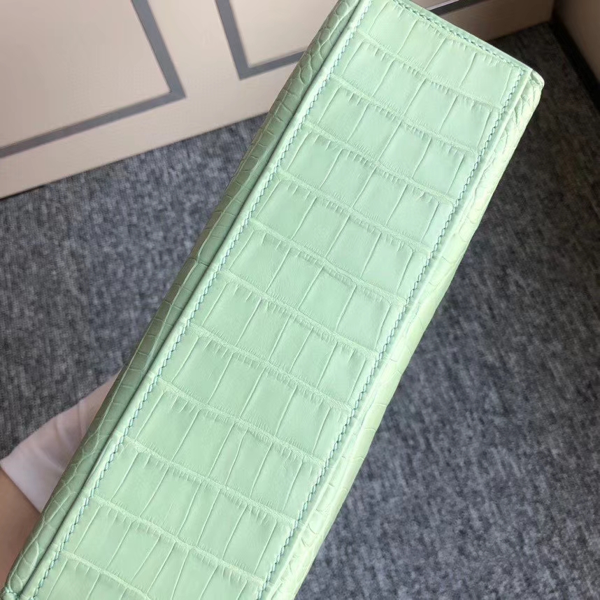 Hermès(爱马仕)Mini kelly pochette 22cm Alligator shiny 亮面鳄鱼 6U 薄荷绿 金扣 现货 2020年7月7日 0 【鳄鱼世家】www.Eyubao.com Alligator 美洲鳄 Mini Kelly 1 Mini Kelly 迷你凯莉 品牌:Hermès(爱马仕);类别:Mini Kelly 迷你凯莉;颜色:薄荷绿;材质:亮面鳄鱼;等级:顶级;附件:全套包装礼盒;尺寸:22cm;功能:单肩背包