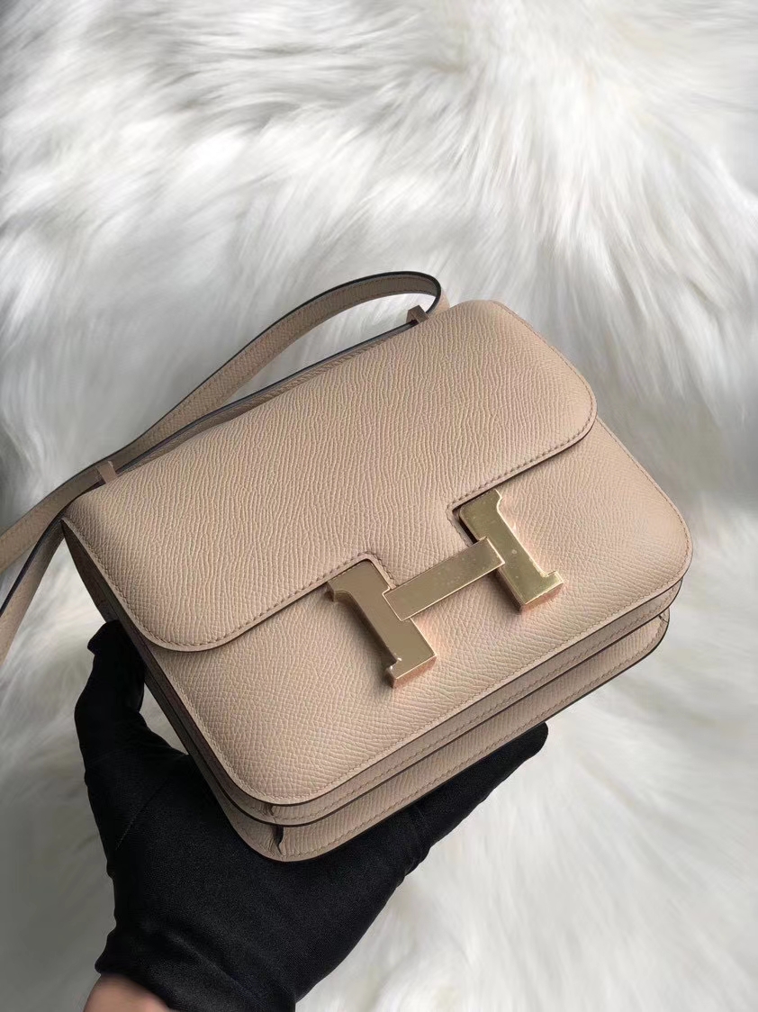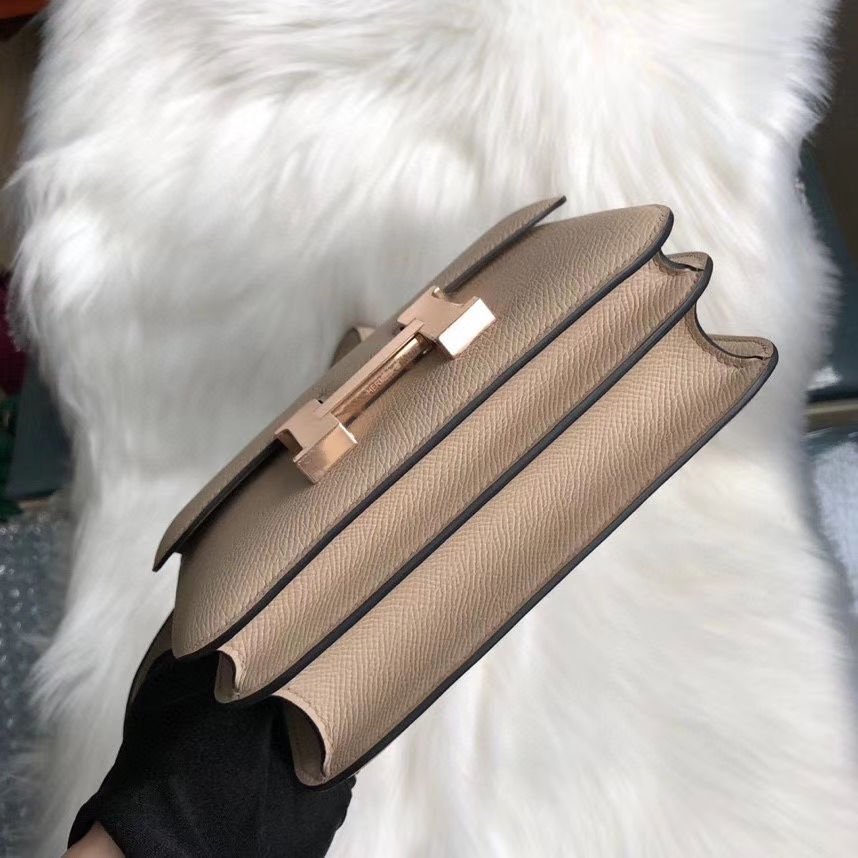 Hermès(爱马仕)Constance 18cm Epsom 原厂掌纹皮 S2 风衣灰内拼奶茶色 玫瑰金 Rose gold 顶级手缝 现货 2020年7月14日 0 【鳄鱼世家】www.Eyubao.com Constance 18 Constance 空姐包 品牌:Hermès(爱马仕);类别:Constance 空姐包;颜色:风衣灰内拼奶茶色;材质:原厂掌纹皮;等级:顶级;附件:全套包装礼盒;尺寸:18cm;功能:手提单肩包