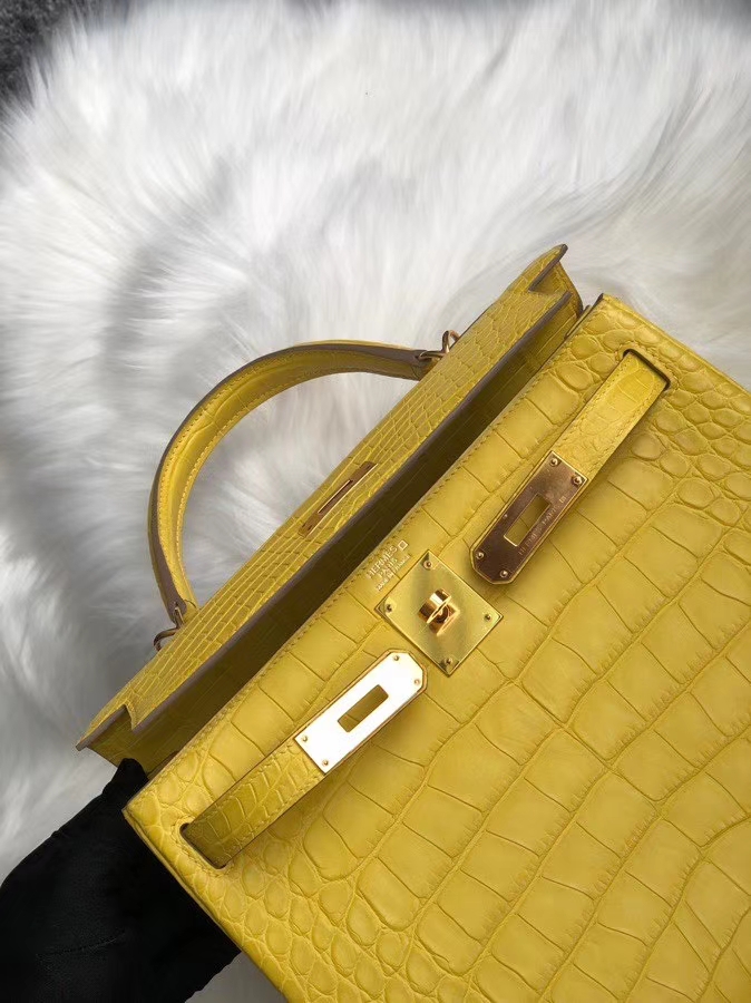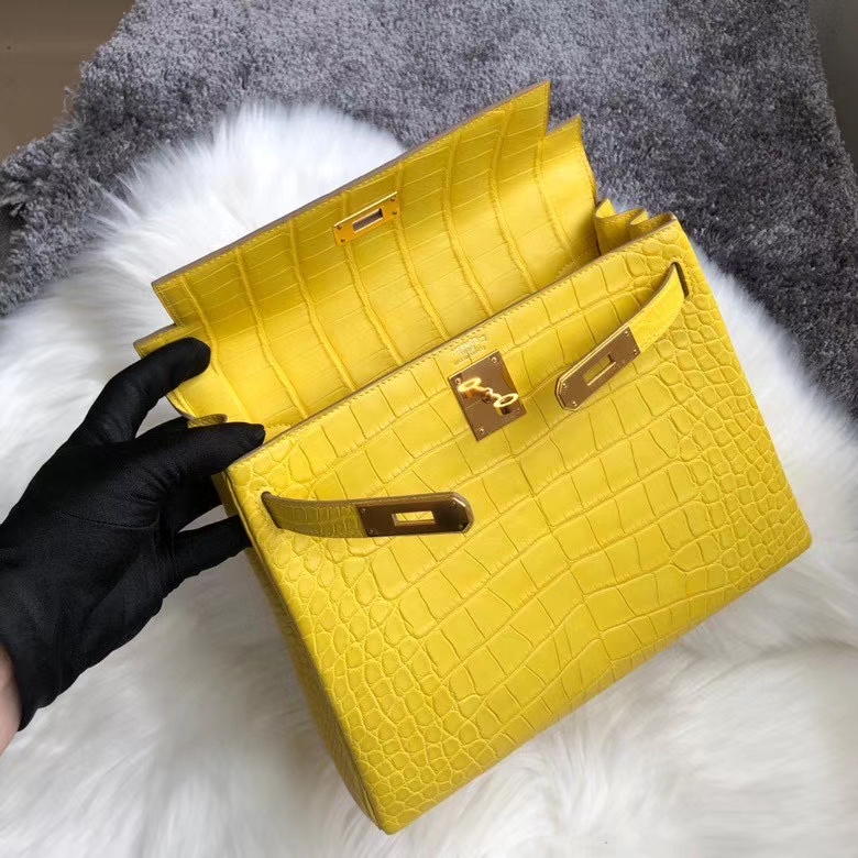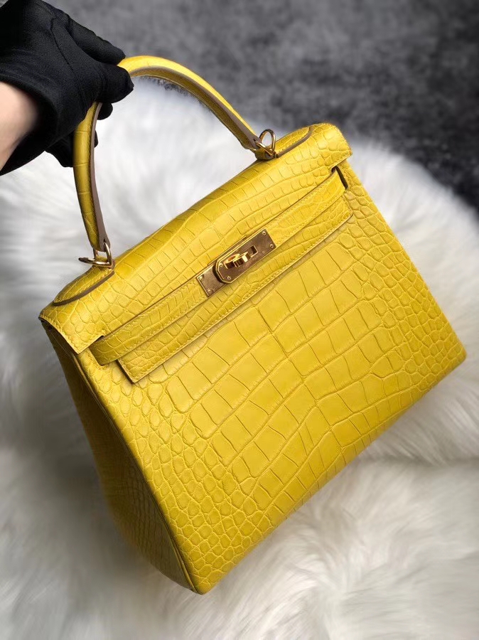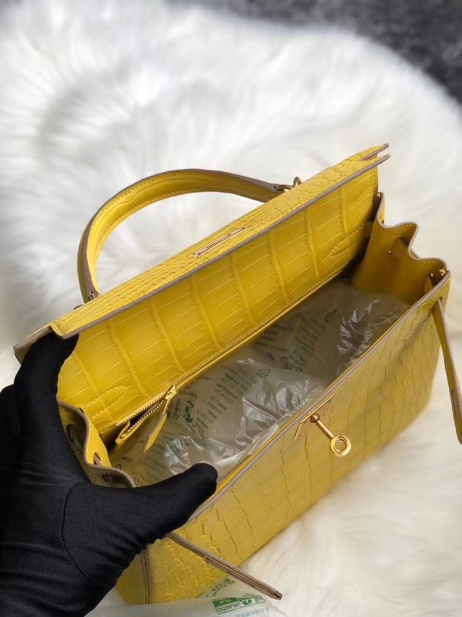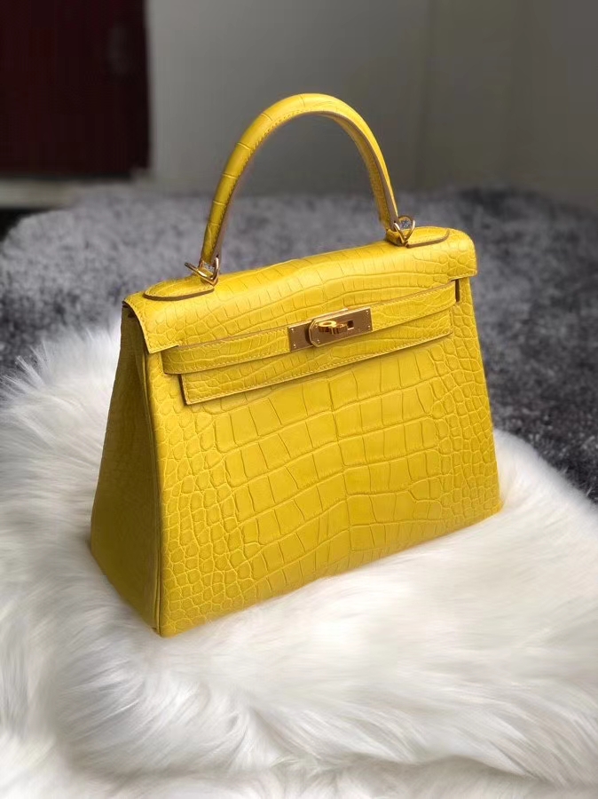 Hermès(爱马仕)Kelly 25cm Alligator matt 雾面鳄鱼 m9 金盏花黄 金扣 顶级手缝 超美招财色 2020年7月14日 0 【鳄鱼世家】www.Eyubao.com Kelly 25 Kelly 凯莉包 Niloticus 尼罗鳄 品牌:Hermès(爱马仕);类别:Kelly 凯莉包;颜色:金盏花黄;材质:雾面鳄鱼;等级:顶级;附件:全套包装礼盒;尺寸:25cm;功能:手提单肩包