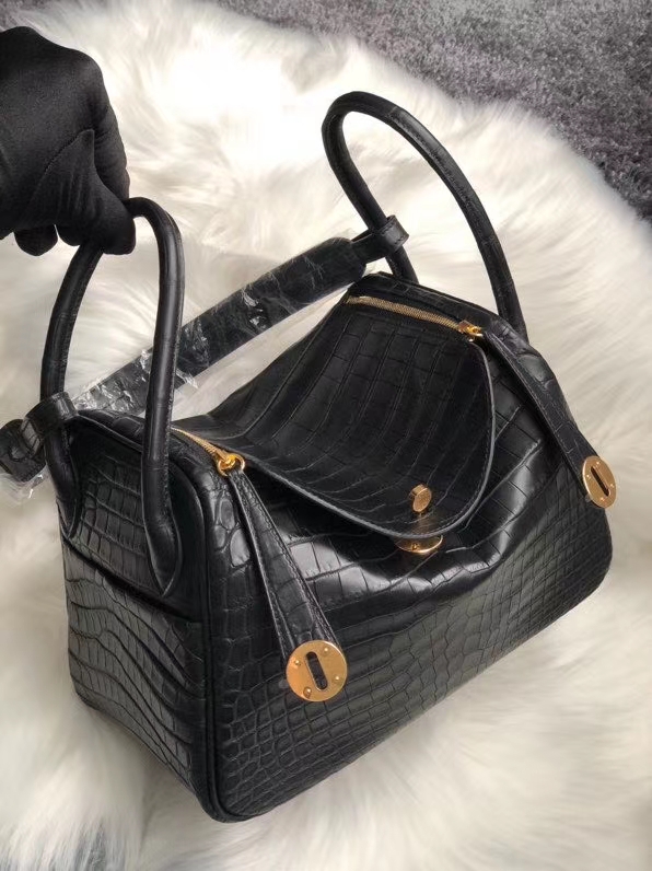 Hermès(爱马仕)Lindy 26cm Crocodie matt 雾面鳄鱼 ck89 黑色 Noir 金扣 顶级手缝 定制 2020年7月14日 0 【鳄鱼世家】www.Eyubao.com Lindy 26 Lindy 琳迪包 Niloticus 尼罗鳄 品牌:Hermès(爱马仕);类别:Lindy 琳迪包;颜色:黑色;材质:精选雾面鳄鱼皮;等级:顶级;附件:全套包装礼盒;尺寸:26cm;功能:手提单肩包