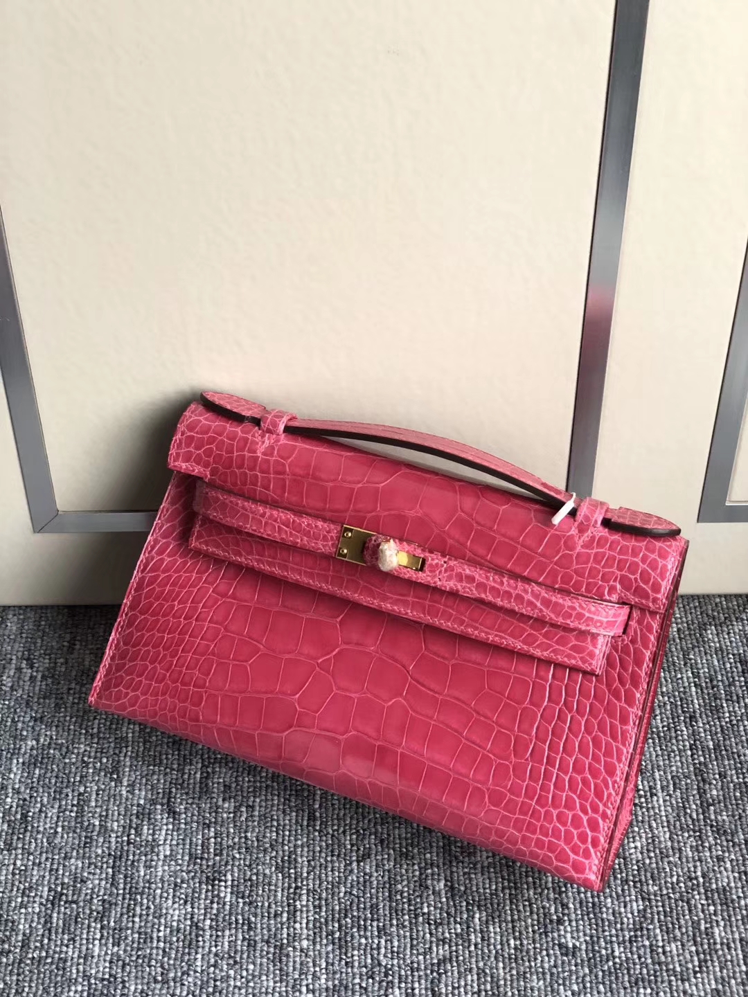 Mini Kelly 1 Mini Kelly 迷你凯莉 Hermès(爱马仕)Mini kelly pochette 22cm 亮面鳄鱼 E5 桃红 桃粉 金扣 手拿包 晚宴包 现货 2020年3月3日 0