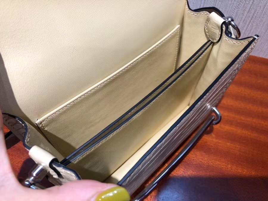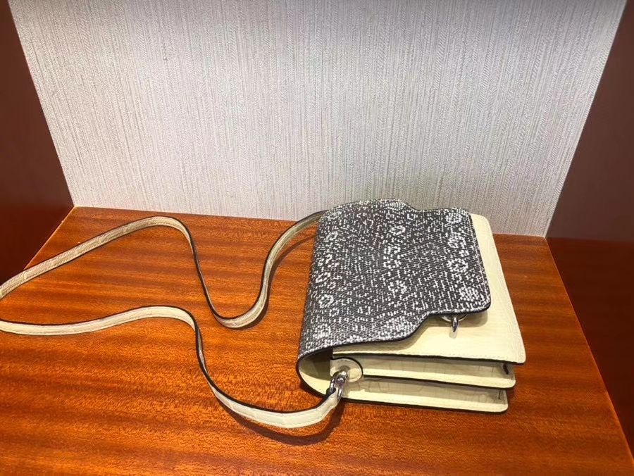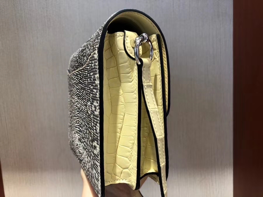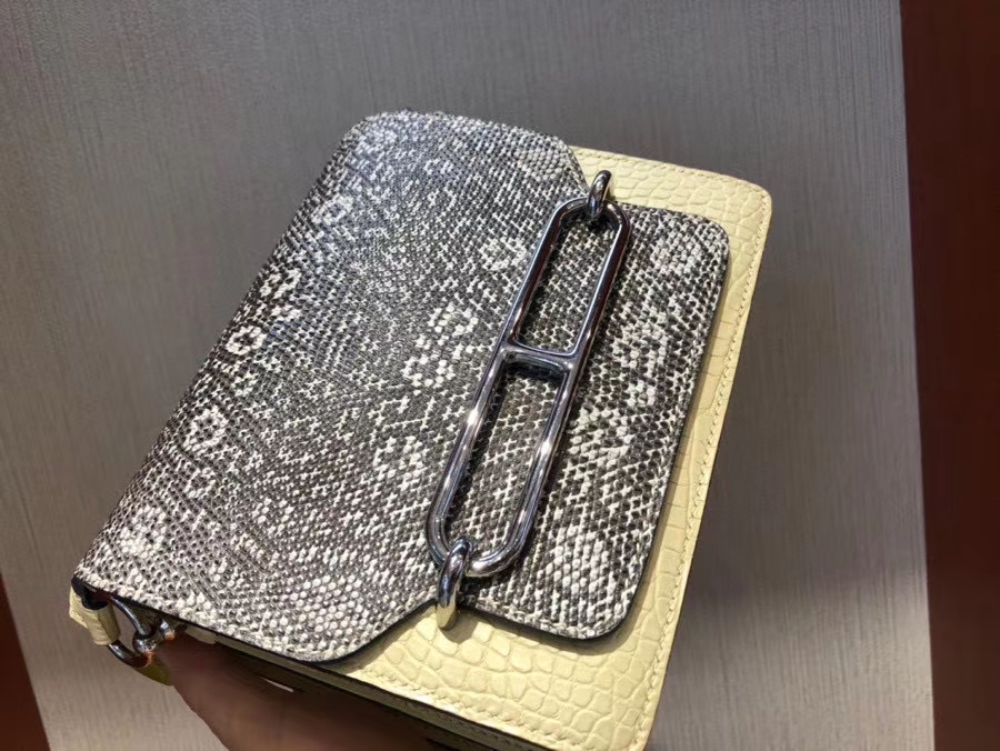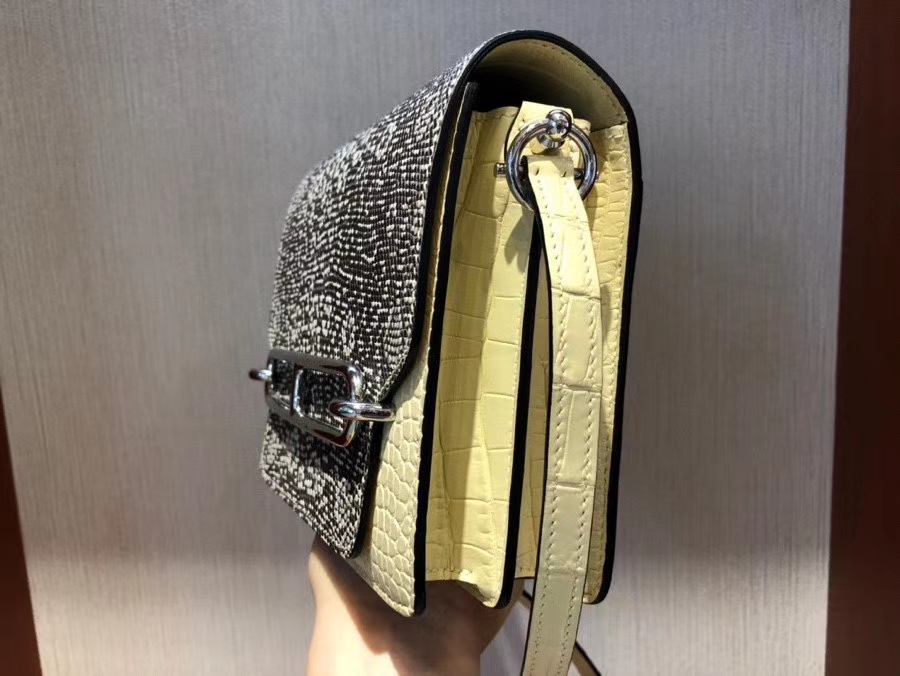 Hermès(爱马仕)Roulis 18cm Alligator matt 雾面鳄鱼 Y1 香草色 拼Lizard 原色 小喜马拉雅色 银扣 现货 2020年8月4日 0 【鳄鱼世家】www.Eyubao.com Alligator 美洲鳄 Roulis 猪鼻子 品牌:Hermès(爱马仕);类别:Roulis 猪鼻包;颜色:香草色 小喜马拉雅色;材质:原版精选雾面鳄鱼皮;等级:顶级;附件:全套包装礼盒;尺寸:18cm;功能:手提单肩包