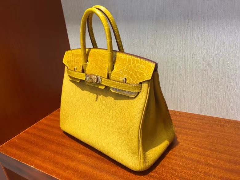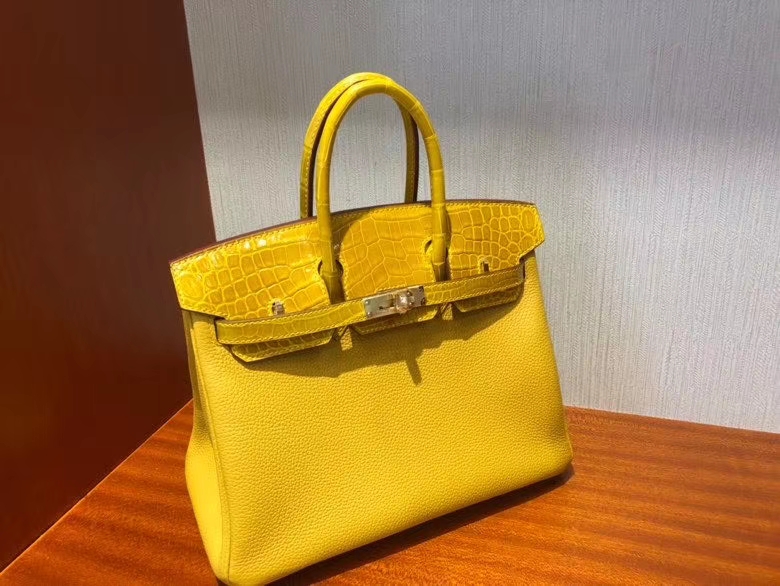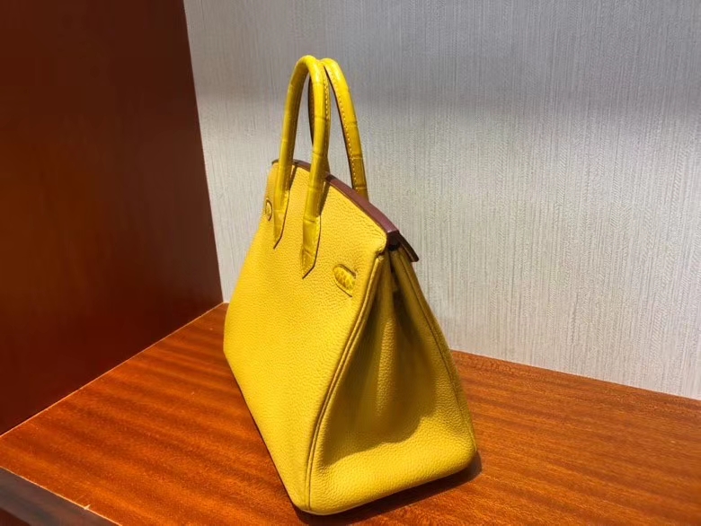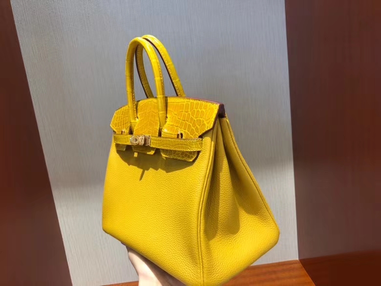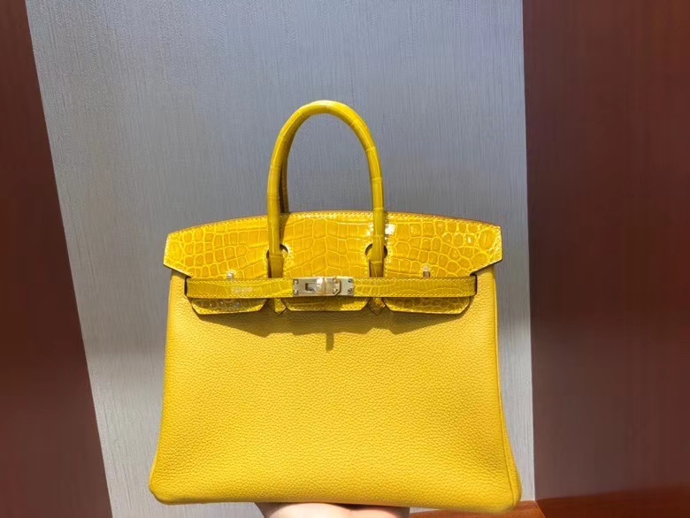 Hermès(爱马仕)Birkin 25cm Touch 9D琥珀黄 拼亮面鳄鱼琥珀黄 金扣 顶级 手缝 现货 2020年8月4日 0 【鳄鱼世家】www.Eyubao.com Birkin 25 Birkin 铂金包 Niloticus 尼罗鳄 品牌:Hermès(爱马仕);类别:Birkin 铂金包;颜色:琥珀黄;材质:原版亮面鳄鱼;等级:顶级;附件:全套包装礼盒;尺寸:25cm;功能:手提单肩包