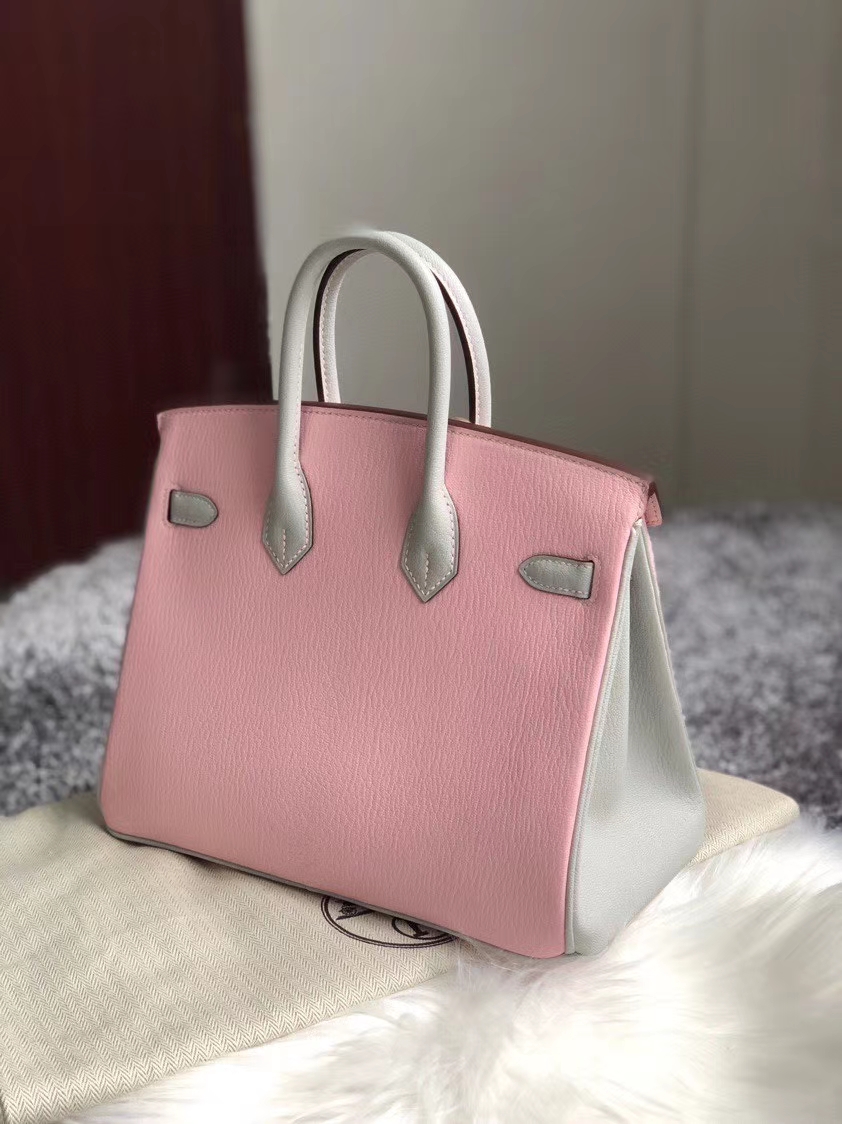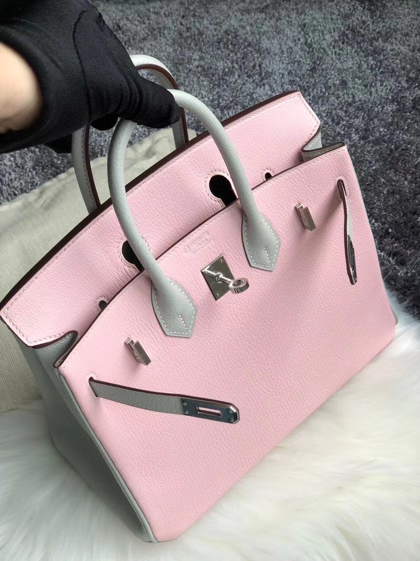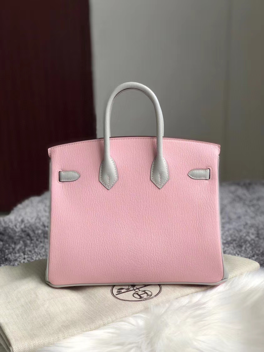 Hermès(爱马仕)Birkin 25cm Chevre 山羊皮 3Q粉拼ck80 珍珠灰 银扣 马蹄印 顶级手缝 2020年8月4日 0 【鳄鱼世家】www.Eyubao.com Birkin 25 Birkin 铂金包 品牌:Hermès(爱马仕);类别:Birkin 铂金包;颜色:3Q粉拼 珍珠灰;材质:原版山羊皮;等级:顶级;附件:全套包装礼盒;尺寸:25cm;功能:手提单肩包