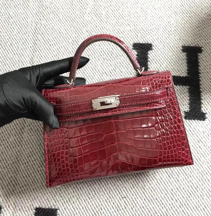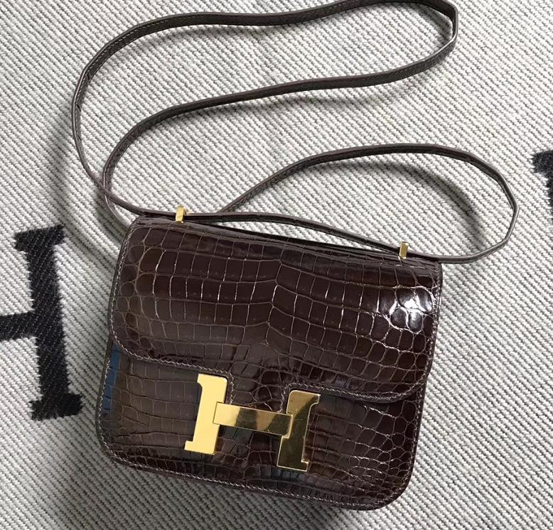 Constance 18 Constance 空姐包 Hermès(爱马仕)Constance 空姐包 18cm Alligator shiny 亮面鳄鱼 1L 仙人掌绿 银扣 现货 2019年12月7日 0