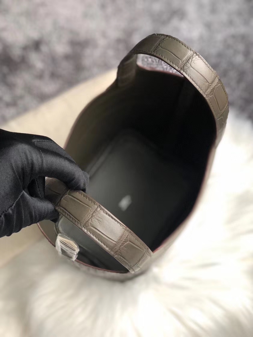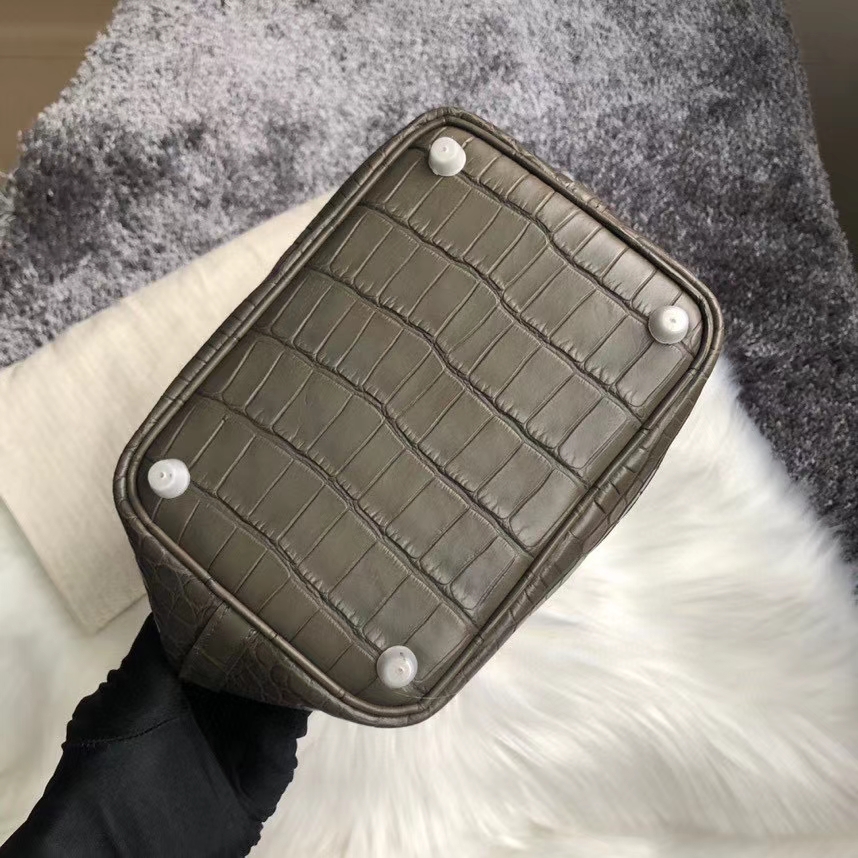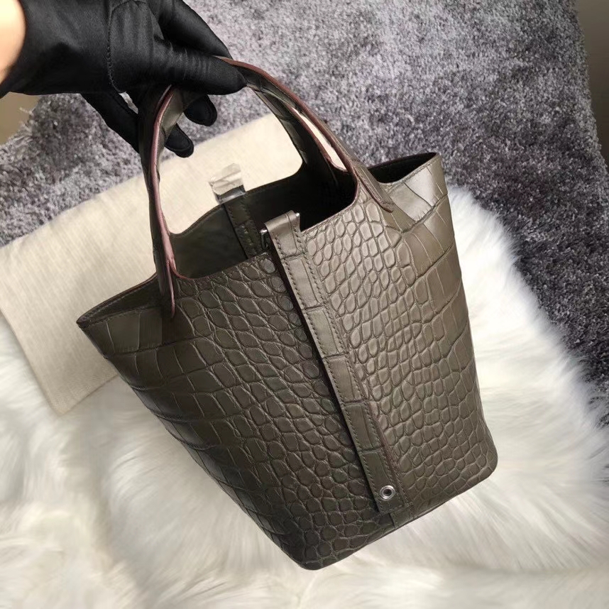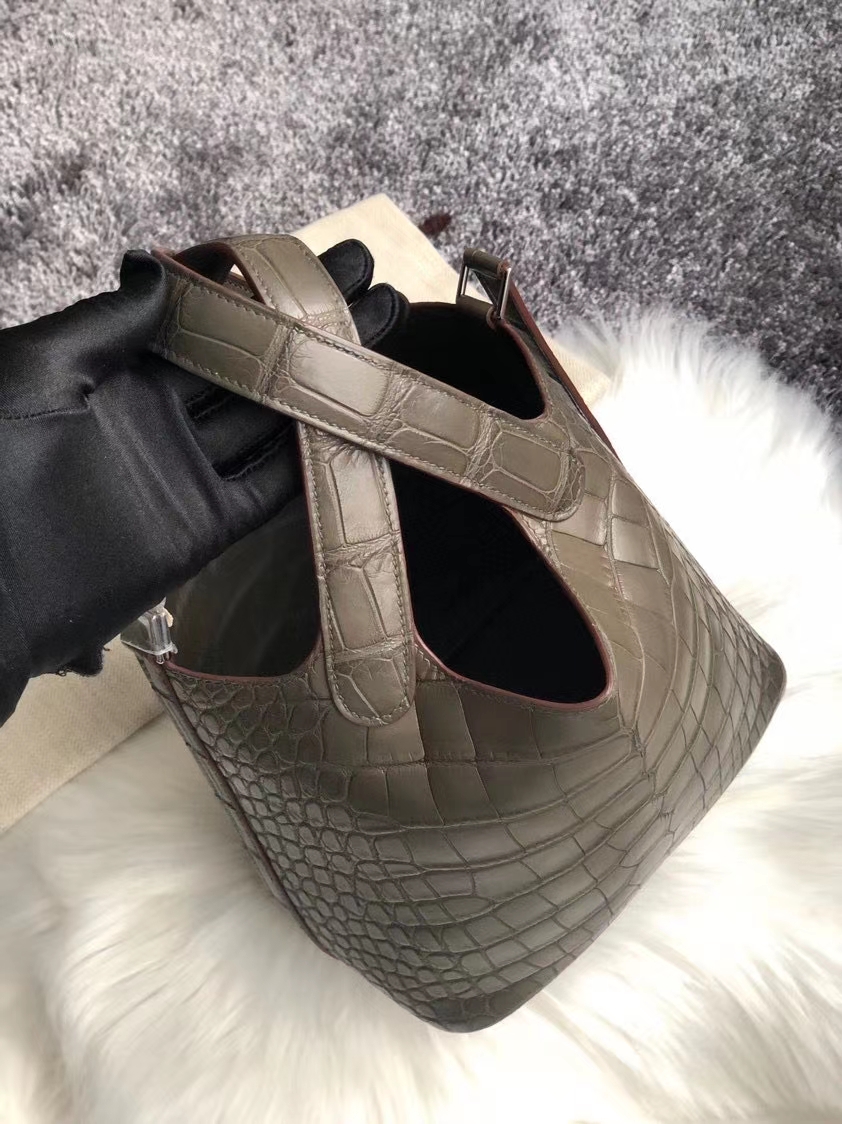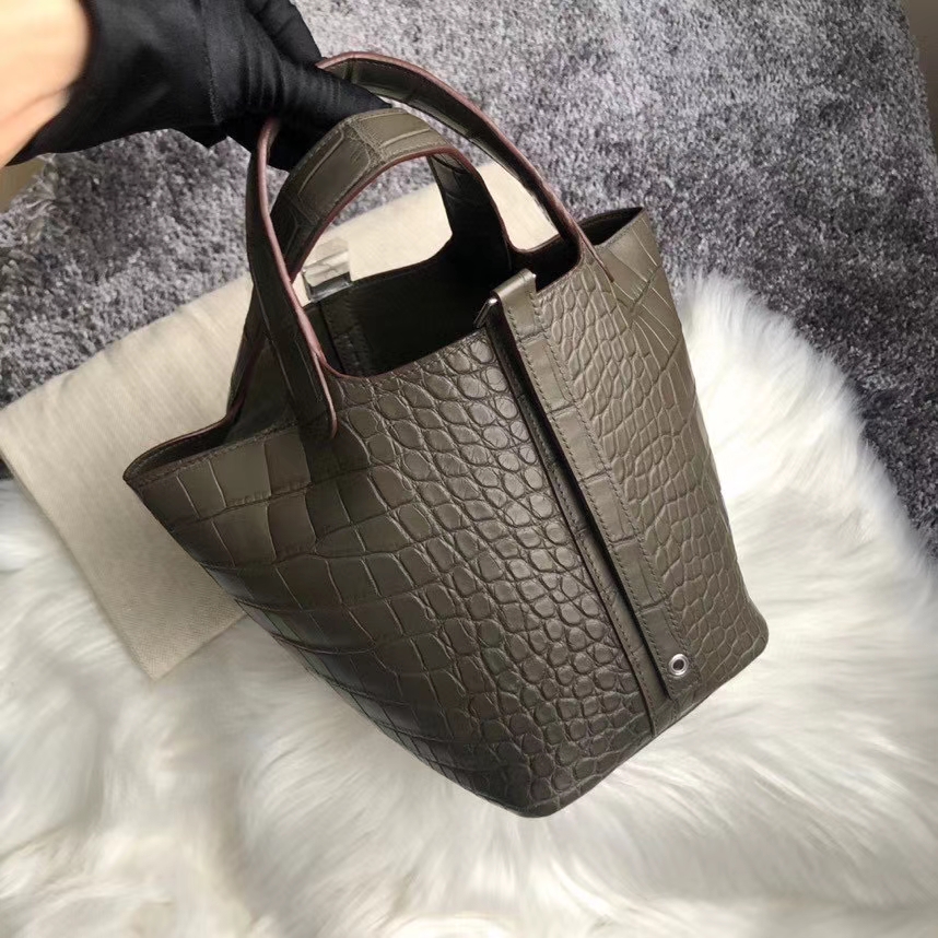 Hermès(爱马仕)Picotin 18cm Alligator matt 雾面鳄鱼 M1 新大象灰 银扣 顶级手缝 定制 2020年8月4日 0 【鳄鱼世家】www.Eyubao.com Picotin 18 Picotin 菜篮包 品牌:Hermès(爱马仕);类别:Picotin 菜篮包;颜色:新大象灰;材质:雾面鳄鱼;等级:顶级;附件:全套包装礼盒;尺寸:18cm;功能:手提单肩包