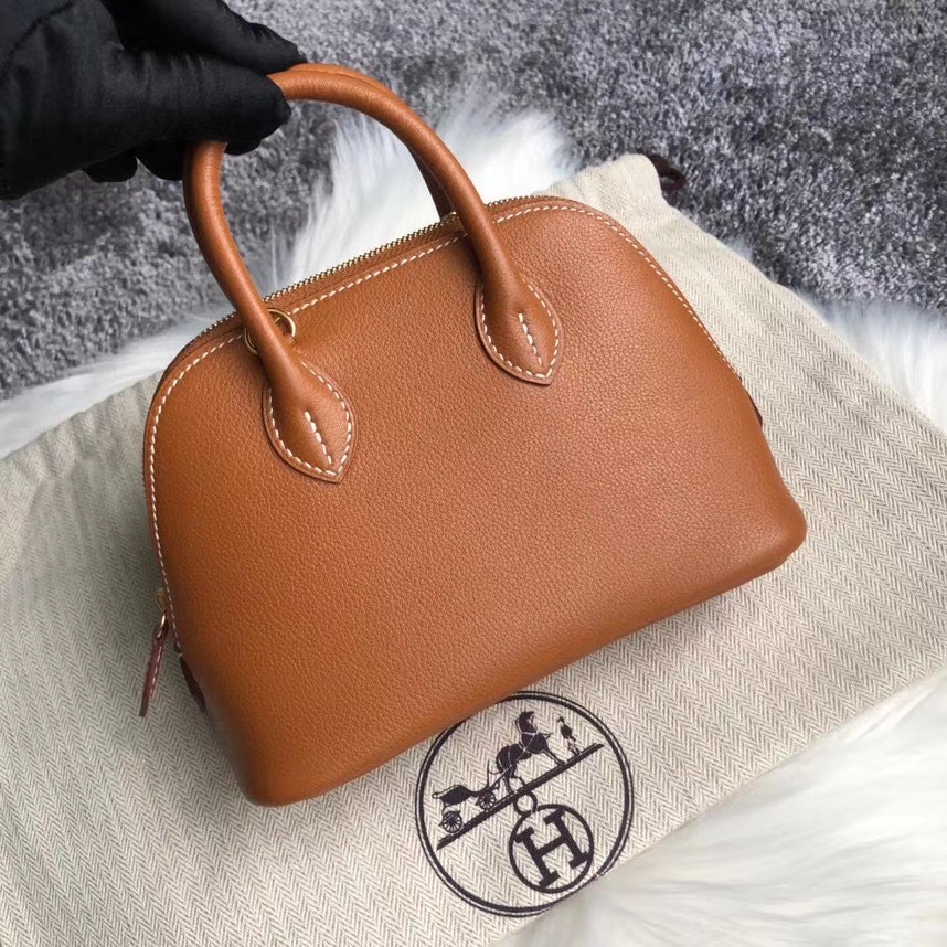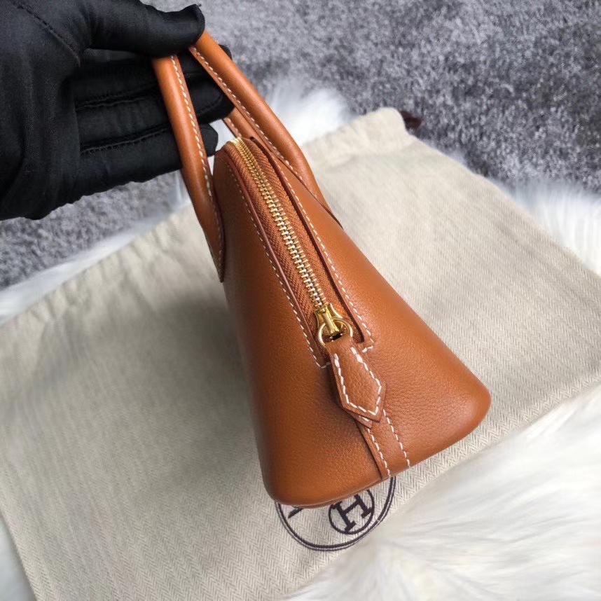 Hermès(爱马仕)Mini bolide 山羊皮Chevre 金棕色 金扣 顶级手缝 定制 2020年8月4日 0 【鳄鱼世家】www.Eyubao.com Bolide 保龄球包 品牌:Hermès(爱马仕);类别:Bolide 保龄球包;颜色:金棕色;材质:山羊皮;等级:顶级;附件:全套包装礼盒;尺寸:18cm;功能:手提单肩包