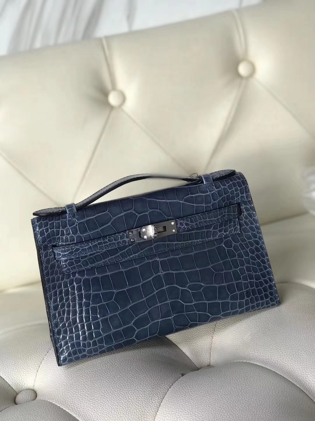 Mini Kelly 1 Mini Kelly 迷你凯莉 Hermès(爱马仕)Minikelly pochette 22cm Alligator shiny 亮面鳄鱼 7N 风暴蓝 银扣 2018年10月26日 0