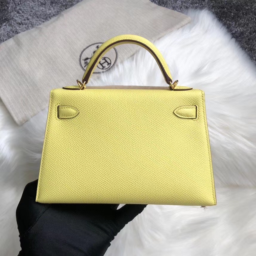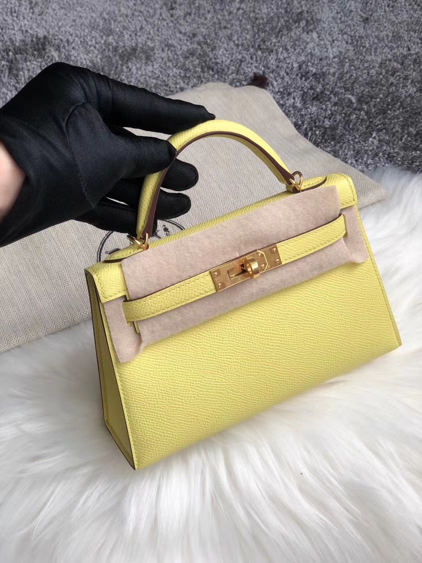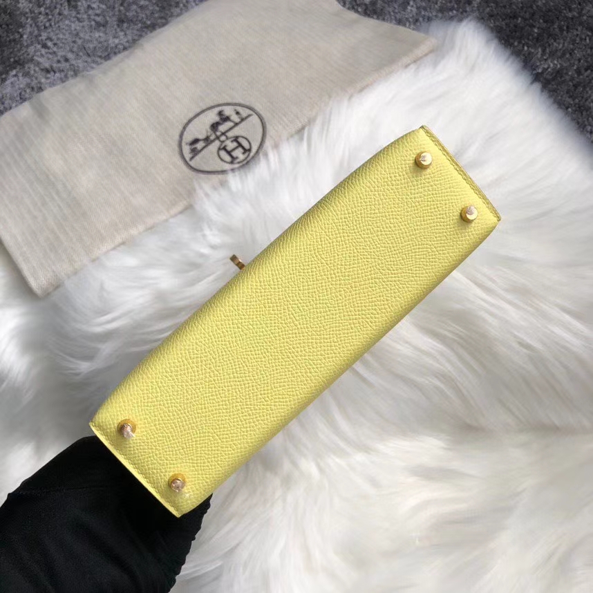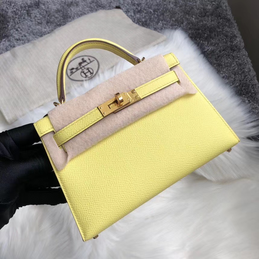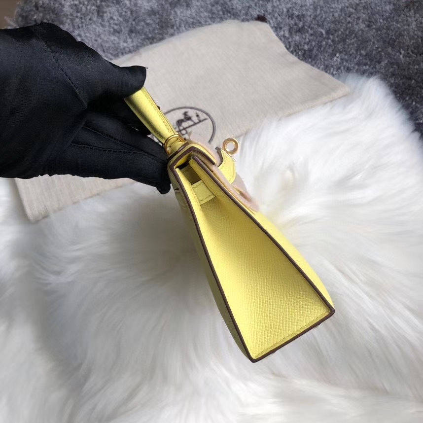Hermès(爱马仕)Mini kelly ll Epsom 原厂掌纹皮 C9 鹅蛋黄 金扣 顶级手缝 现货 2020年8月4日 0 【鳄鱼世家】www.Eyubao.com Mini Kelly 2 Mini Kelly 迷你凯莉 品牌:Hermès(爱马仕);类别:Mini Kelly 迷你凯莉;颜色:鹅蛋黄;材质:原厂掌纹皮;等级:顶级;附件:全套包装礼盒;尺寸:19cm;功能:手提单肩包
