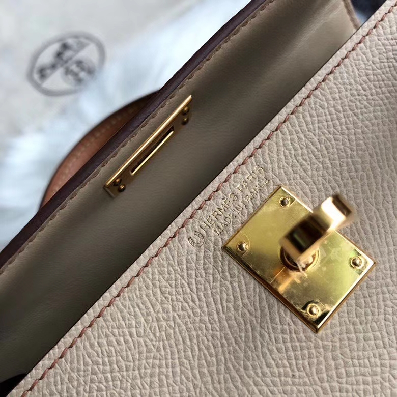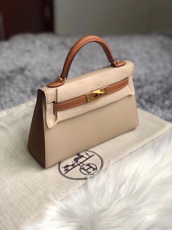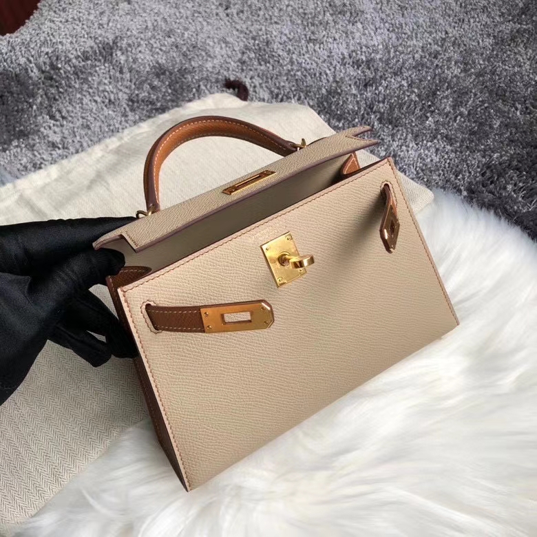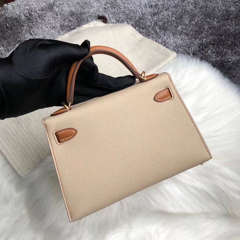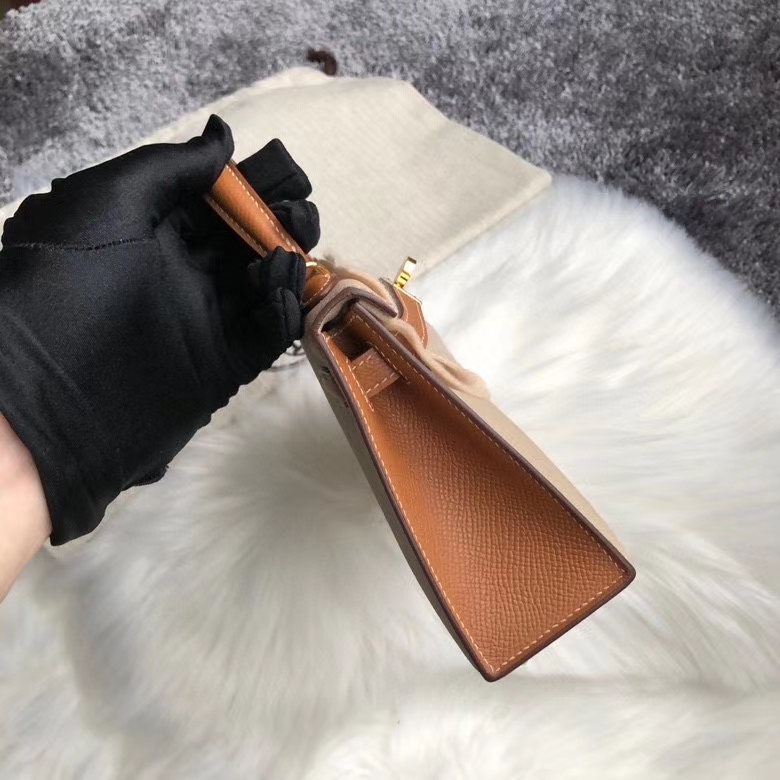 Hermès(爱马仕)mini kelly ll Epsom 原厂掌纹皮 S2 风衣灰拼ck37 金棕色 金扣 马蹄印 定制 2020年8月4日 0 【鳄鱼世家】www.Eyubao.com Mini Kelly 2 Mini Kelly 迷你凯莉 品牌:Hermès(爱马仕);类别:Mini Kelly 迷你凯莉;颜色:风衣灰 拼 金棕色;材质:原厂掌纹皮;等级:顶级;附件:全套包装礼盒;尺寸:19cm;功能:手提单肩包