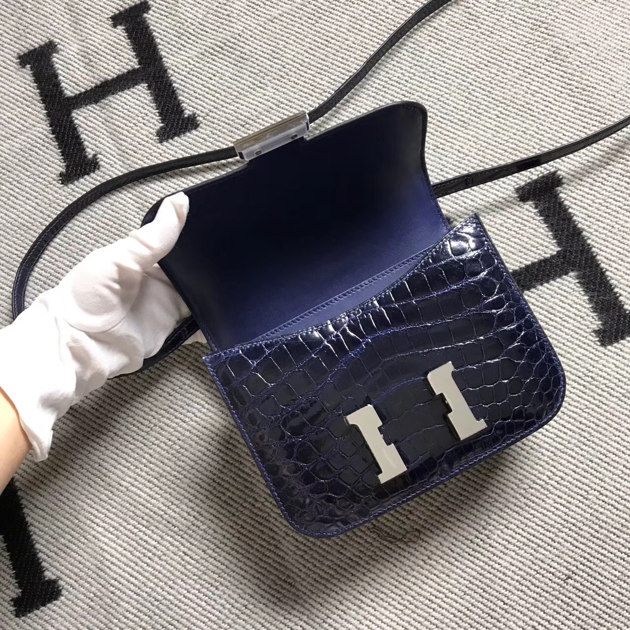 Hermes爱马仕 Constance 19 深蓝色 亮面 银扣 2018年7月26日 0 【鳄鱼世家】www.Eyubao.com Constance 19 Constance 空姐包 品牌:Hermès(爱马仕);类别:Constance空姐包;颜色:深蓝色;材质:精选原版皮;等级:顶级;附件:全套包装礼盒;尺寸:19cm;功能:单肩斜挎包