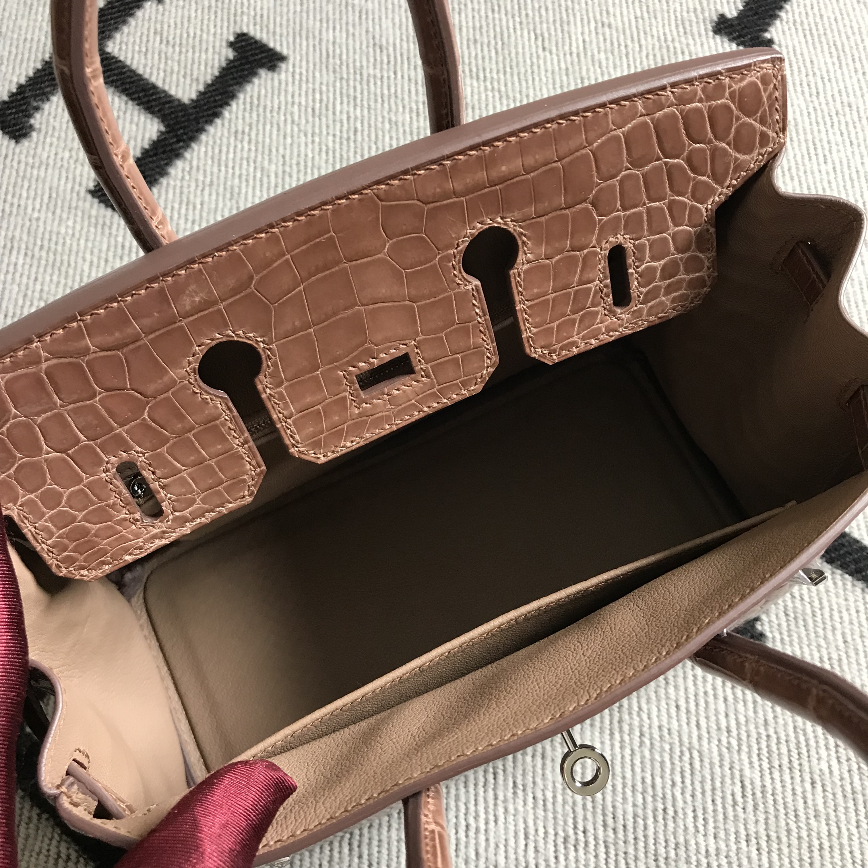 Hermès(爱马仕)Birkin 铂金包 褐色 银扣 25cm 2018年8月6日 0 【鳄鱼世家】www.Eyubao.com Birkin 25 Birkin 铂金包 品牌:Hermès(爱马仕);类别:Birkin 铂金包;颜色:褐色 ;材质:精选原版皮;等级:顶级;附件:全套包装礼盒;尺寸:25cm;功能:手提单肩包