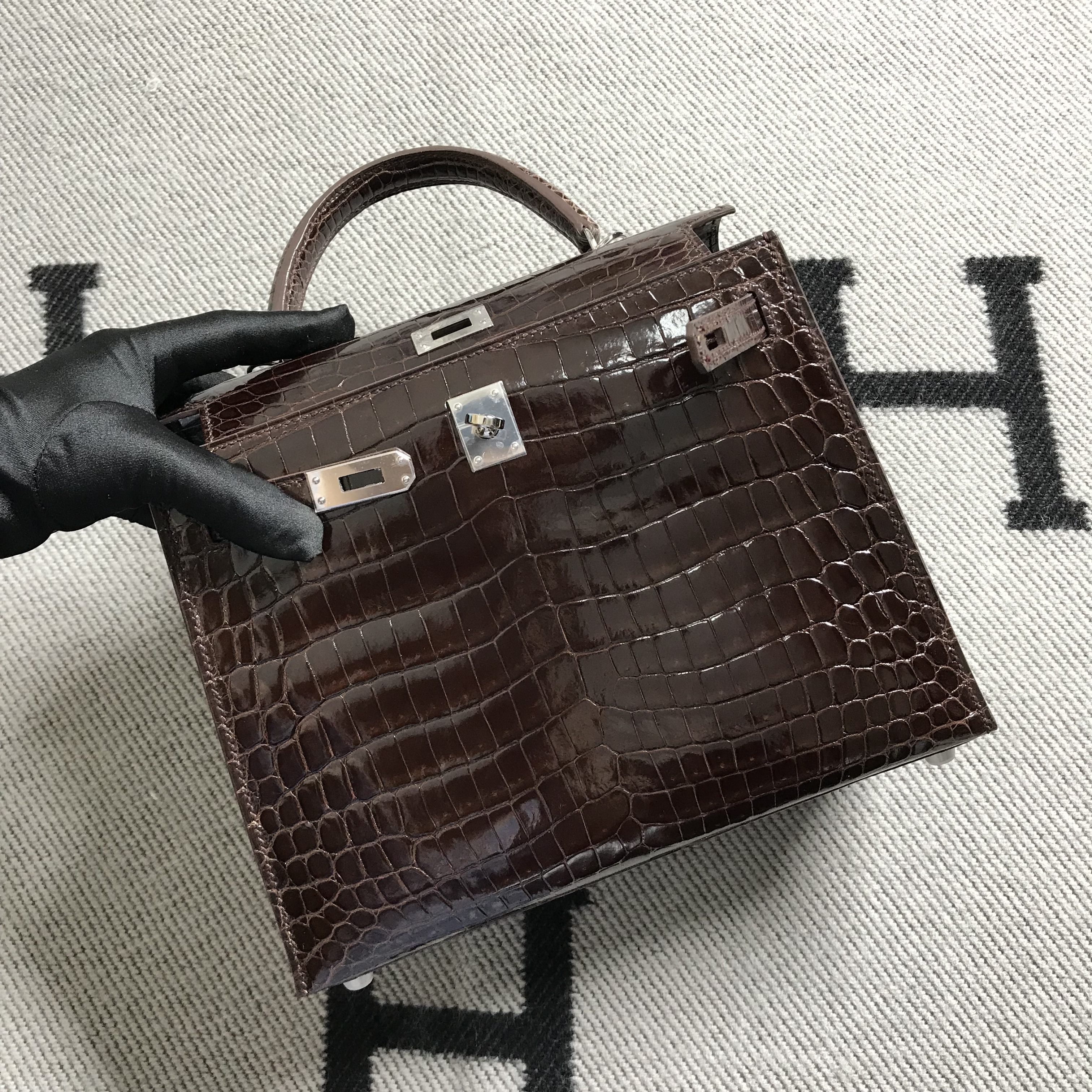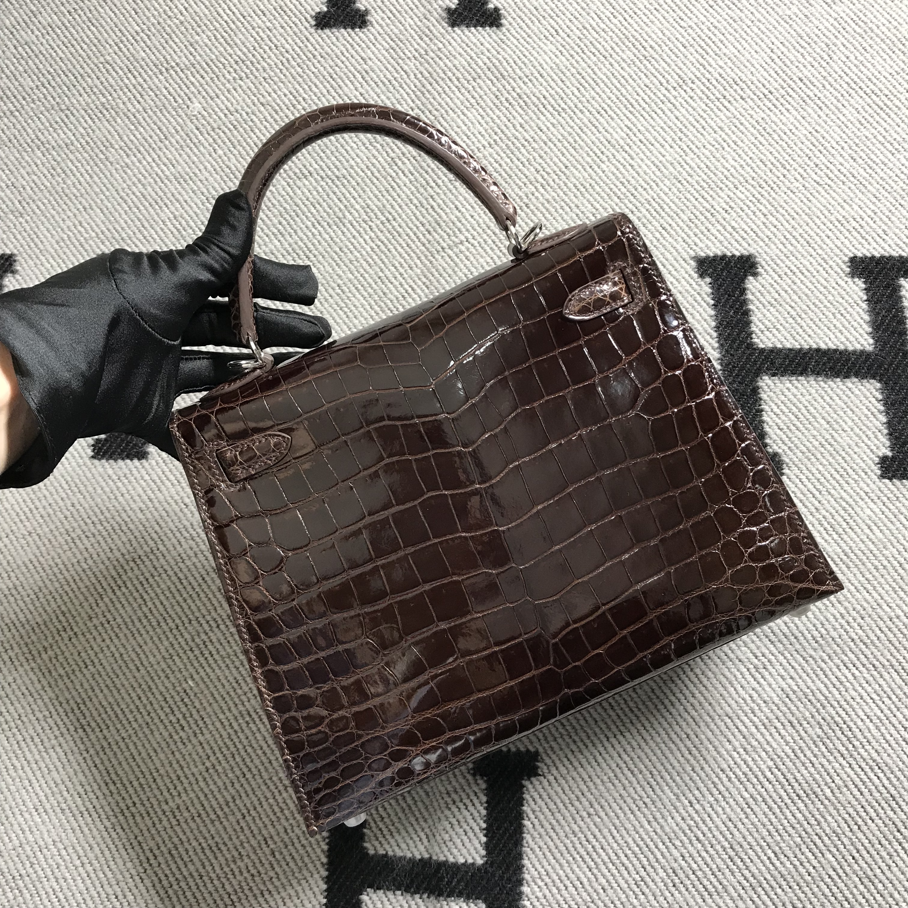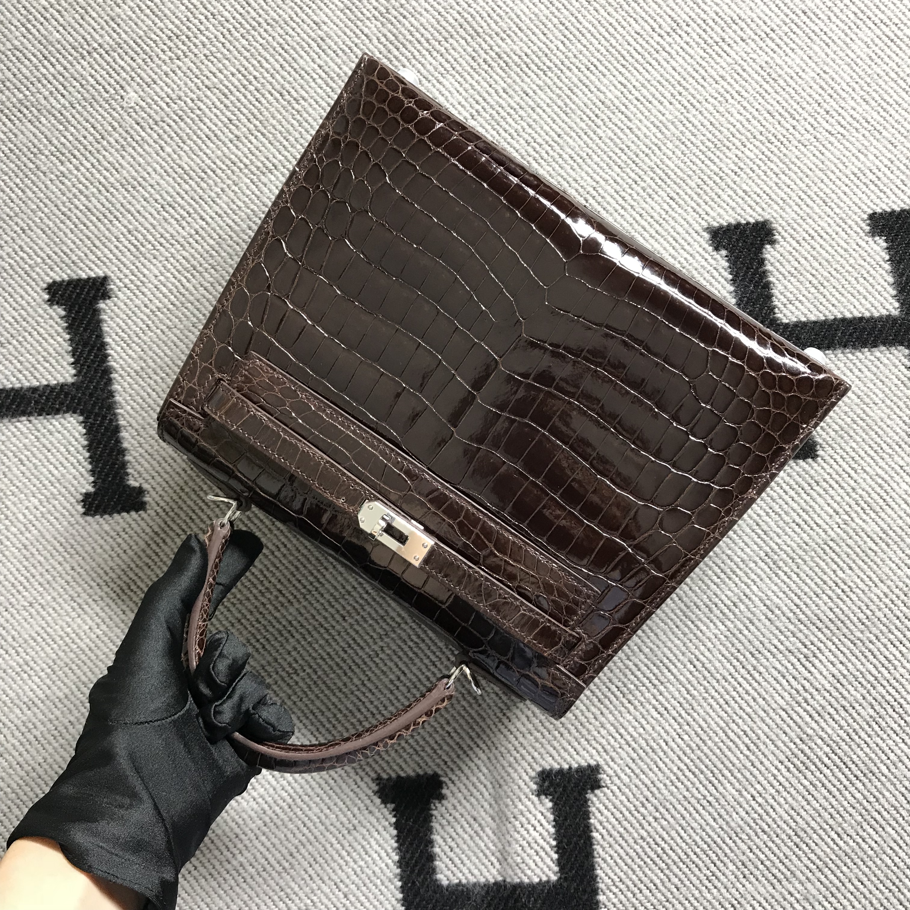 Hermès(爱马仕)Kelly 凯莉包 深咖啡色 银扣 25cm 2018年8月7日 0 【鳄鱼世家】www.Eyubao.com Kelly 25 Kelly 凯莉包 品牌:Hermès(爱马仕);类别:Kelly 凯莉包;颜色:深咖啡色;材质:精选原版皮;等级:顶级;附件:全套包装礼盒;尺寸:25cm;功能:手提单肩包